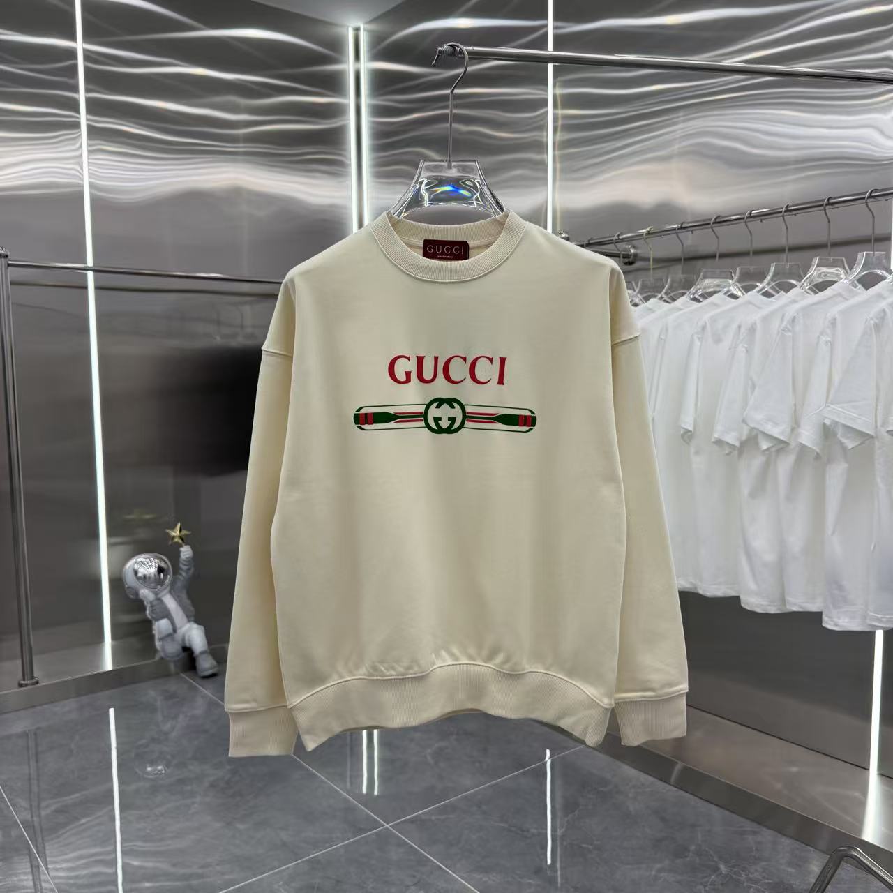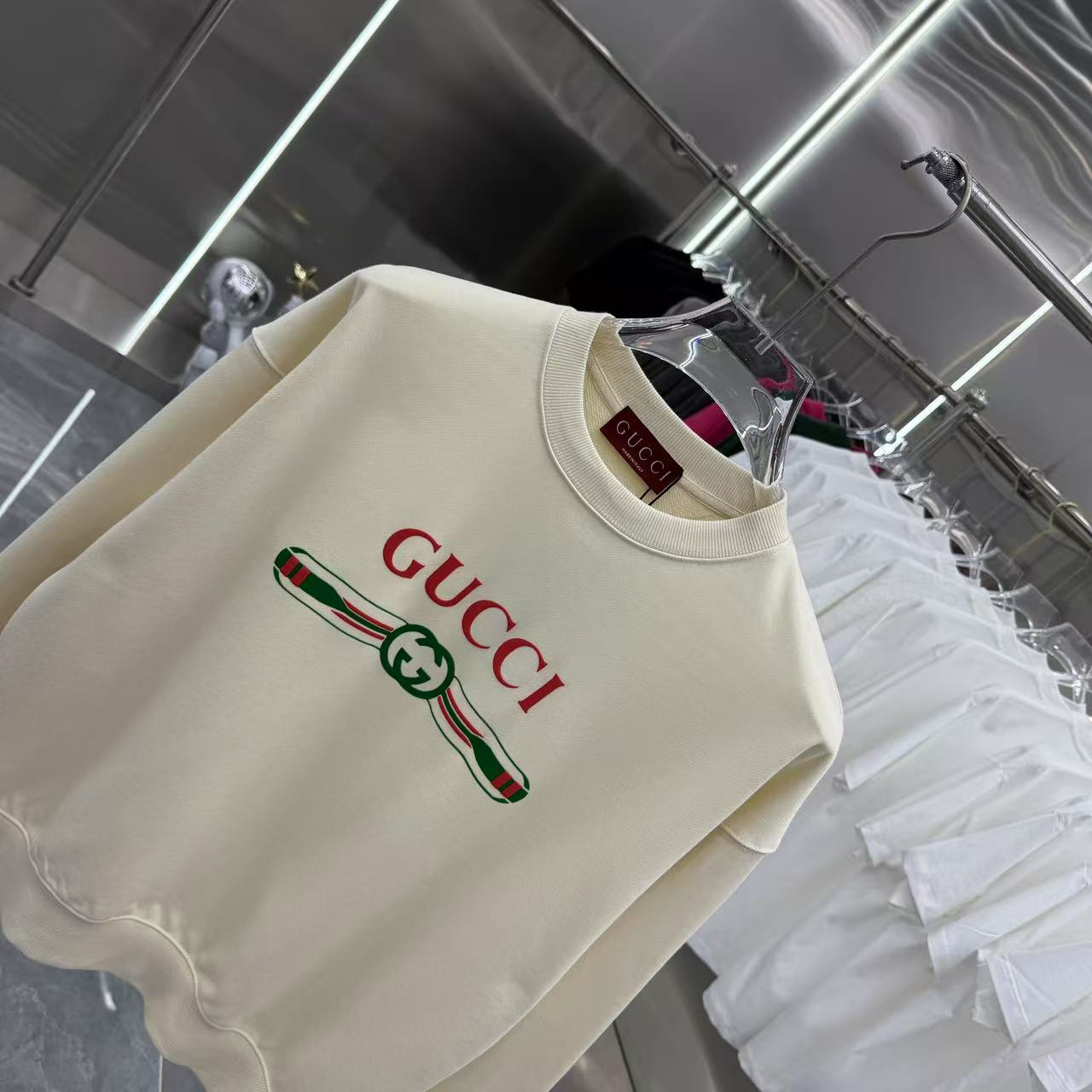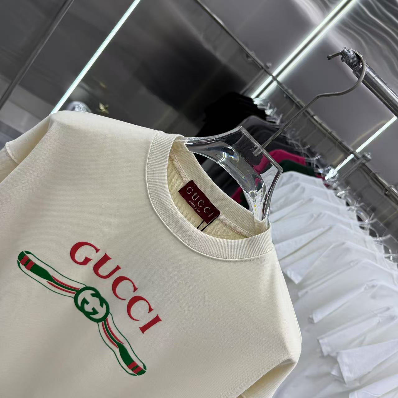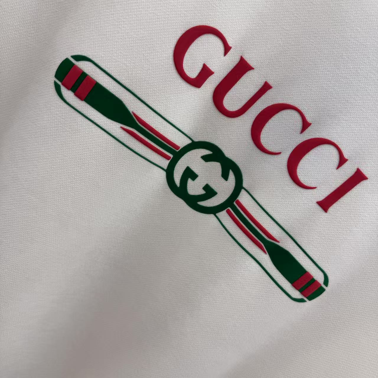 這款衣服是AAAAA 1:1 質量(非常棒). 使用了和原版一模一樣的材料. 商標部分也保持了和古奇/Gucci一樣. 圖片拍攝是實物衣服拍攝, 您所收到的實物保證和我們圖片一模一樣.