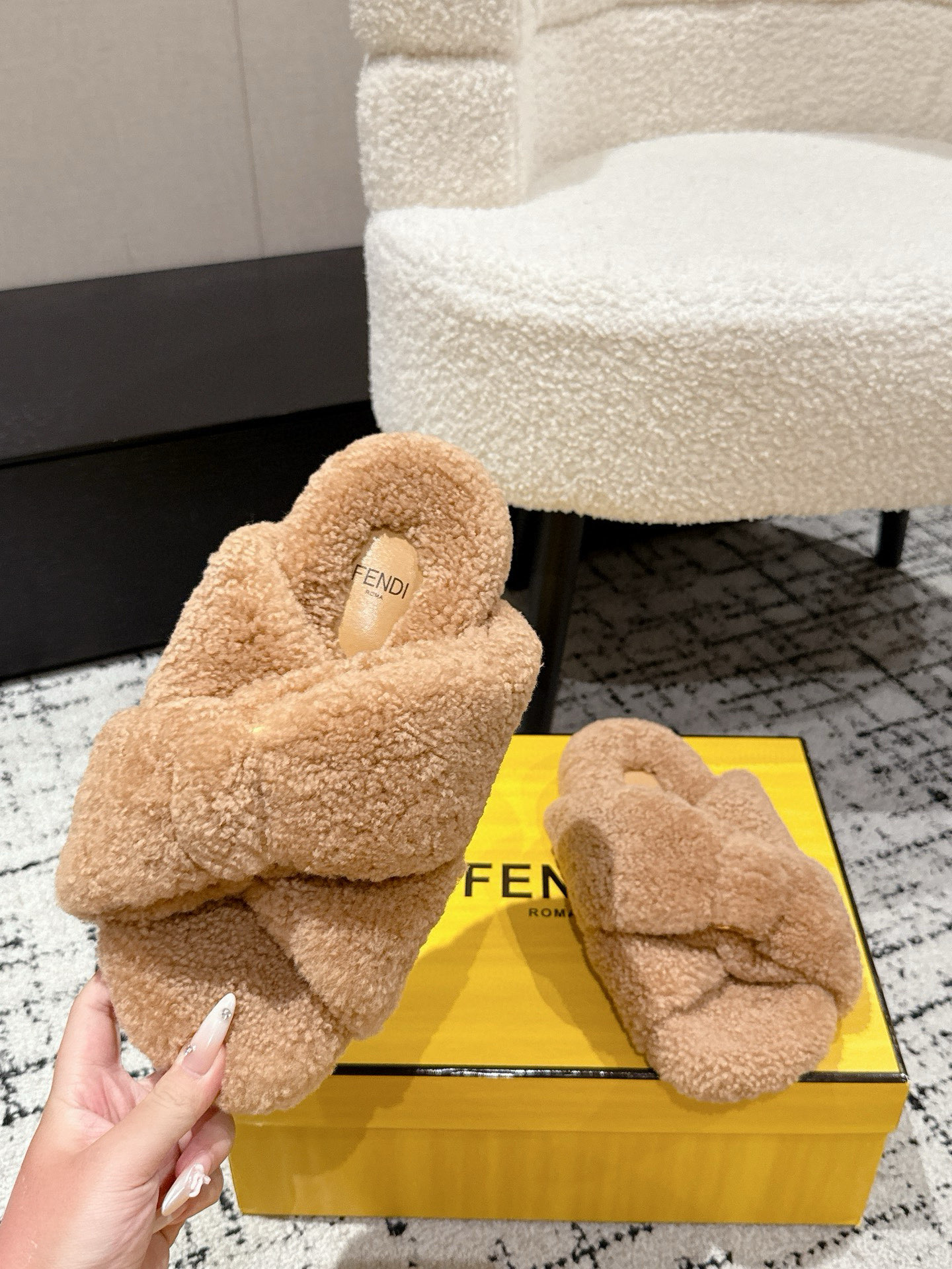這款鞋子是AAAAA 1:1 質量(非常棒). 使用了和原版一模一樣的材料. 商標部分也保持了和芬迪/Fendi一樣. 圖片拍攝是實物鞋子拍攝, 您所收到的實物保證和我們圖片一模一樣.