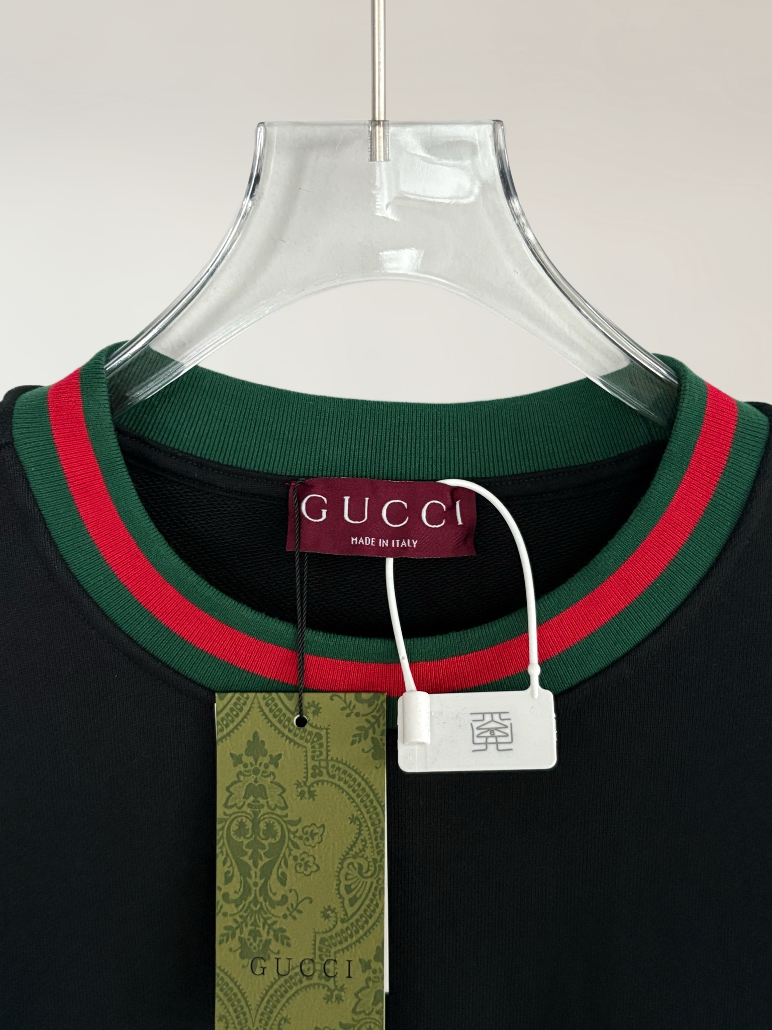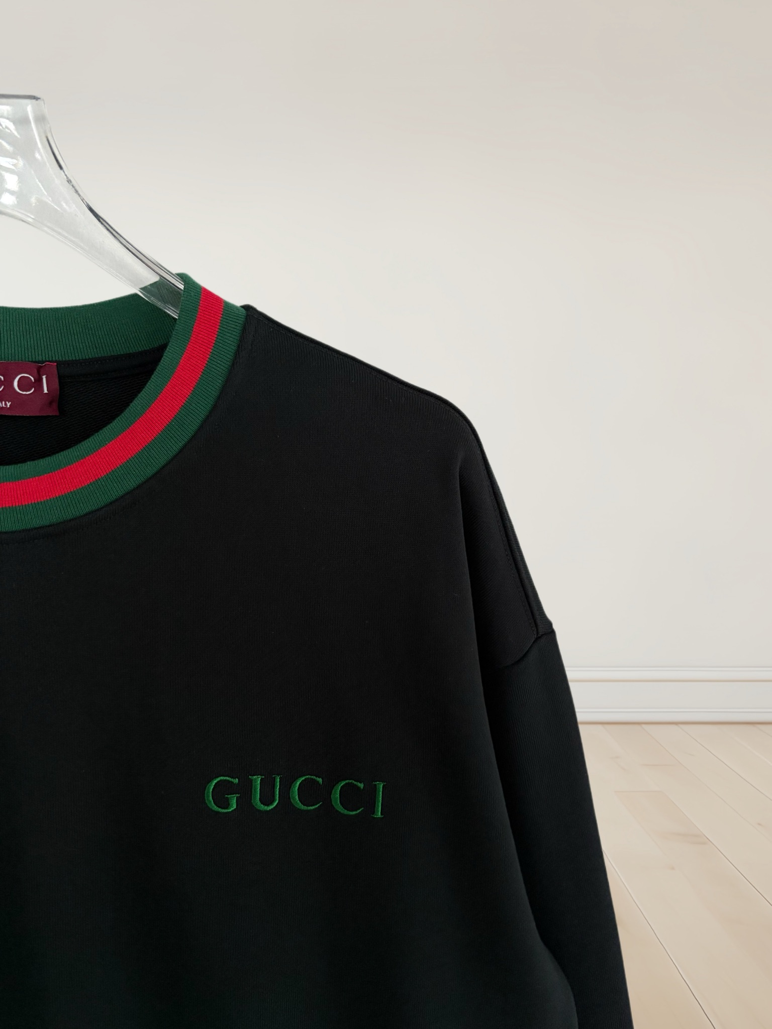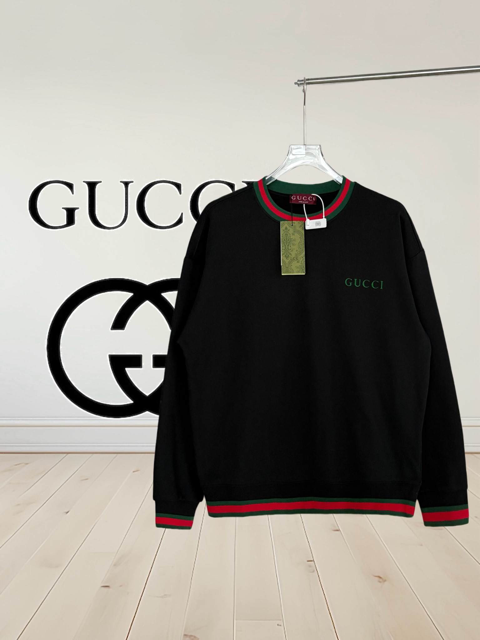 這款衣服是AAAAA 1:1 質量(非常棒). 使用了和原版一模一樣的材料. 商標部分也保持了和古奇/Gucci一樣. 圖片拍攝是實物衣服拍攝, 您所收到的實物保證和我們圖片一模一樣.