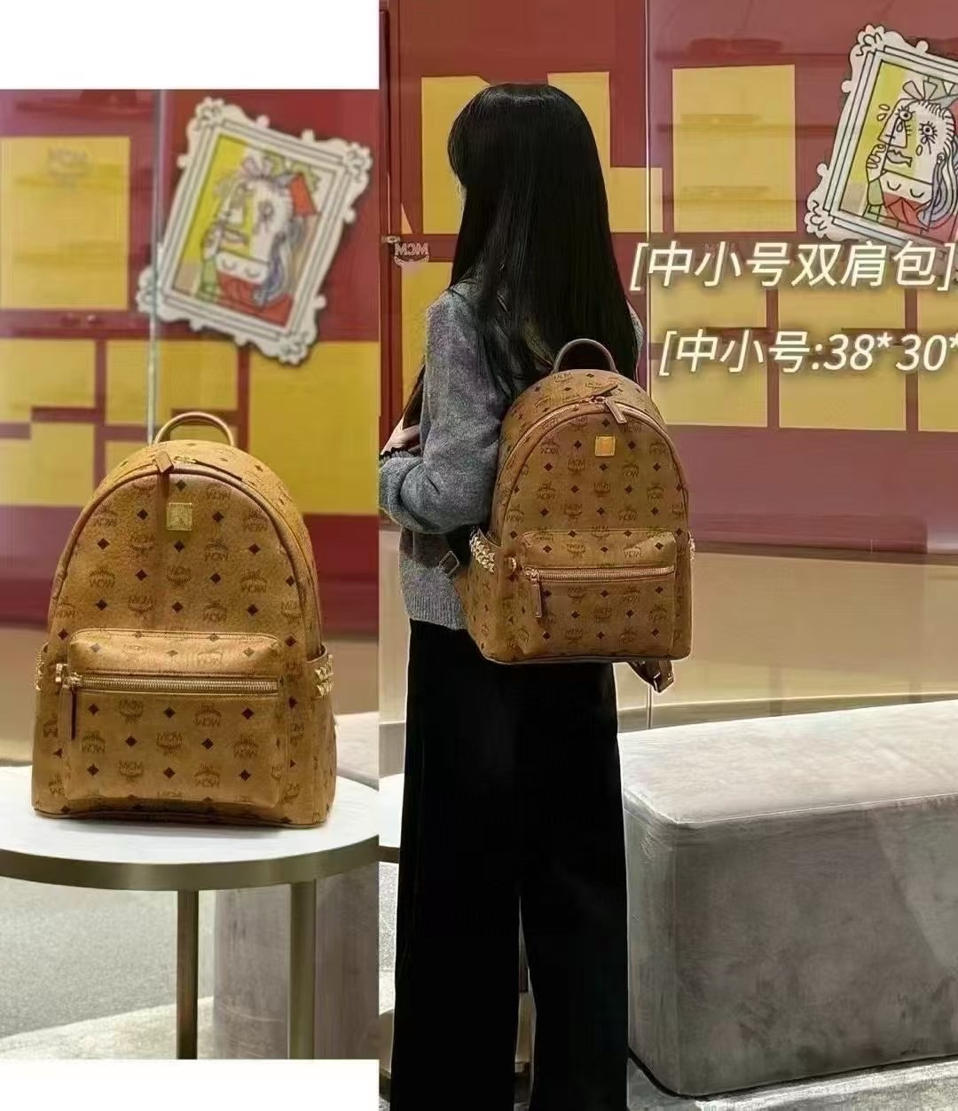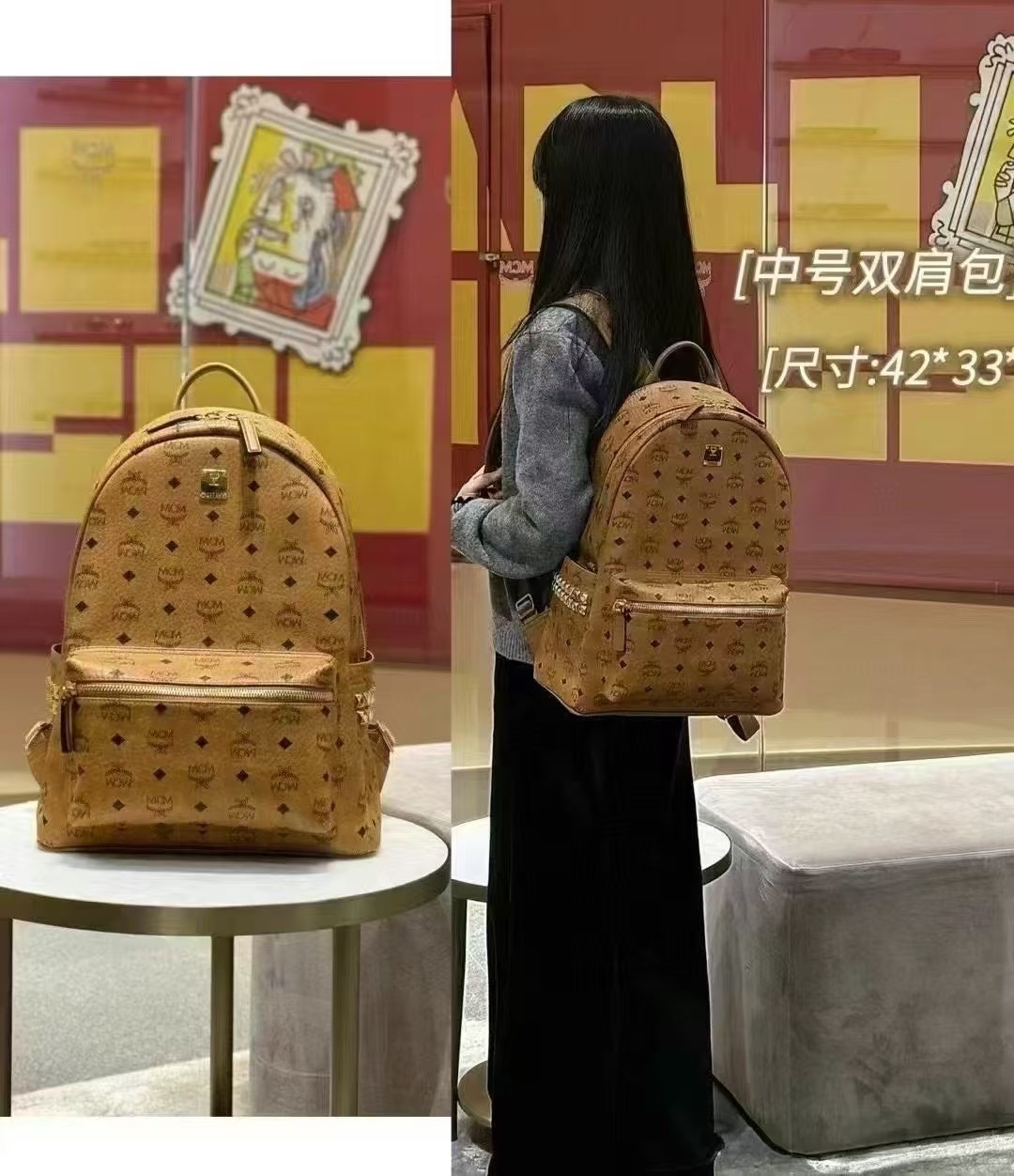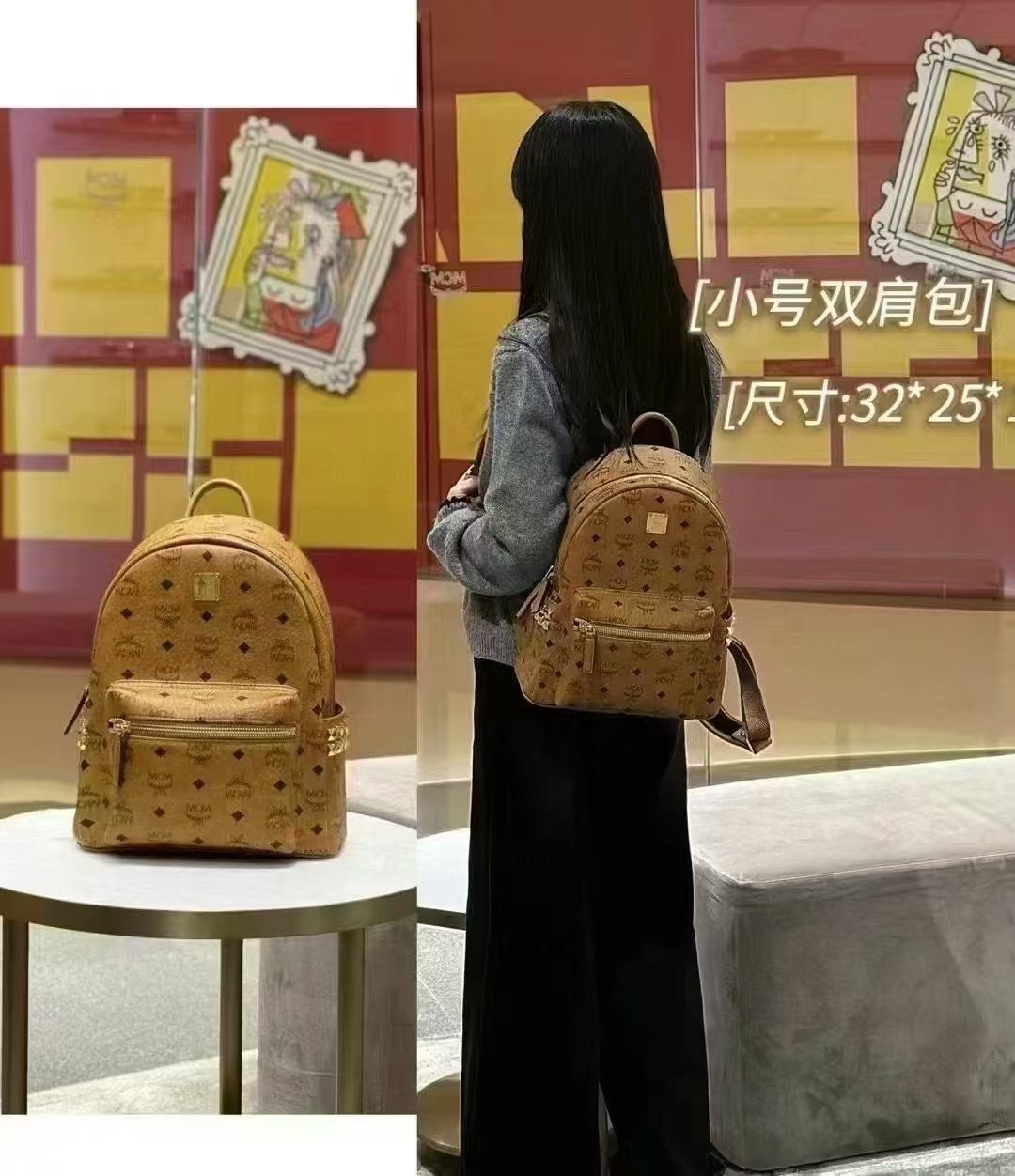 這款包包是AAAAA 1:1 質量(非常棒). 使用了和原版一模一樣的材料. 商標部分也保持了和Man crush Monday(MCM)一樣. 圖片拍攝是實物包包拍攝, 您所收到的實物保證和我們圖片一模一樣.