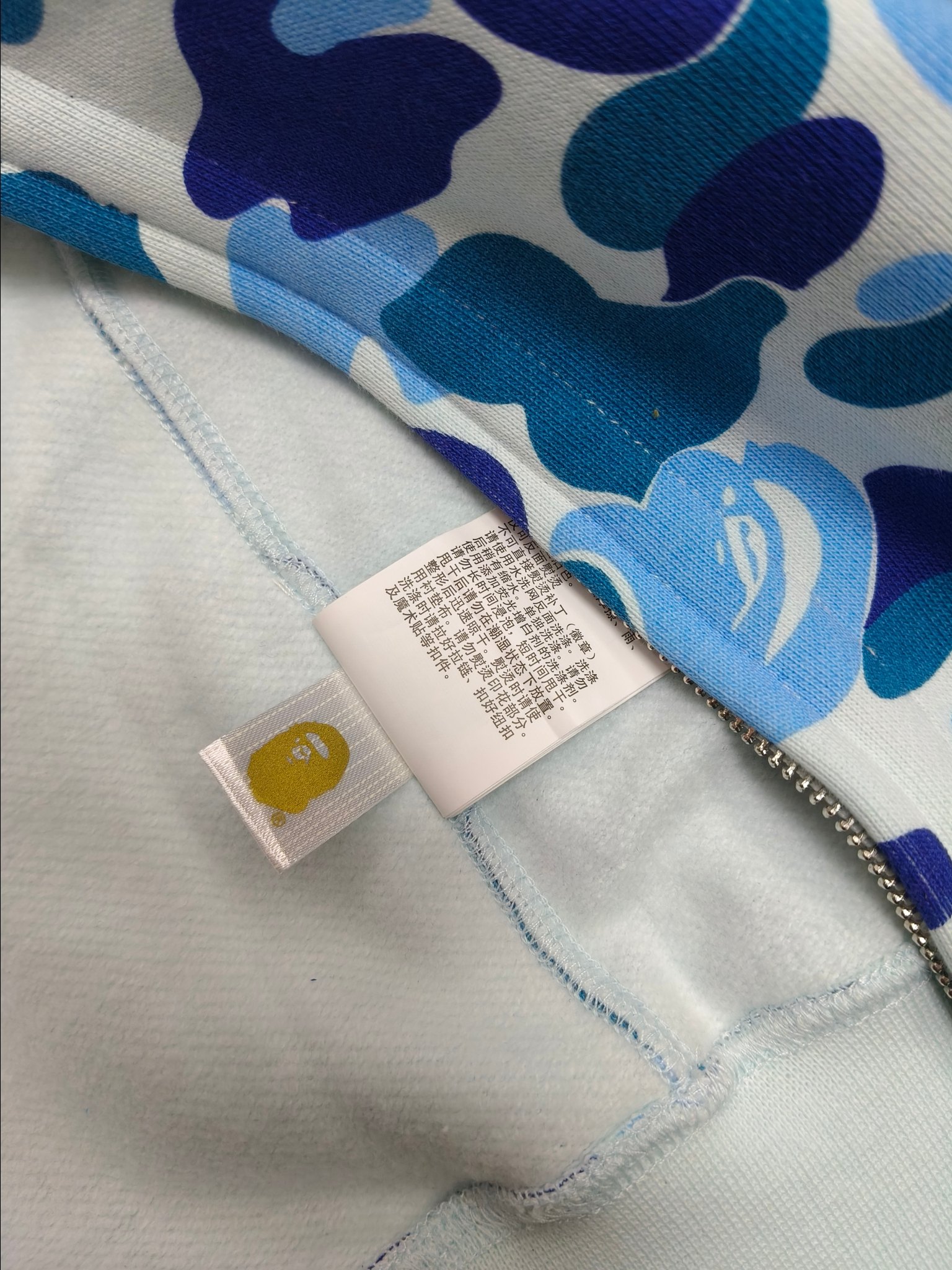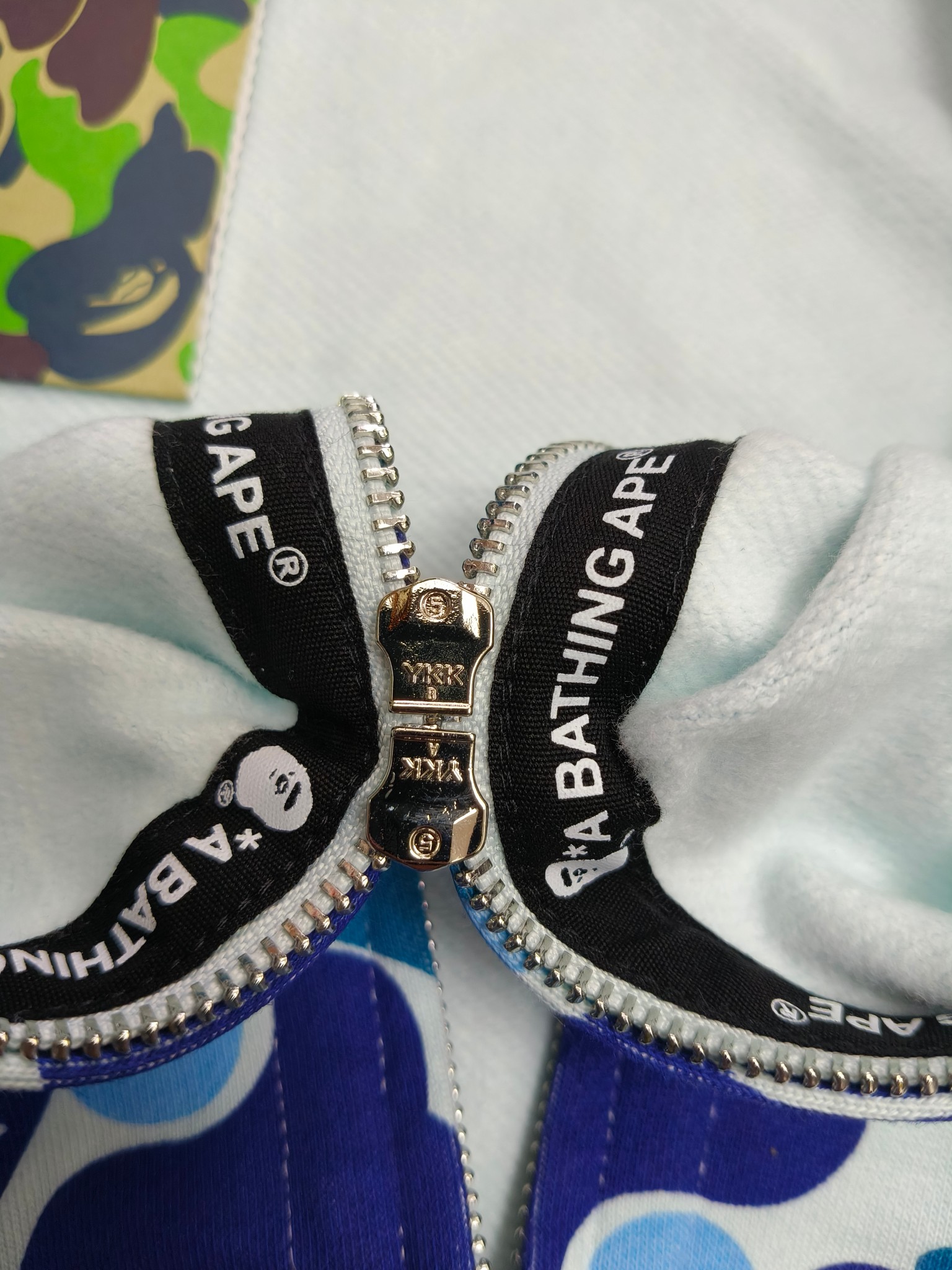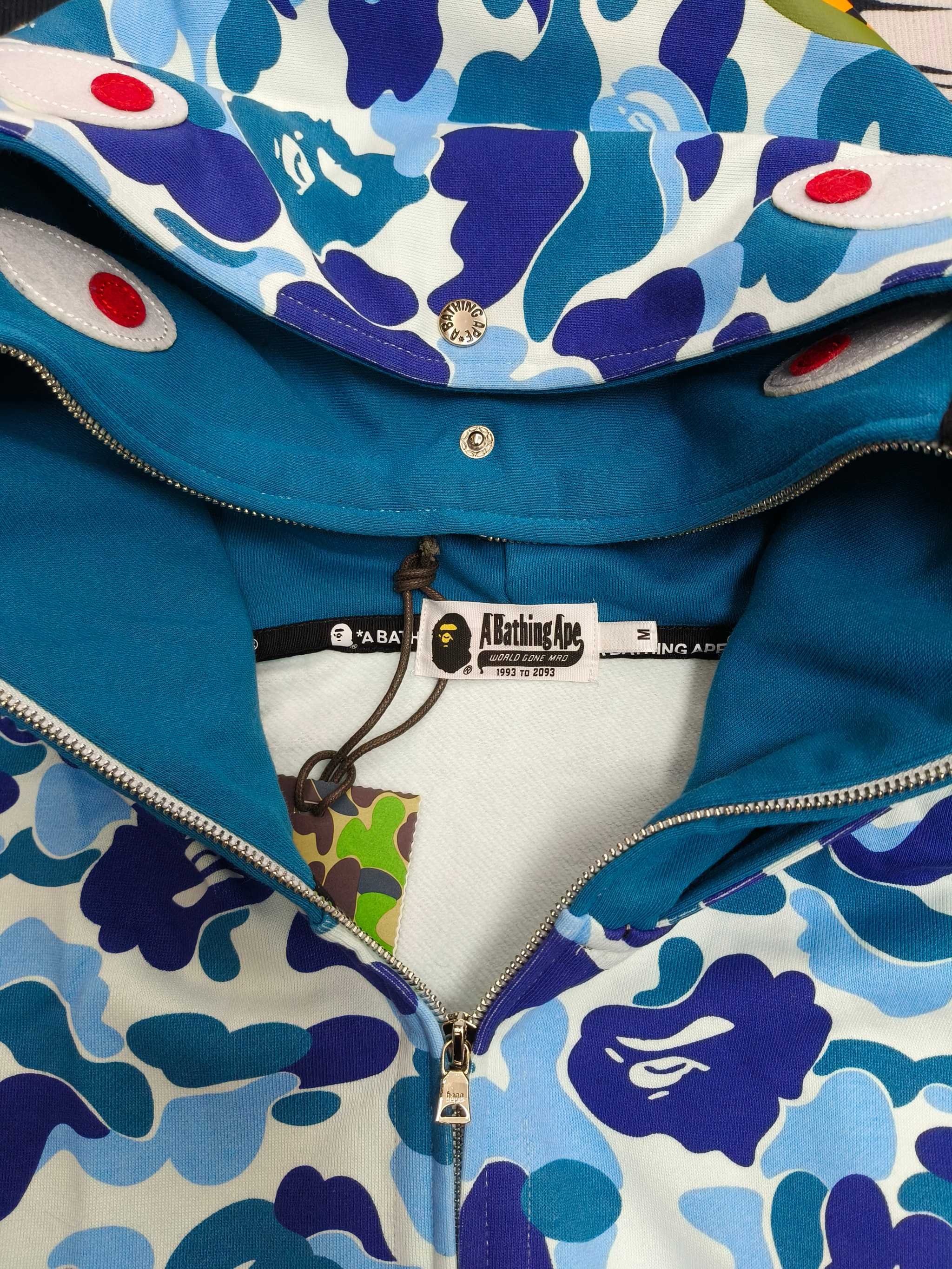 這款衣服是AAAAA 1:1 質量(非常棒). 使用了和原版一模一樣的材料. 商標部分也保持了和Bape一樣. 圖片拍攝是實物衣服拍攝, 您所收到的實物保證和我們圖片一模一樣.