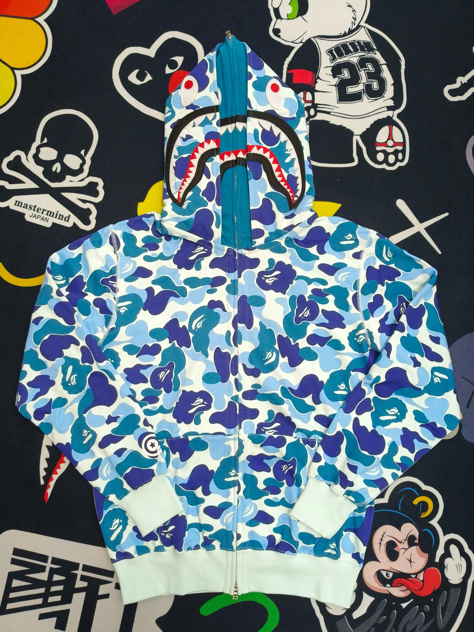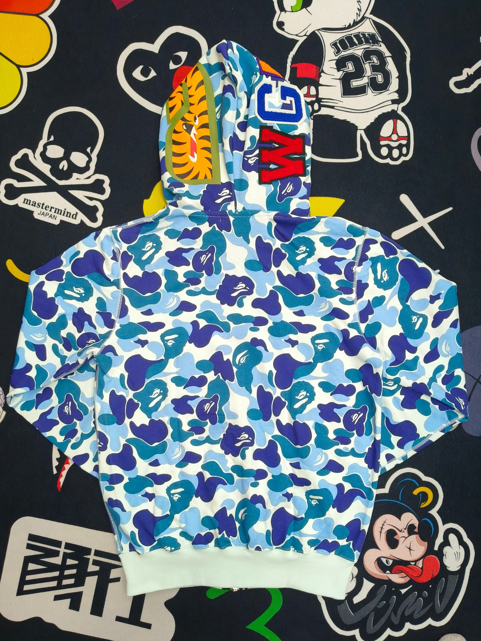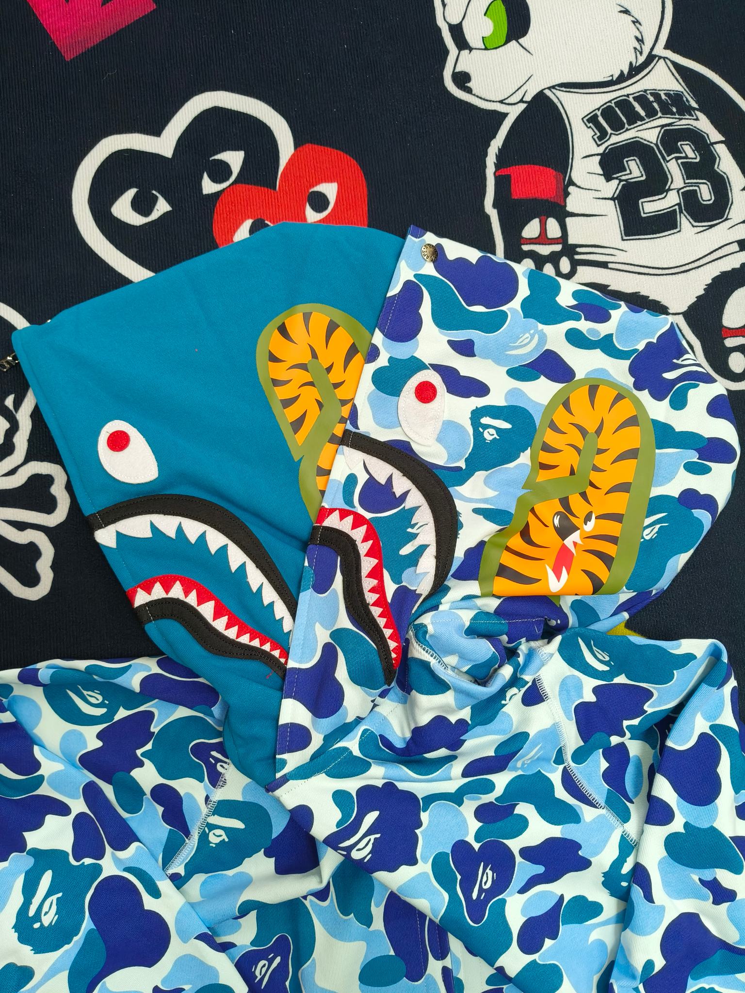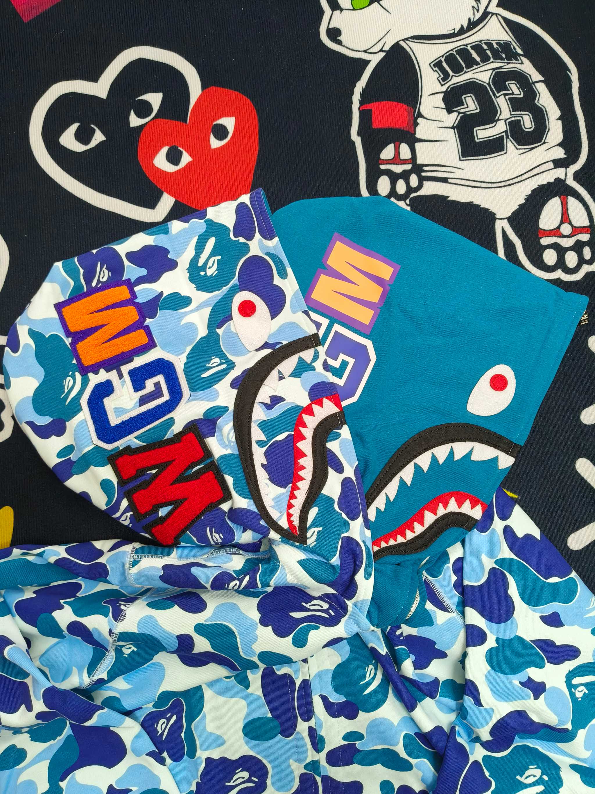 這款衣服是AAAAA 1:1 質量(非常棒). 使用了和原版一模一樣的材料. 商標部分也保持了和Bape一樣. 圖片拍攝是實物衣服拍攝, 您所收到的實物保證和我們圖片一模一樣.