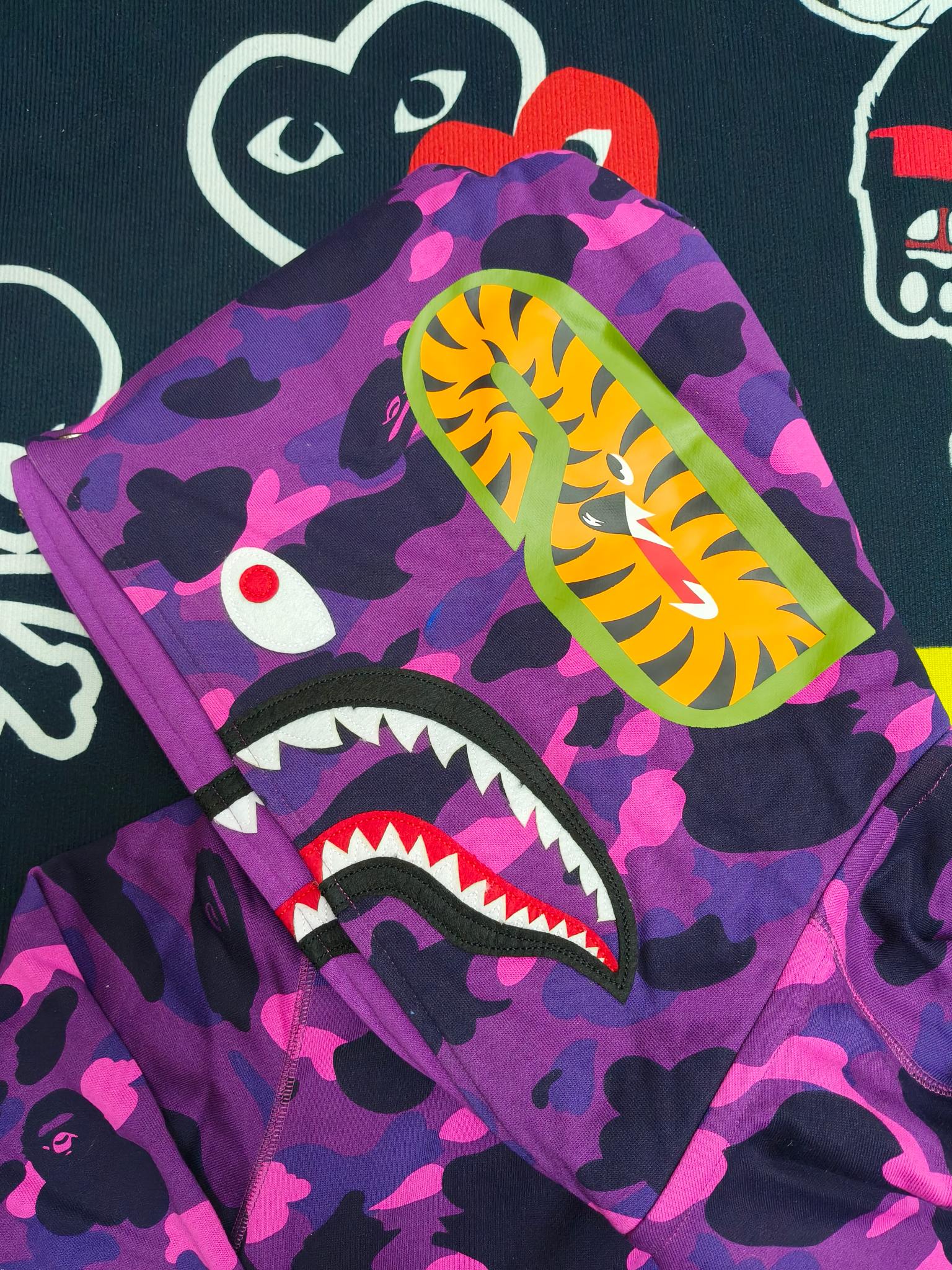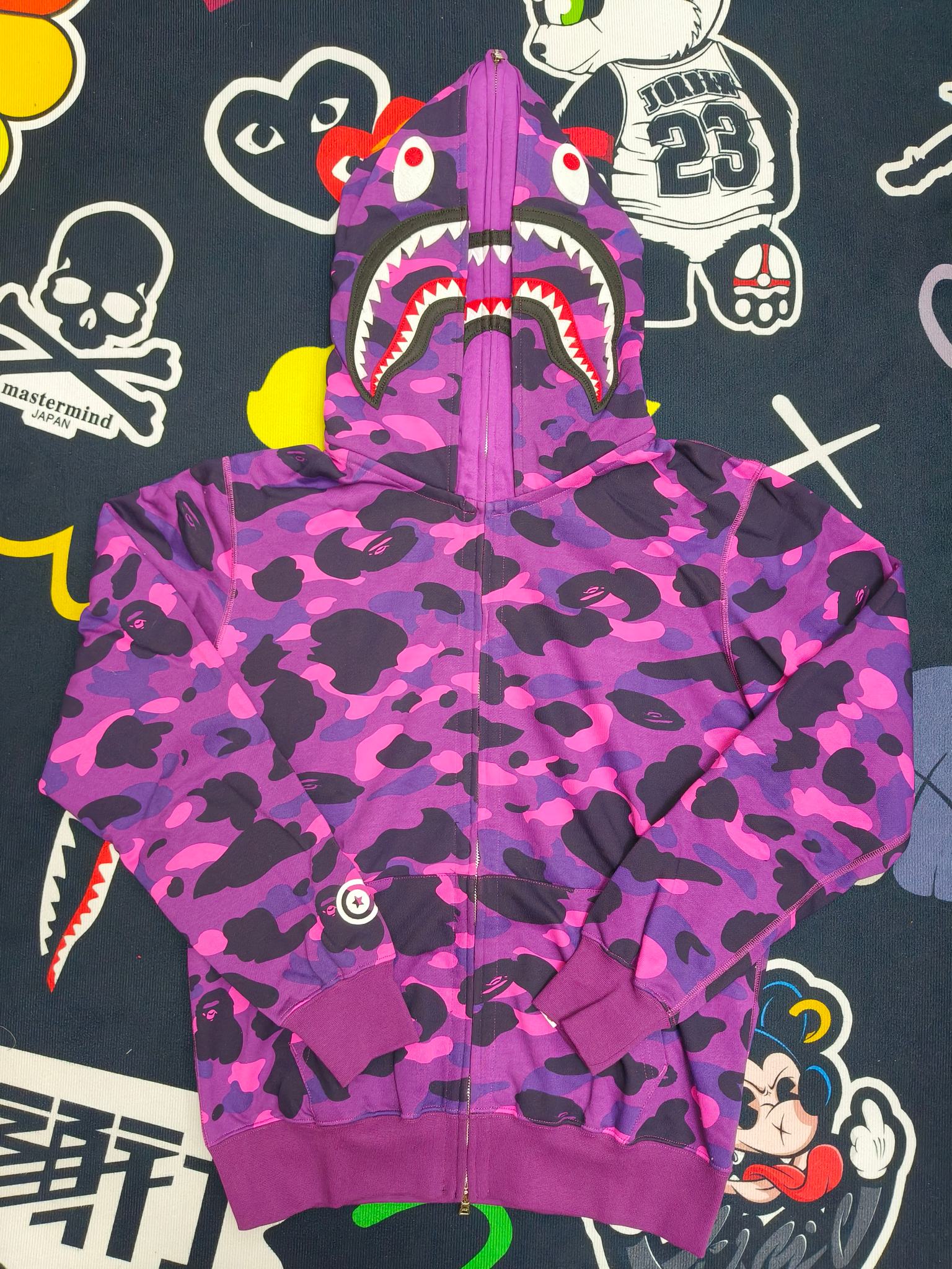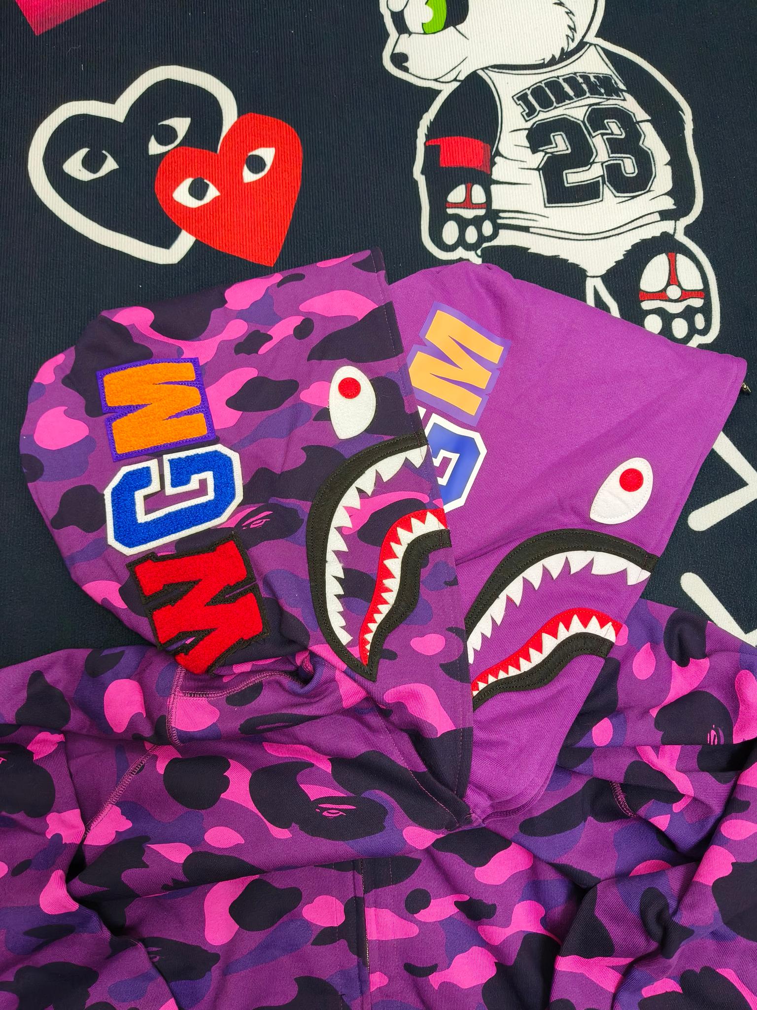 這款衣服是AAAAA 1:1 質量(非常棒). 使用了和原版一模一樣的材料. 商標部分也保持了和Bape一樣. 圖片拍攝是實物衣服拍攝, 您所收到的實物保證和我們圖片一模一樣.