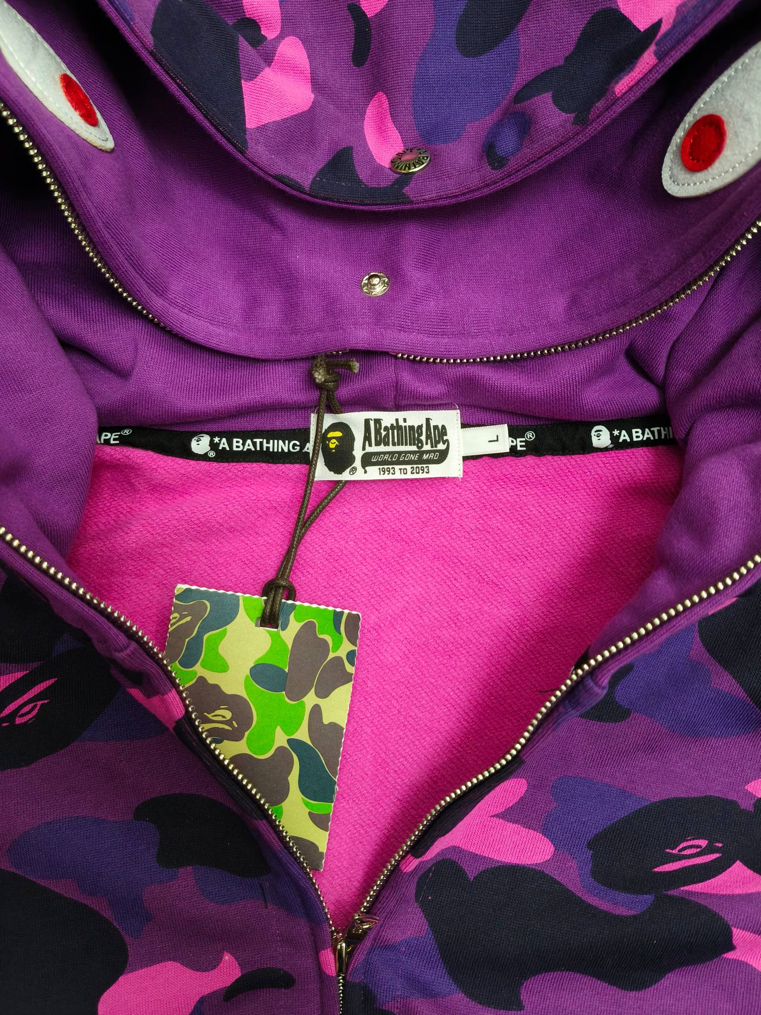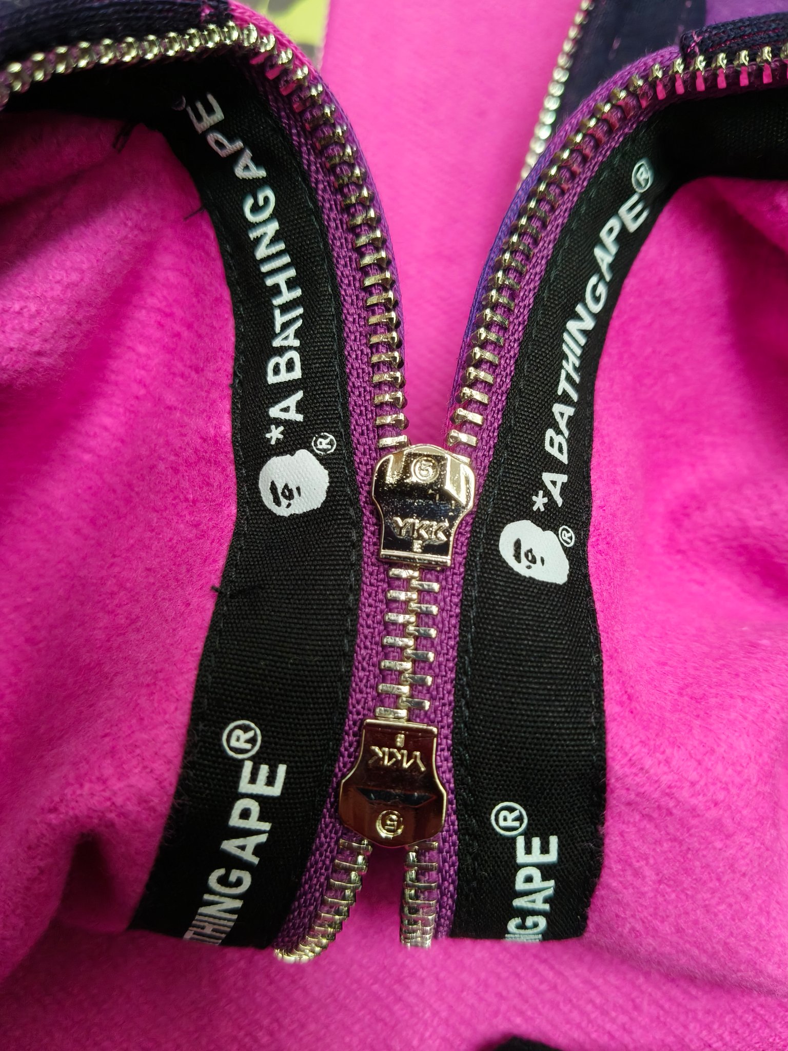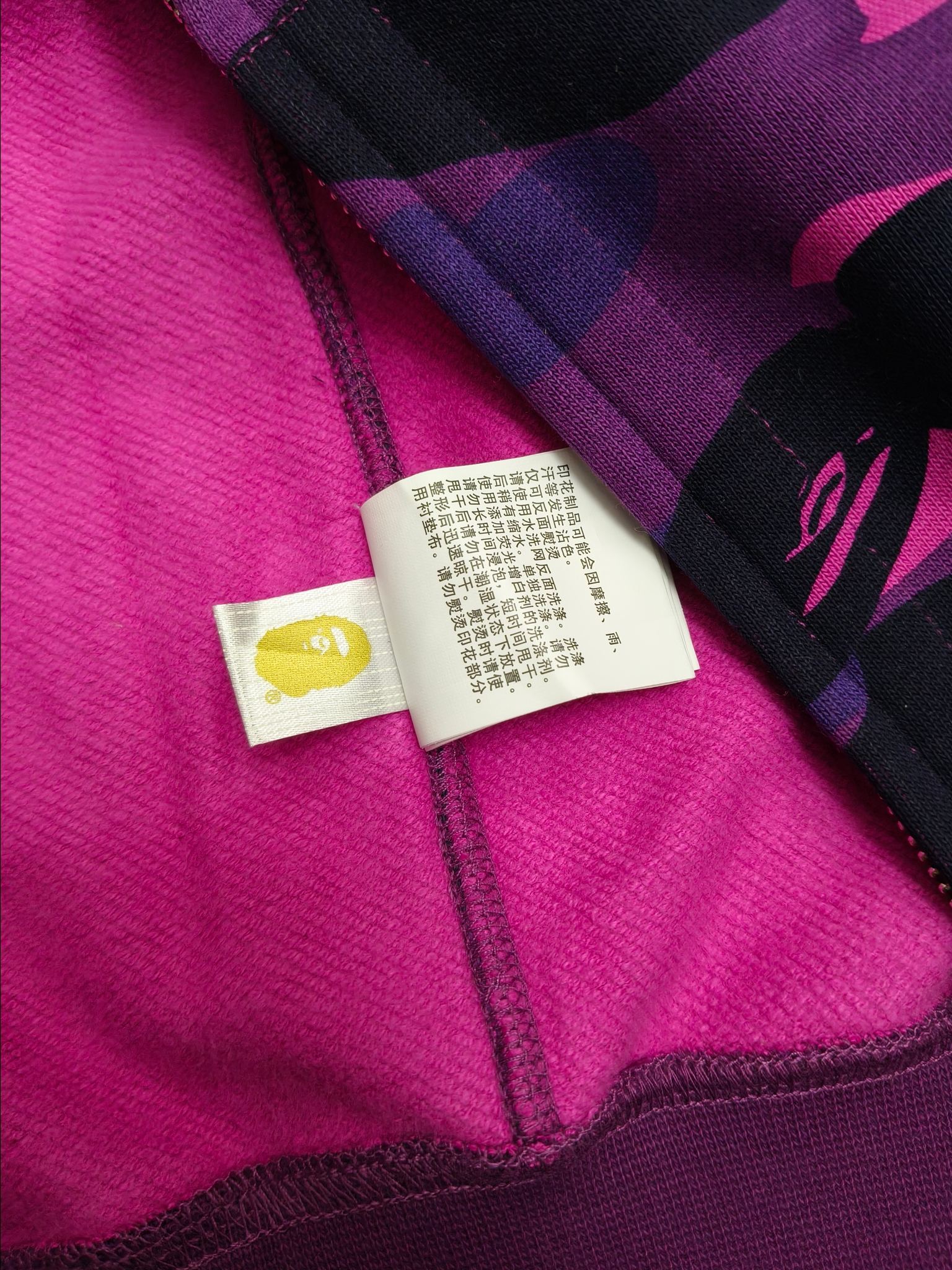 這款衣服是AAAAA 1:1 質量(非常棒). 使用了和原版一模一樣的材料. 商標部分也保持了和Bape一樣. 圖片拍攝是實物衣服拍攝, 您所收到的實物保證和我們圖片一模一樣.