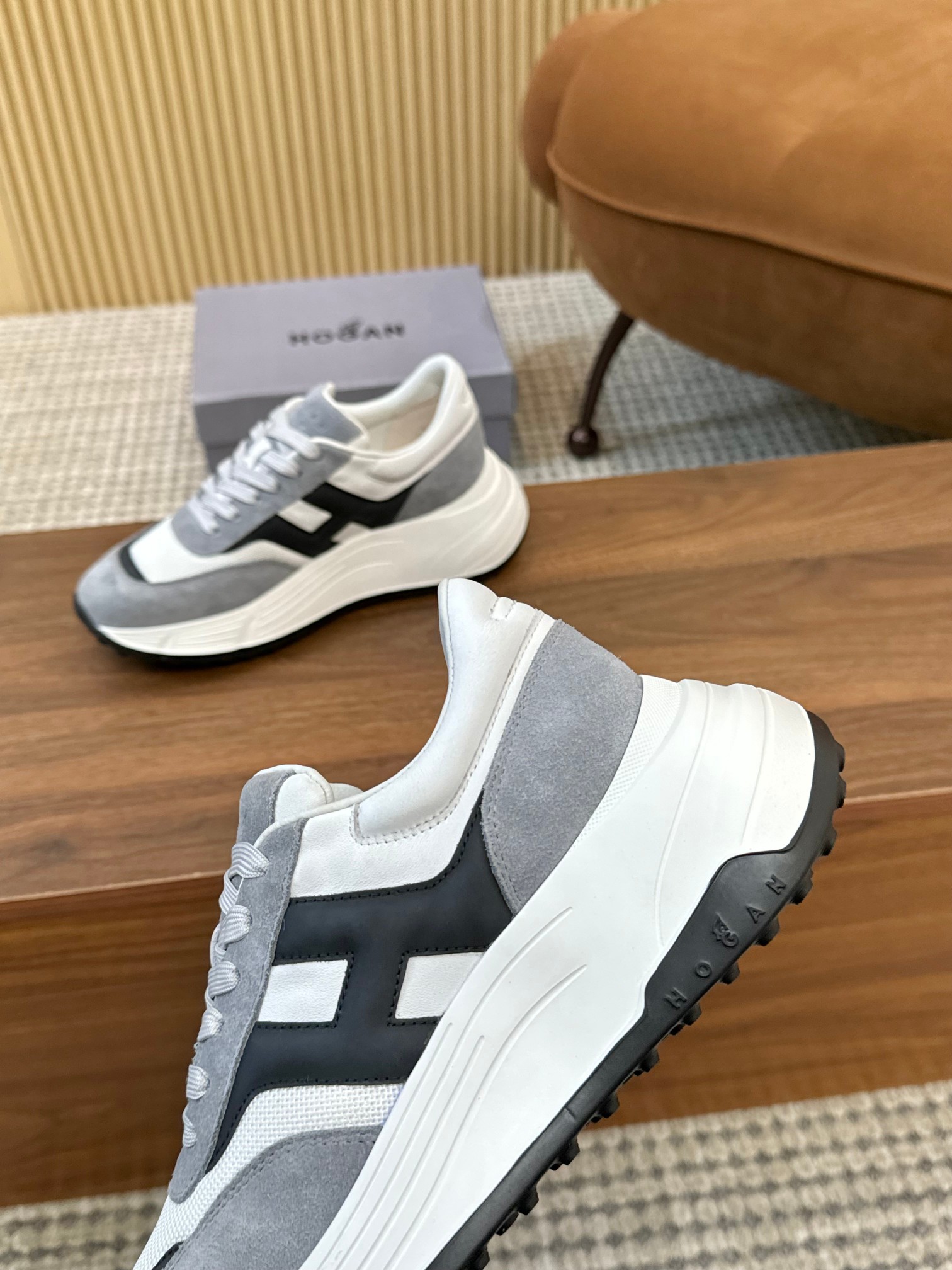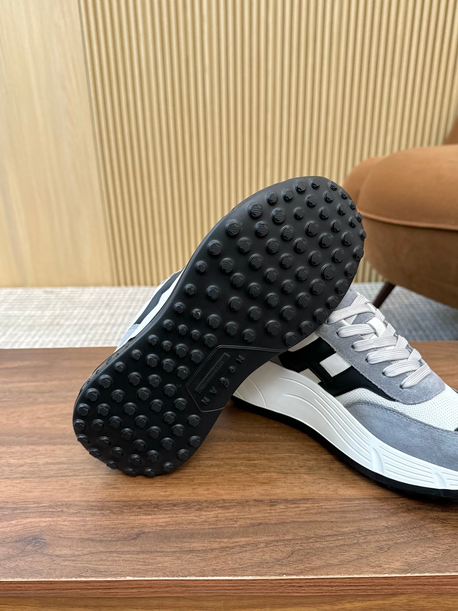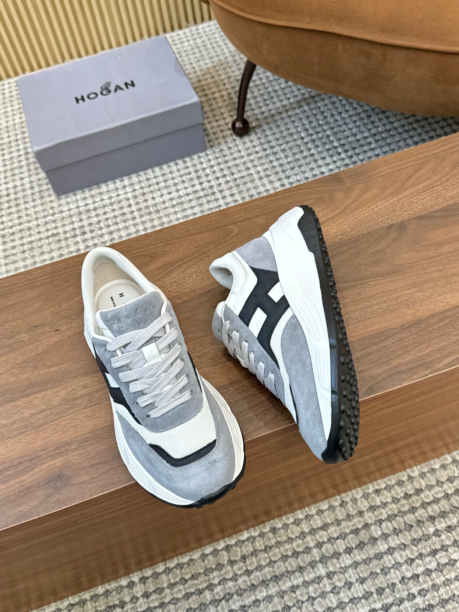 這款鞋子是AAAAA 1:1 質量(非常棒). 使用了和原版一模一樣的材料. 商標部分也保持了和Hogan一樣. 圖片拍攝是實物鞋子拍攝, 您所收到的實物保證和我們圖片一模一樣.
