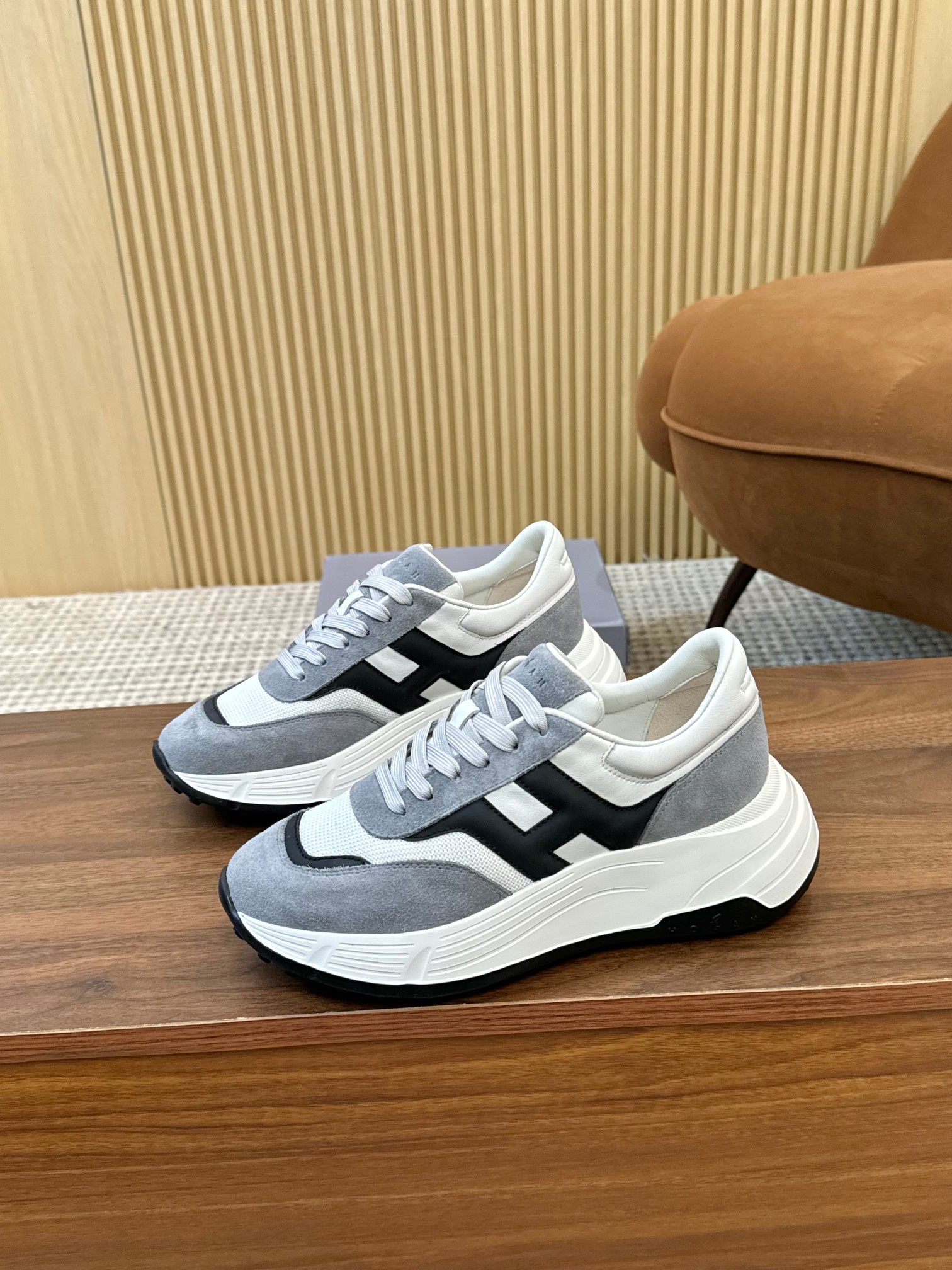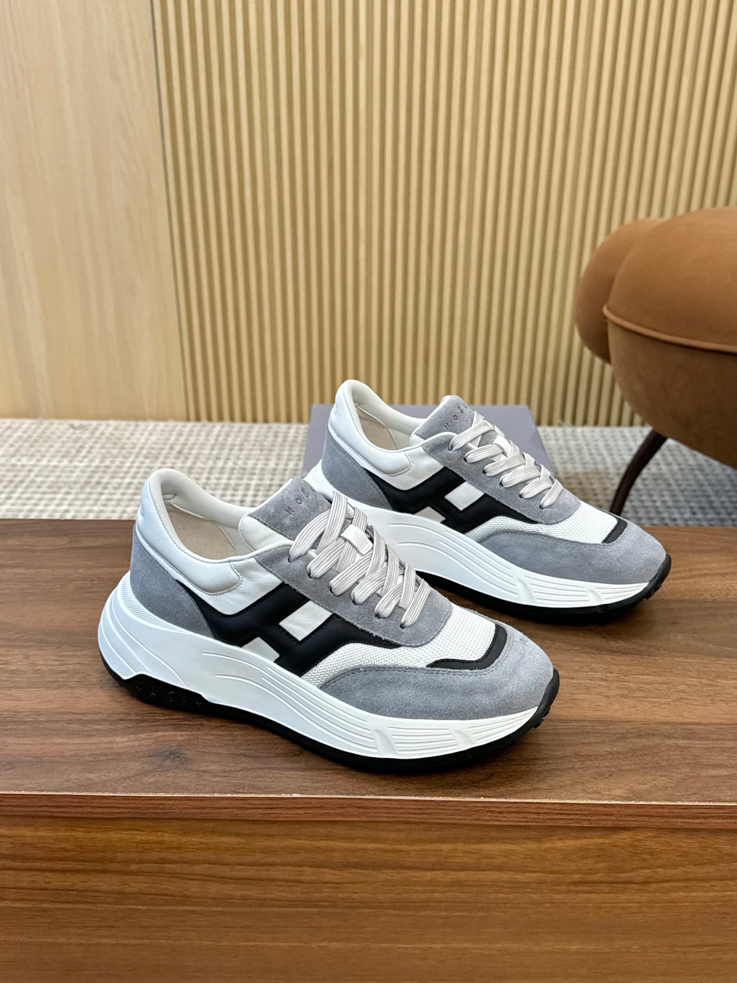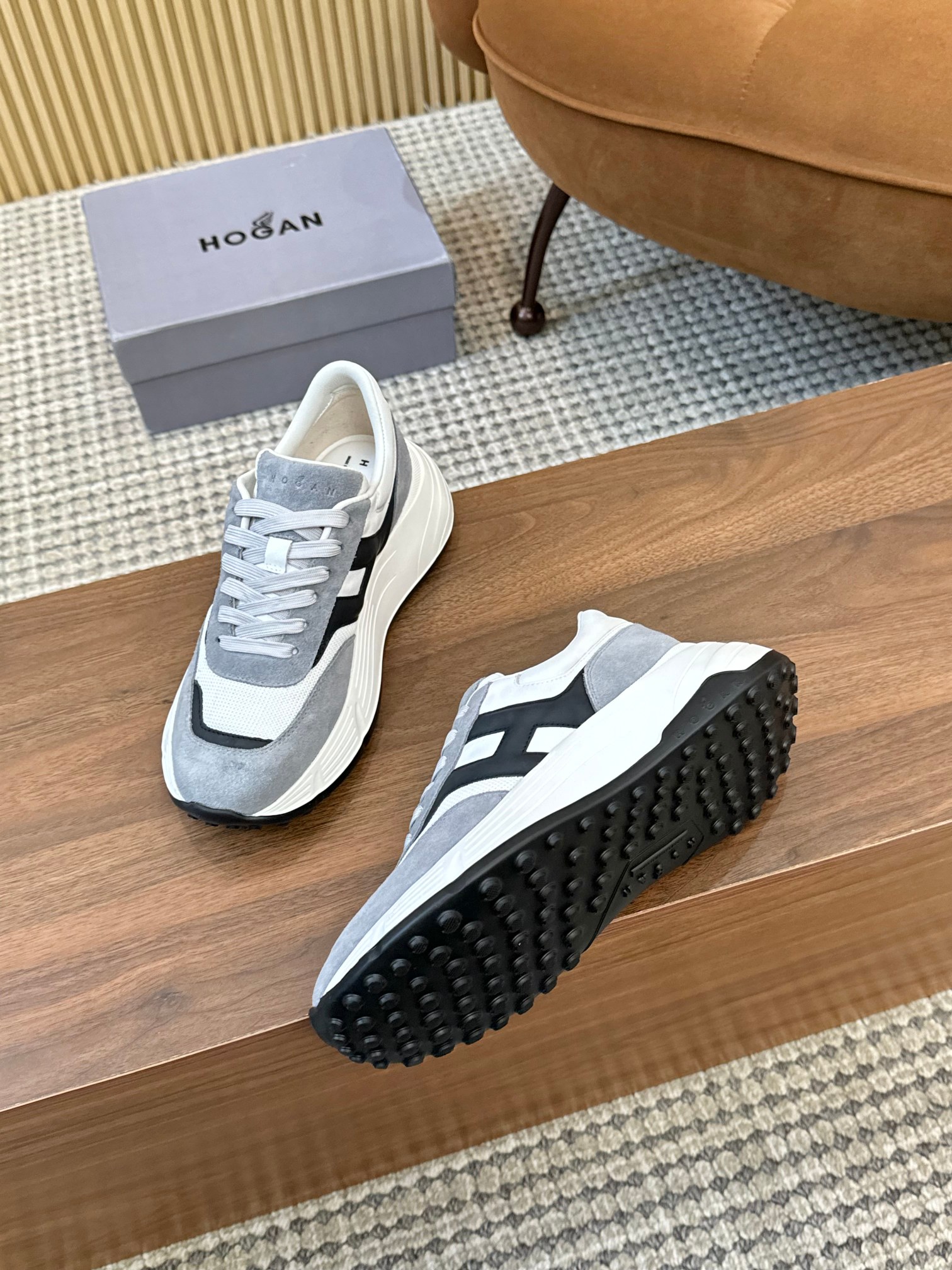這款鞋子是AAAAA 1:1 質量(非常棒). 使用了和原版一模一樣的材料. 商標部分也保持了和Hogan一樣. 圖片拍攝是實物鞋子拍攝, 您所收到的實物保證和我們圖片一模一樣.