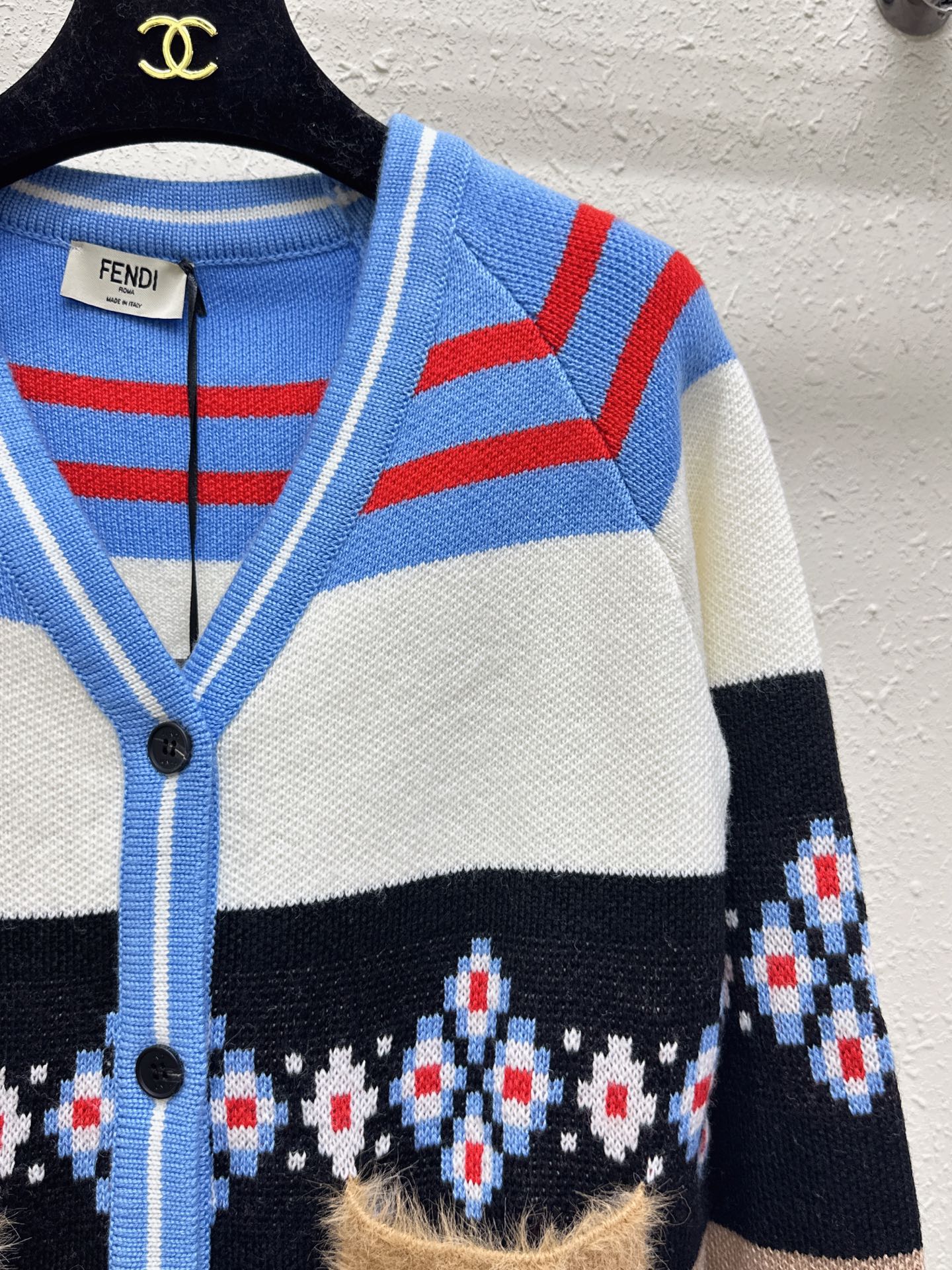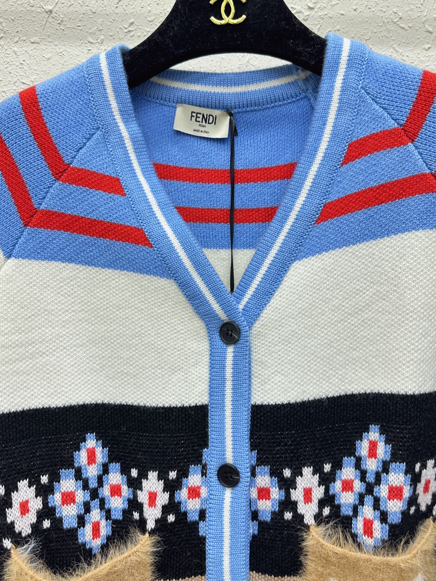 這款衣服是AAAAA 1:1 質量(非常棒). 使用了和原版一模一樣的材料. 商標部分也保持了和芬迪/Fendi一樣. 圖片拍攝是實物衣服拍攝, 您所收到的實物保證和我們圖片一模一樣.