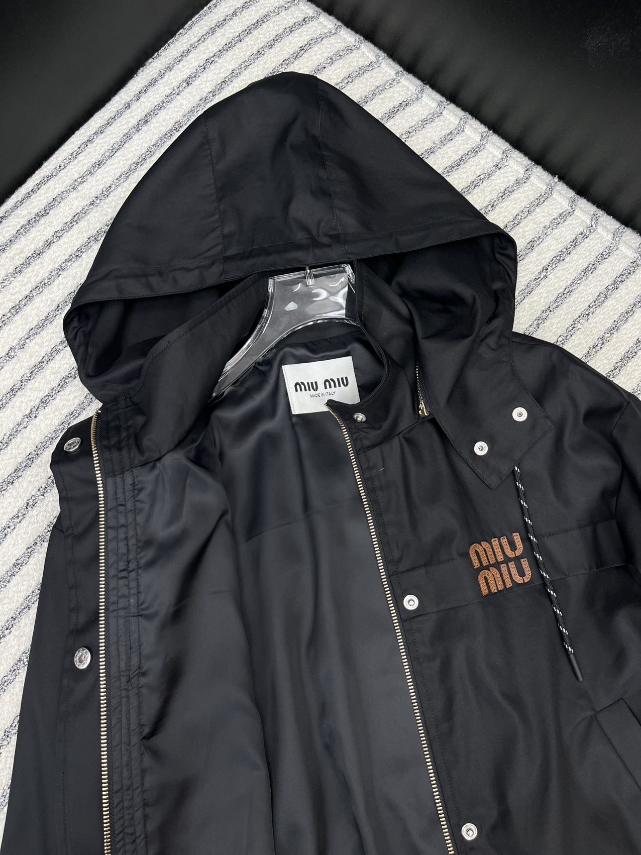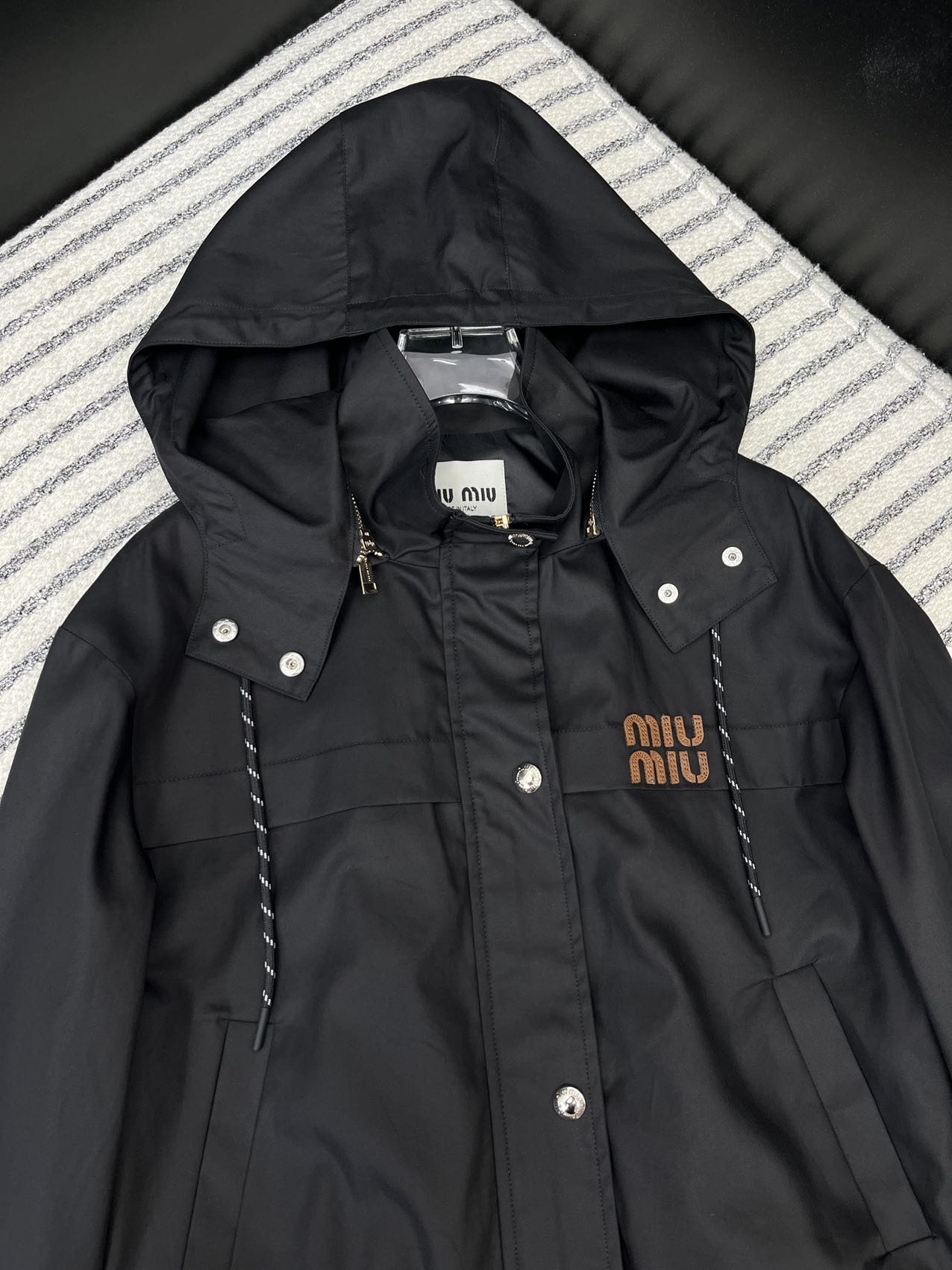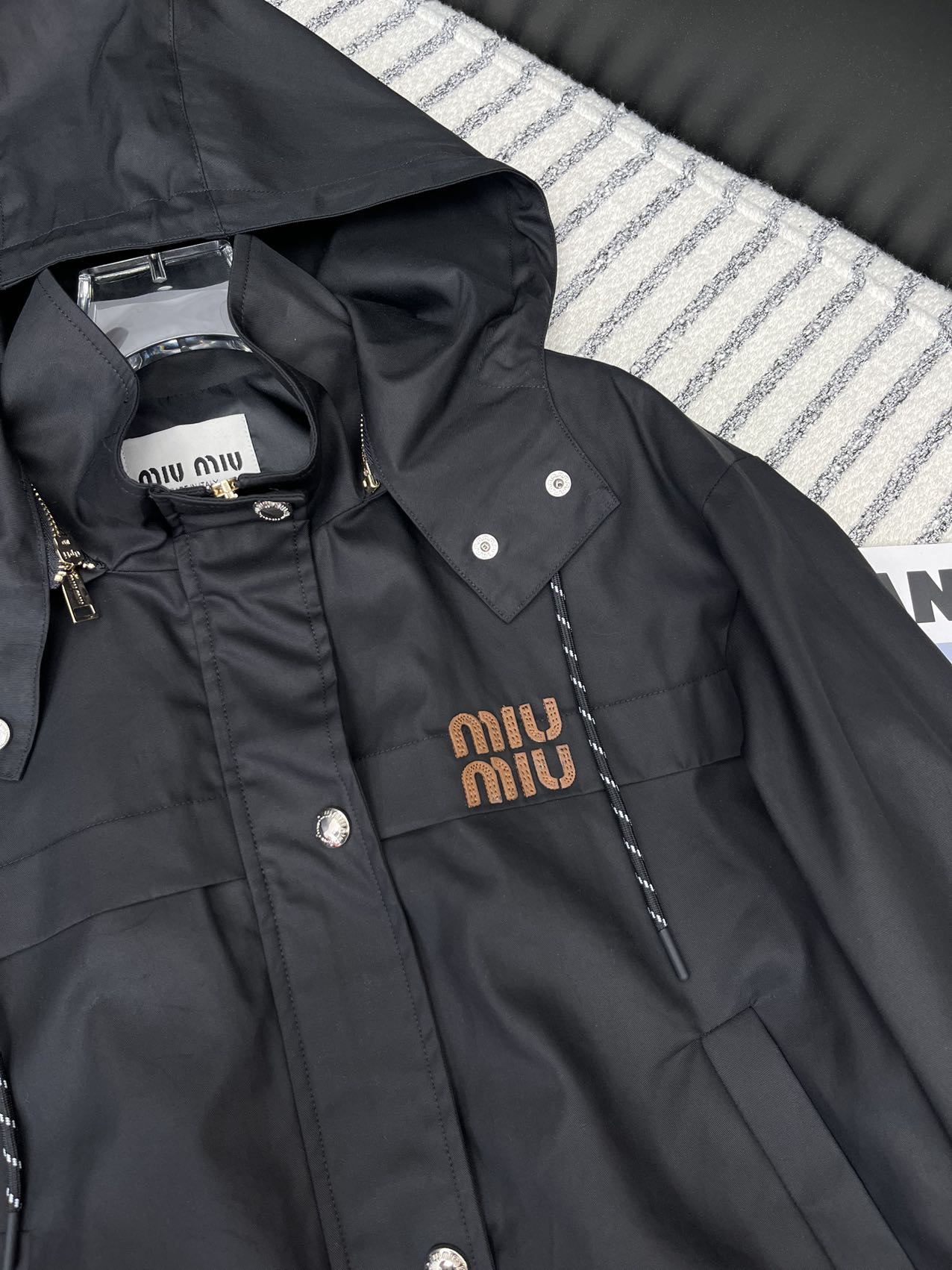 這款衣服是AAAAA 1:1 質量(非常棒). 使用了和原版一模一樣的材料. 商標部分也保持了和繆繆/Miu Miu一樣. 圖片拍攝是實物衣服拍攝, 您所收到的實物保證和我們圖片一模一樣.