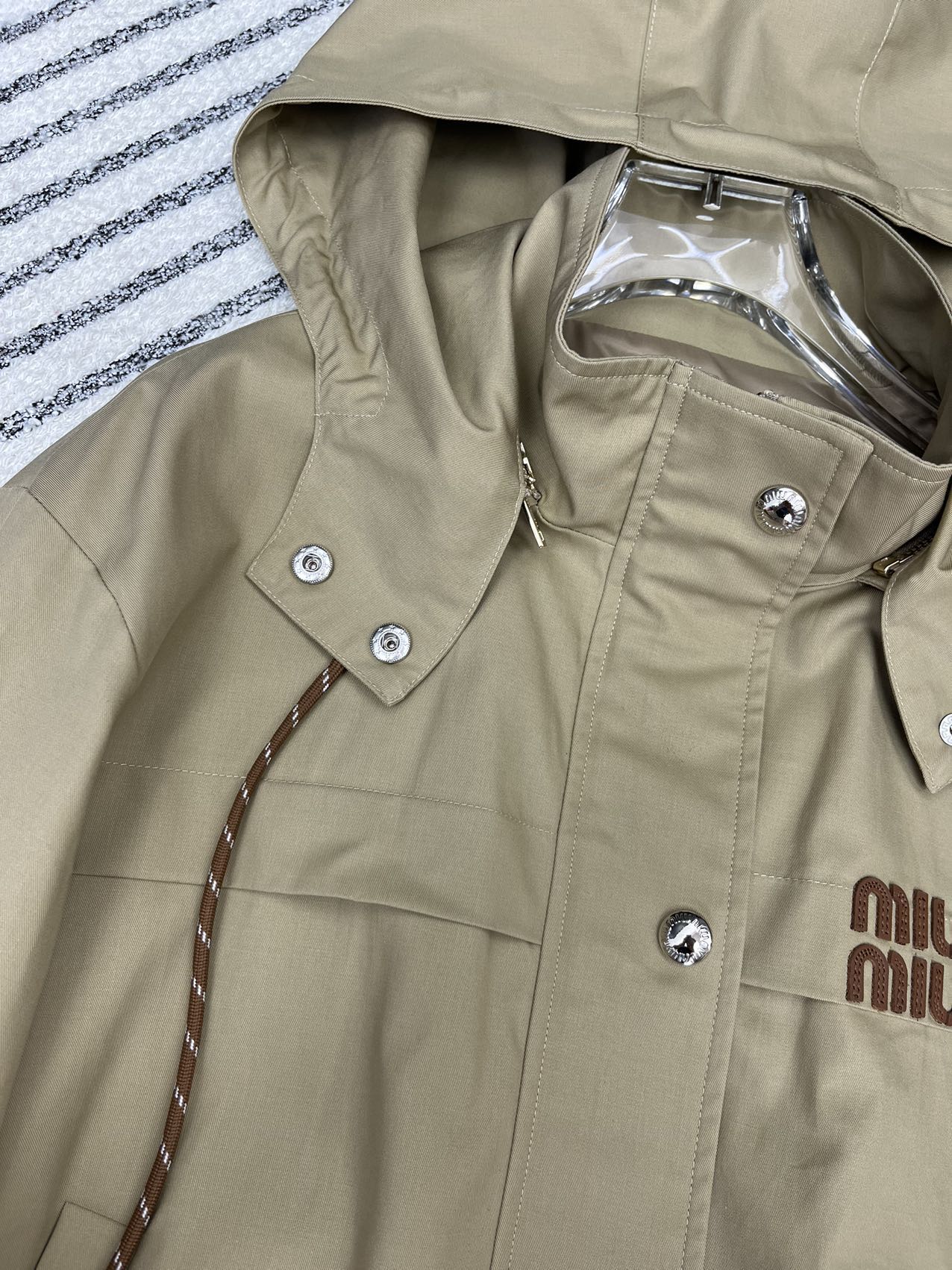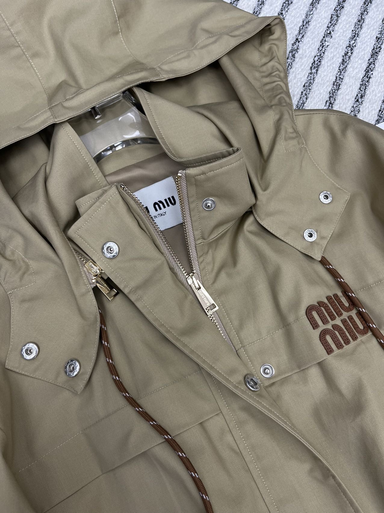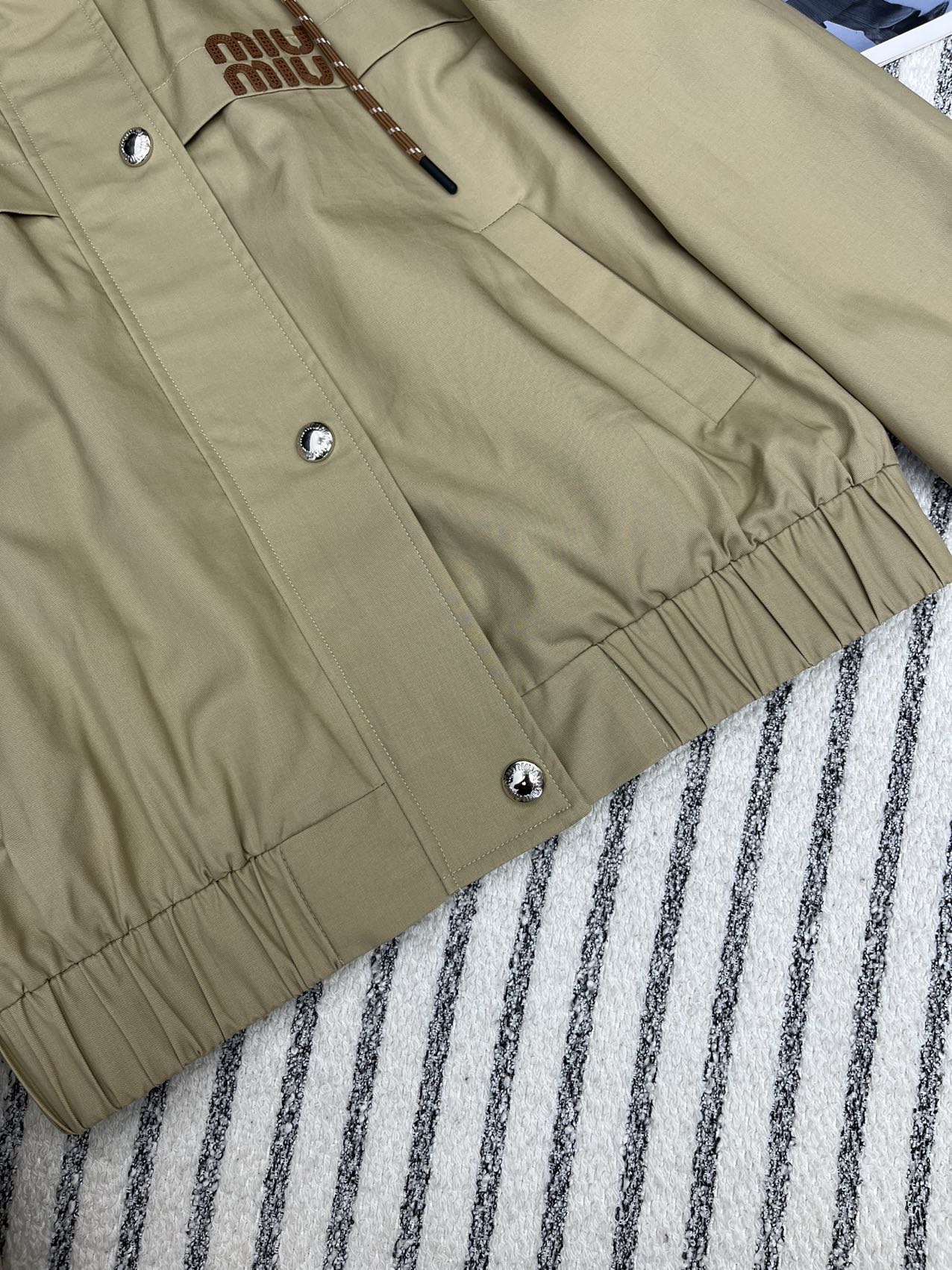 這款衣服是AAAAA 1:1 質量(非常棒). 使用了和原版一模一樣的材料. 商標部分也保持了和繆繆/Miu Miu一樣. 圖片拍攝是實物衣服拍攝, 您所收到的實物保證和我們圖片一模一樣.