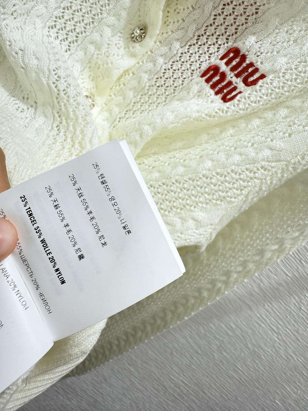 這款衣服是AAAAA 1:1 質量(非常棒). 使用了和原版一模一樣的材料. 商標部分也保持了和繆繆/Miu Miu一樣. 圖片拍攝是實物衣服拍攝, 您所收到的實物保證和我們圖片一模一樣.