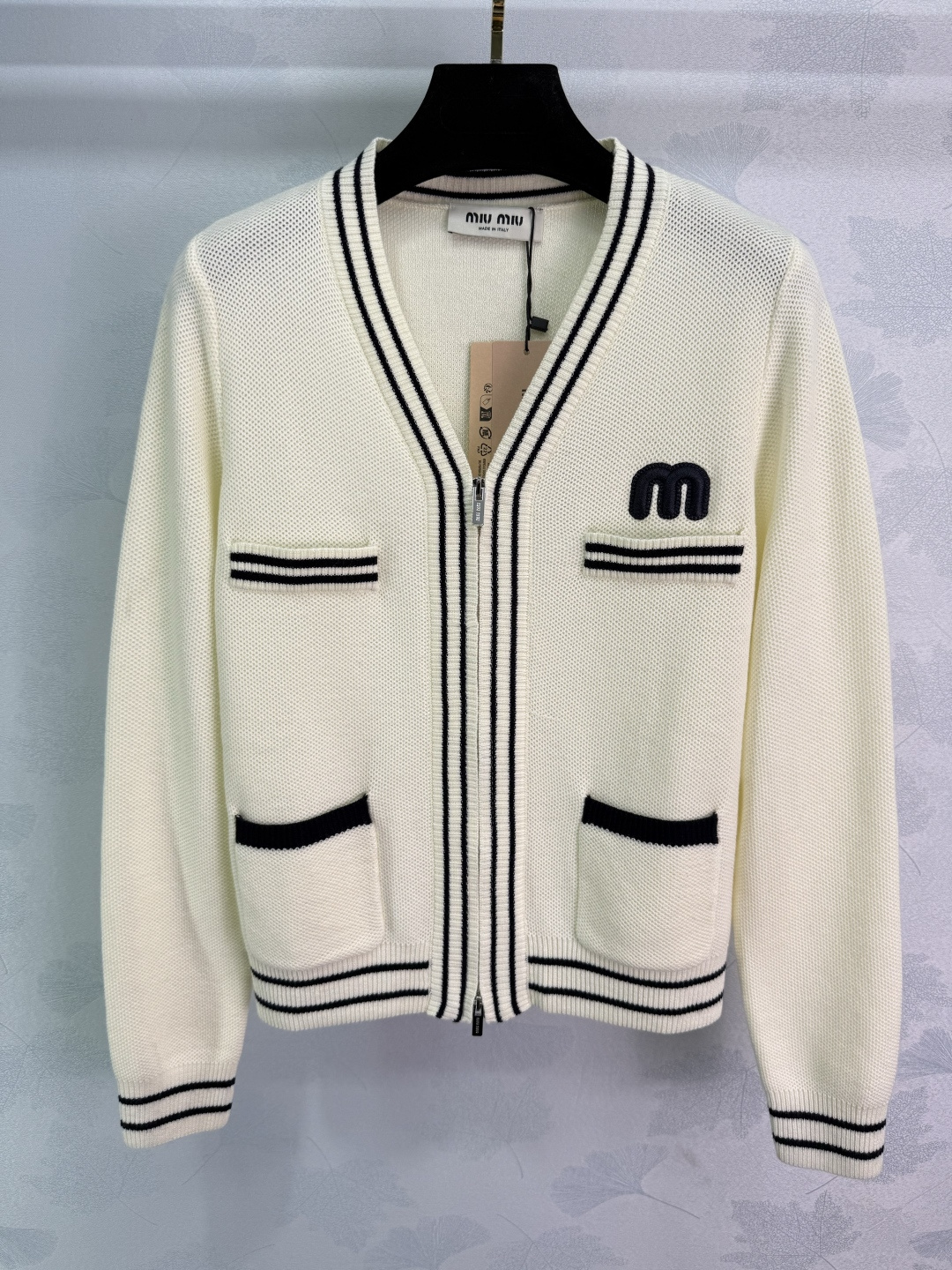 這款衣服是AAAAA 1:1 質量(非常棒). 使用了和原版一模一樣的材料. 商標部分也保持了和繆繆/Miu Miu一樣. 圖片拍攝是實物衣服拍攝, 您所收到的實物保證和我們圖片一模一樣.