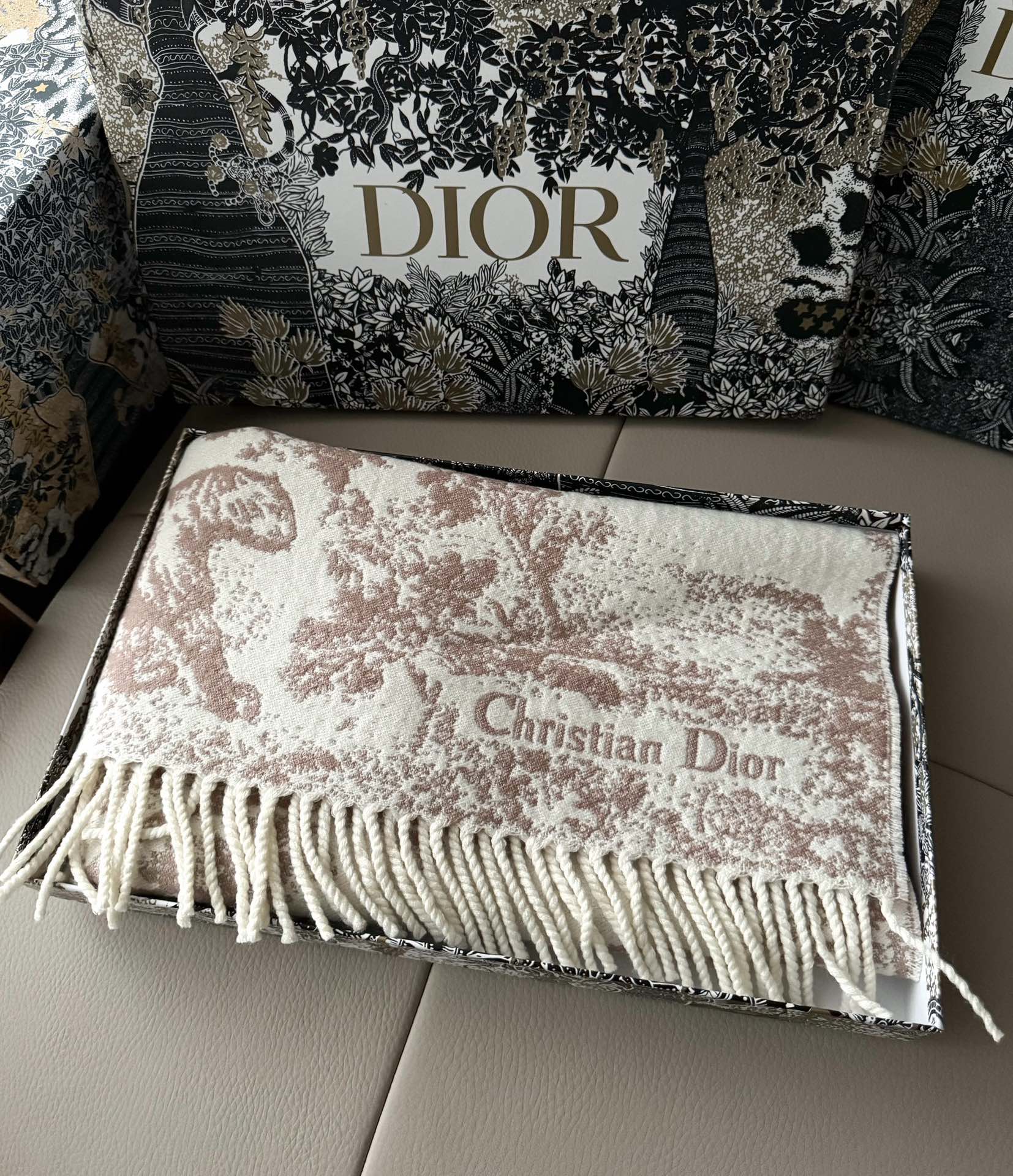 這款圍巾是AAAAA 1:1 質量(非常棒). 使用了和原版一模一樣的材料. 商標部分也保持了和迪奧/Dior一樣. 圖片拍攝是實物圍巾拍攝, 您所收到的實物保證和我們圖片一模一樣.