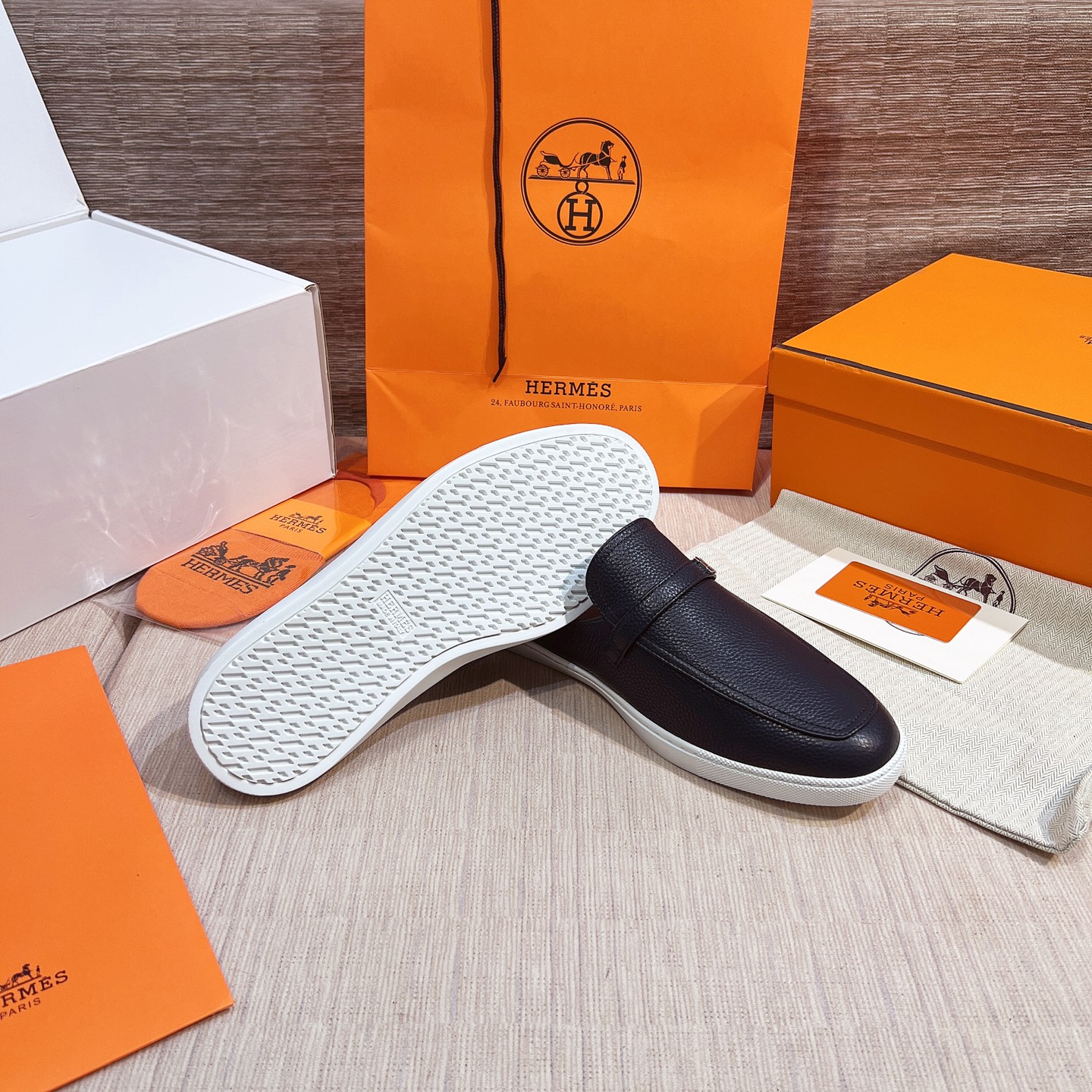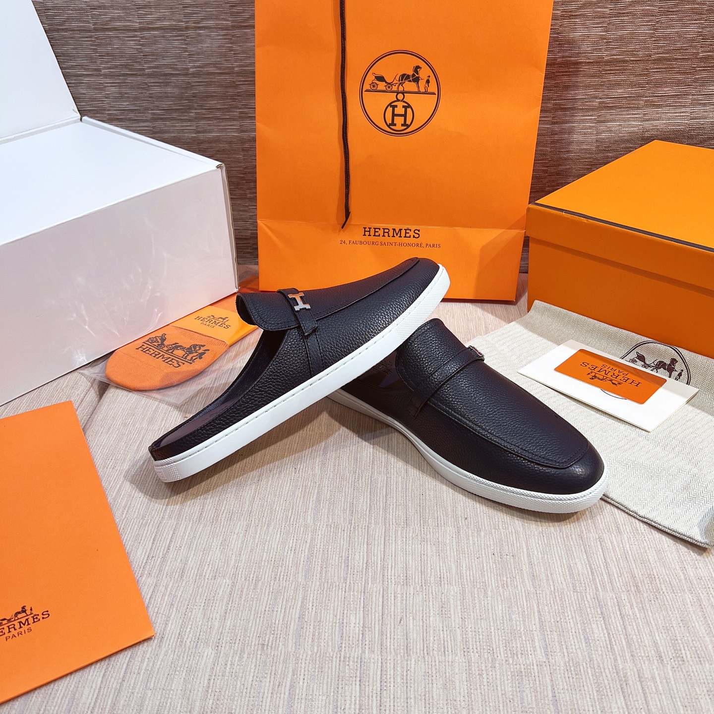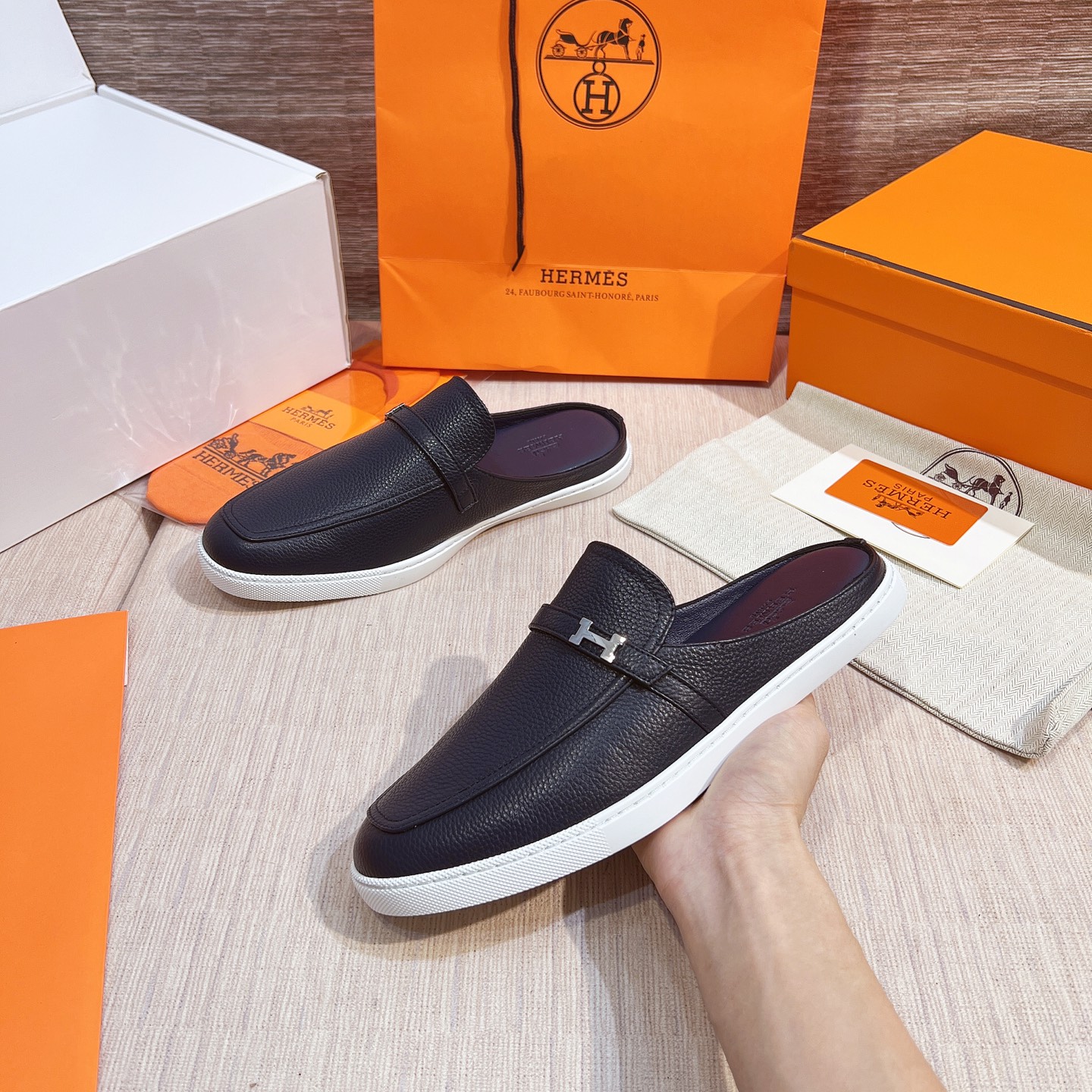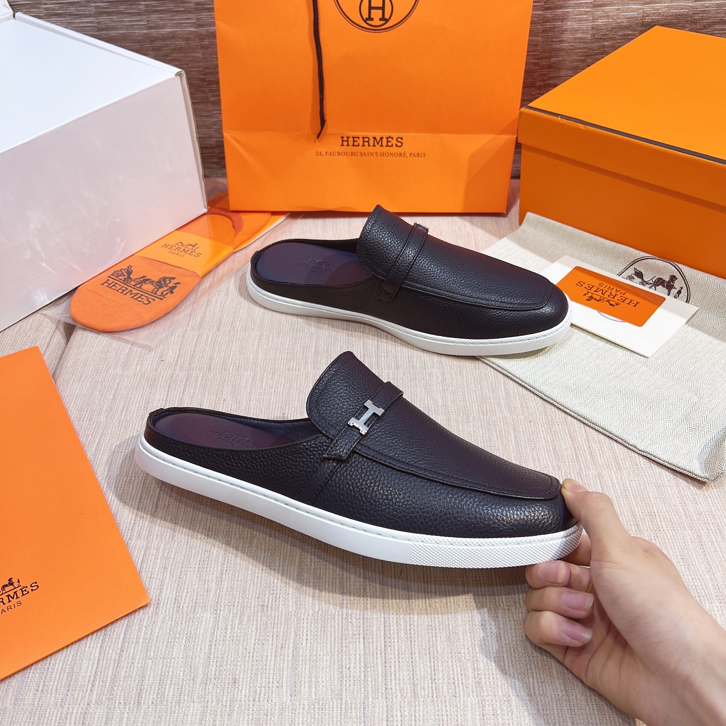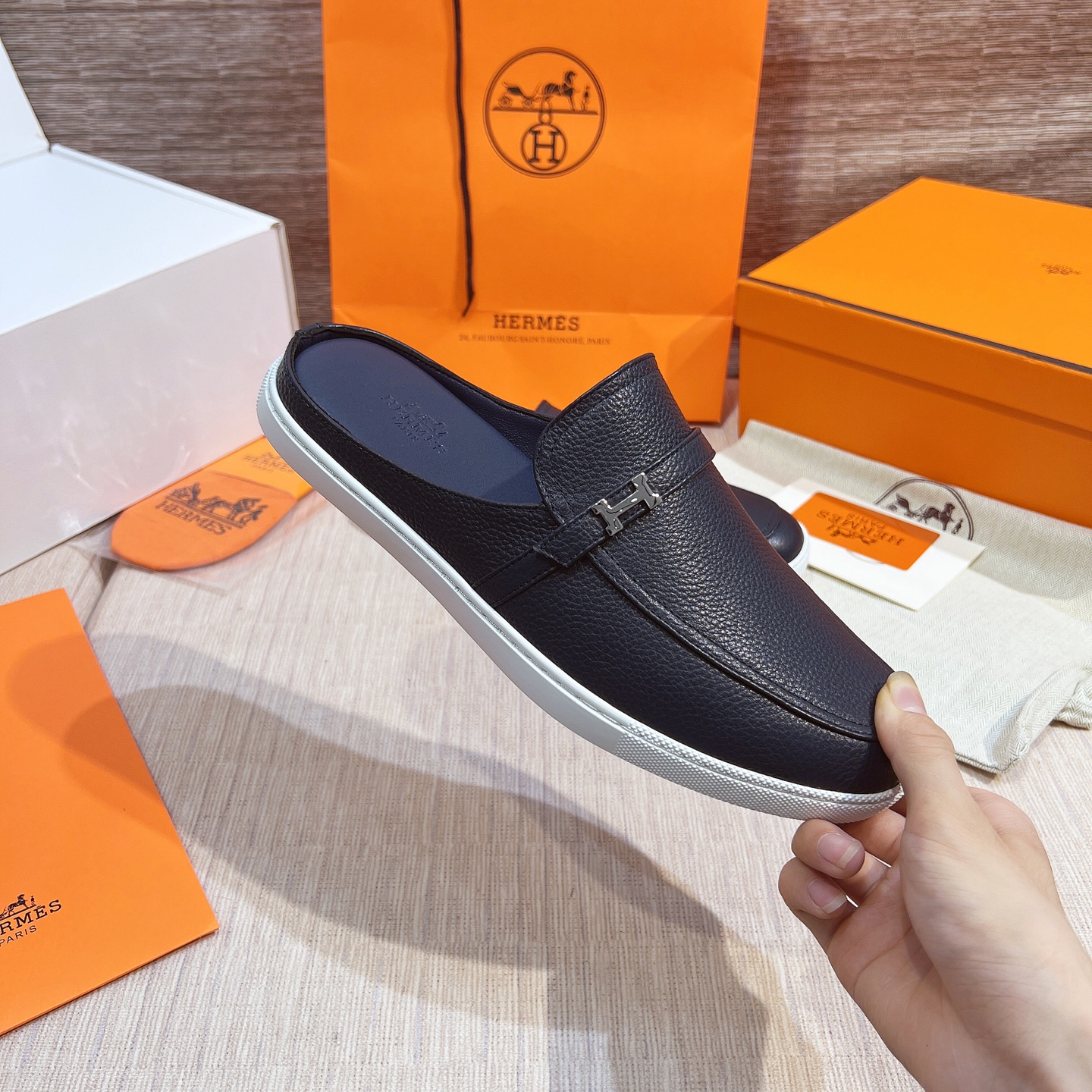 這款鞋子是AAAAA 1:1 質量(非常棒). 使用了和原版一模一樣的材料. 商標部分也保持了和愛馬仕/Hermes一樣. 圖片拍攝是實物鞋子拍攝, 您所收到的實物保證和我們圖片一模一樣.