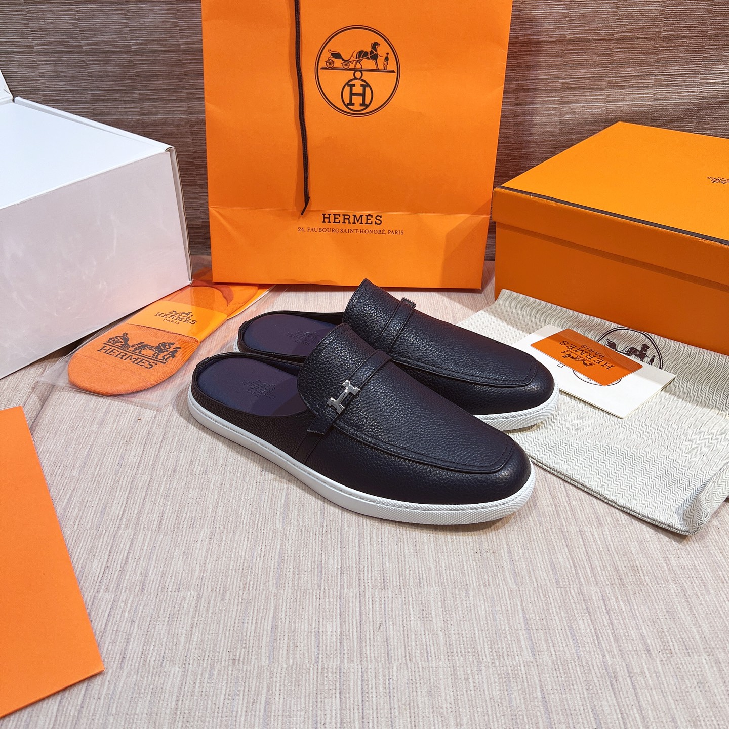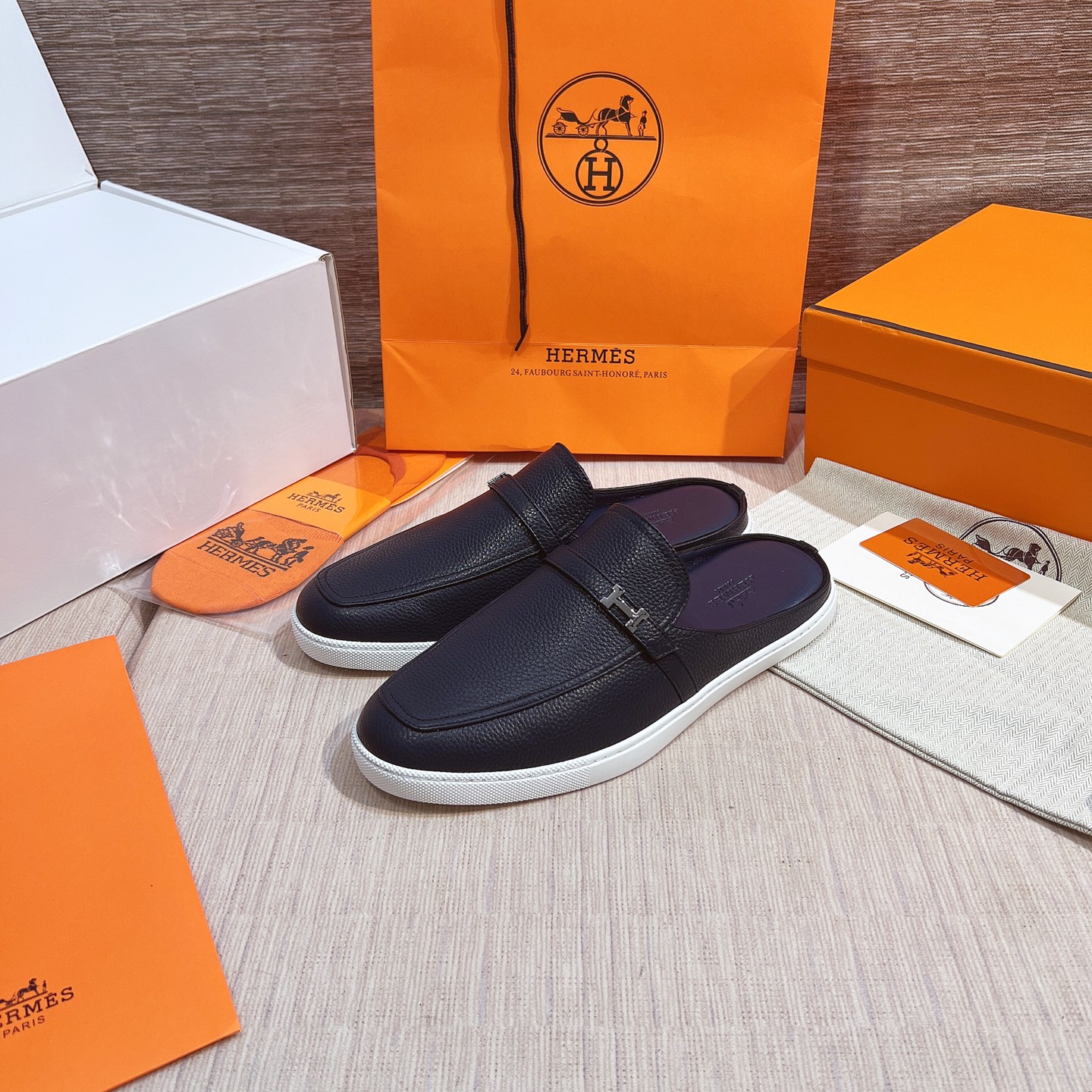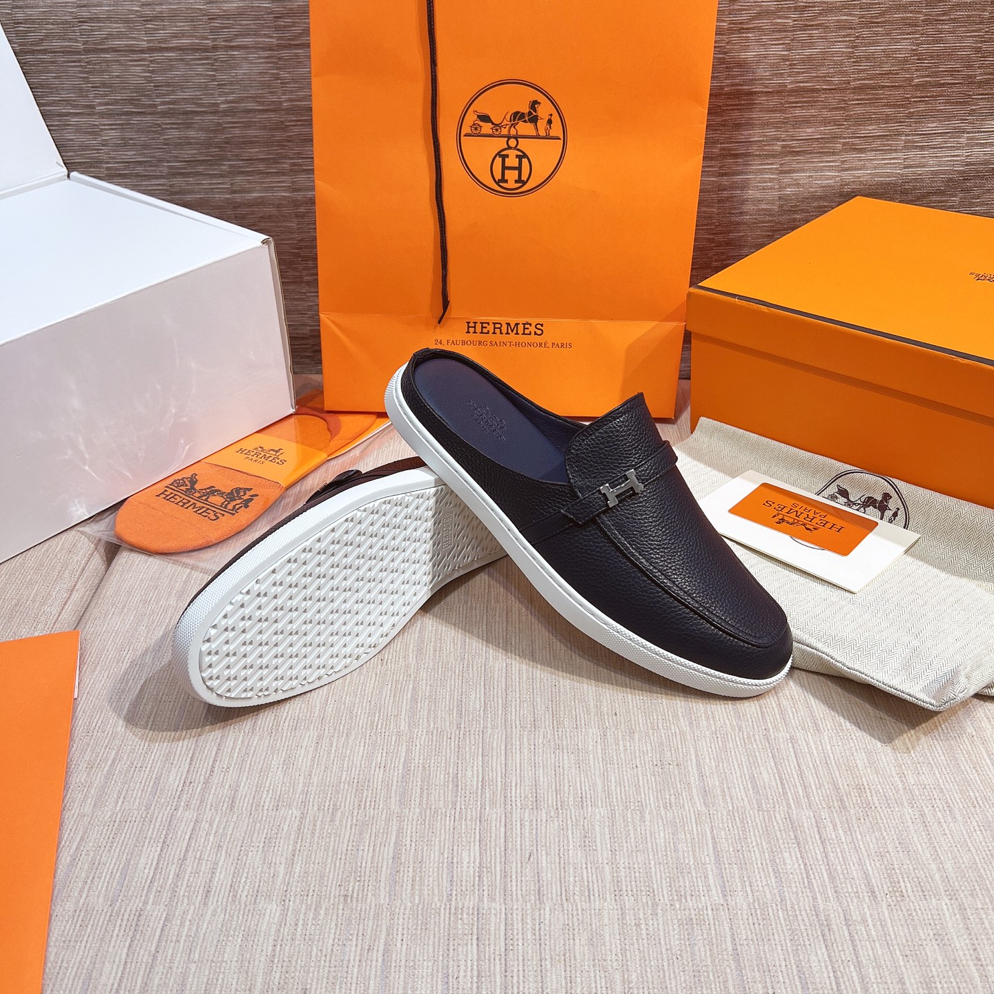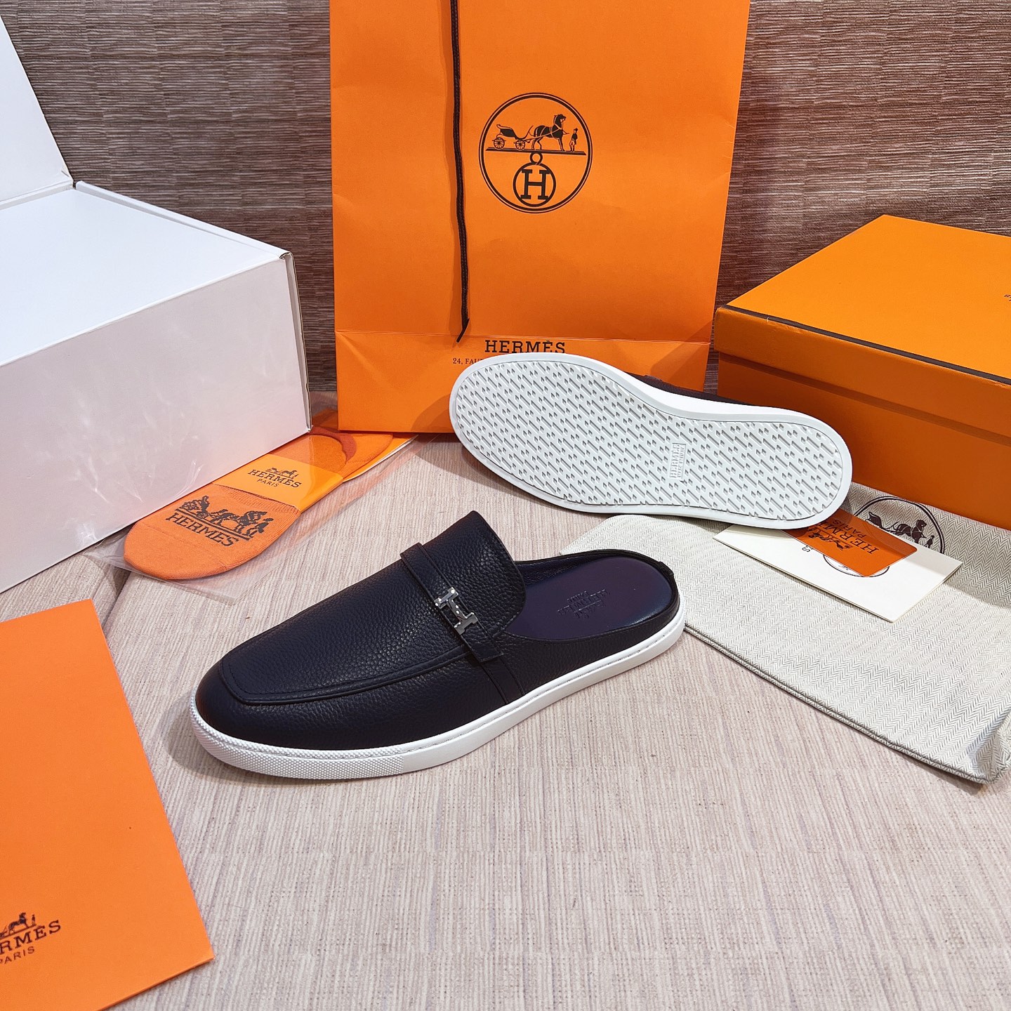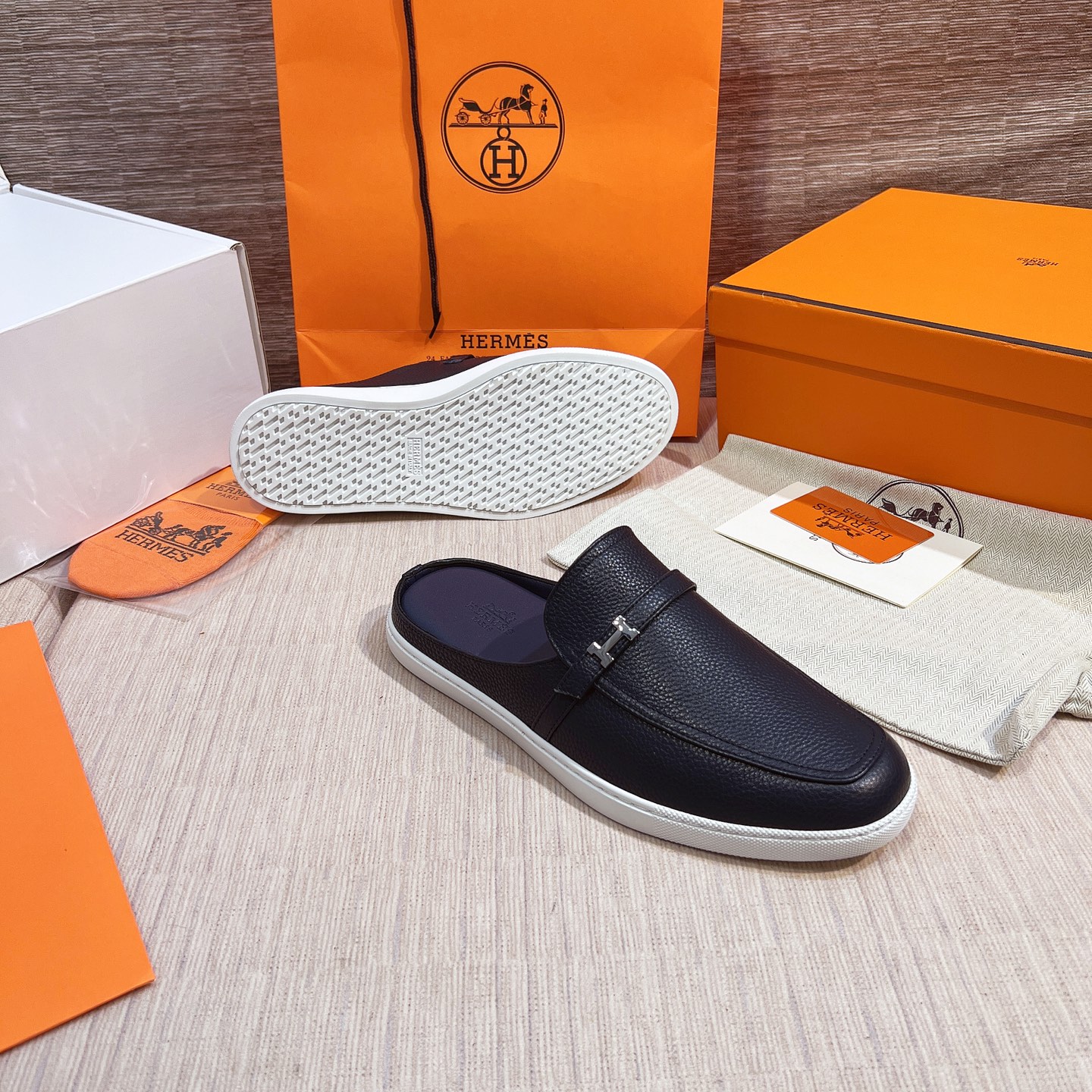 這款鞋子是AAAAA 1:1 質量(非常棒). 使用了和原版一模一樣的材料. 商標部分也保持了和愛馬仕/Hermes一樣. 圖片拍攝是實物鞋子拍攝, 您所收到的實物保證和我們圖片一模一樣.