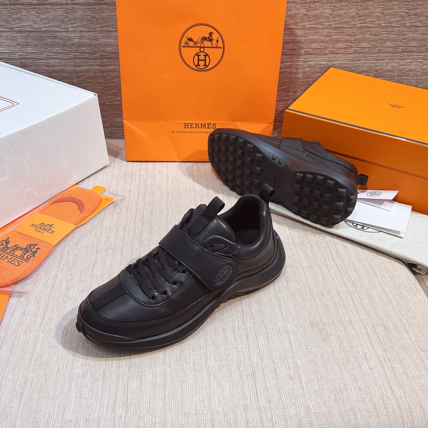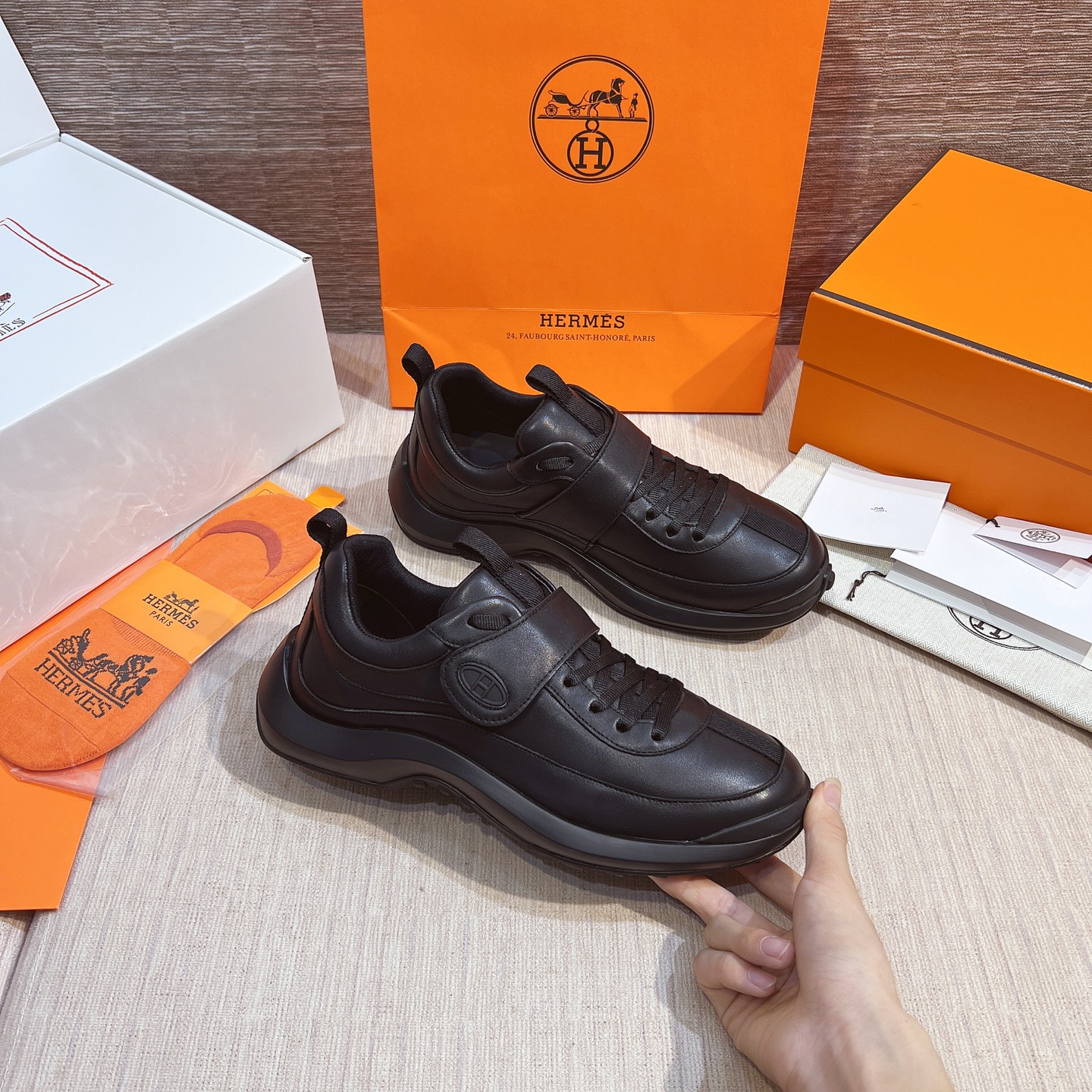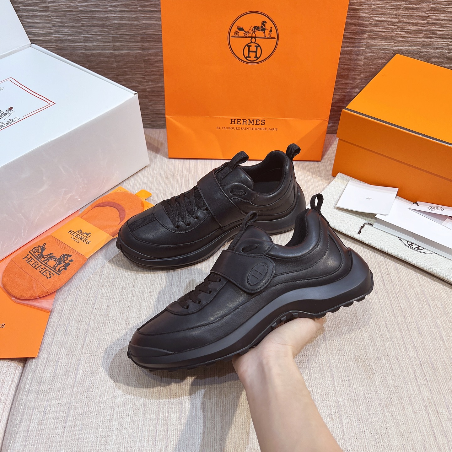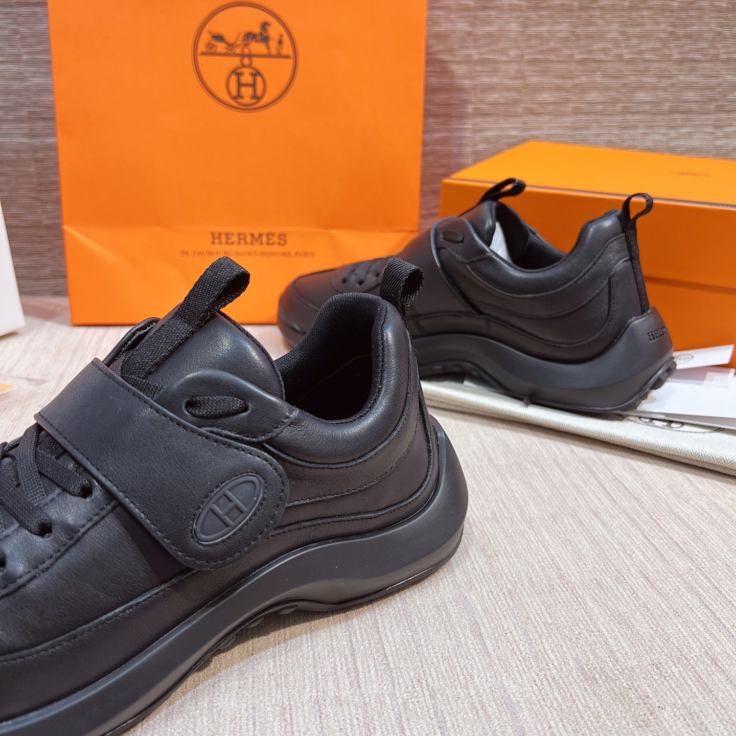 這款鞋子是AAAAA 1:1 質量(非常棒). 使用了和原版一模一樣的材料. 商標部分也保持了和愛馬仕/Hermes一樣. 圖片拍攝是實物鞋子拍攝, 您所收到的實物保證和我們圖片一模一樣.