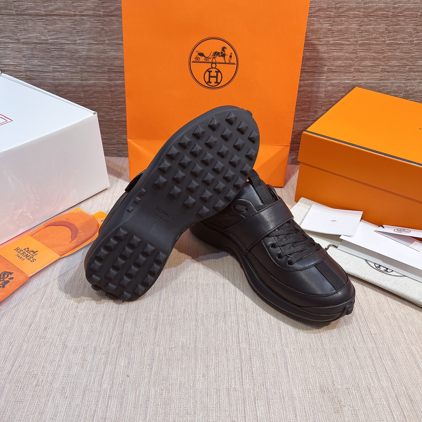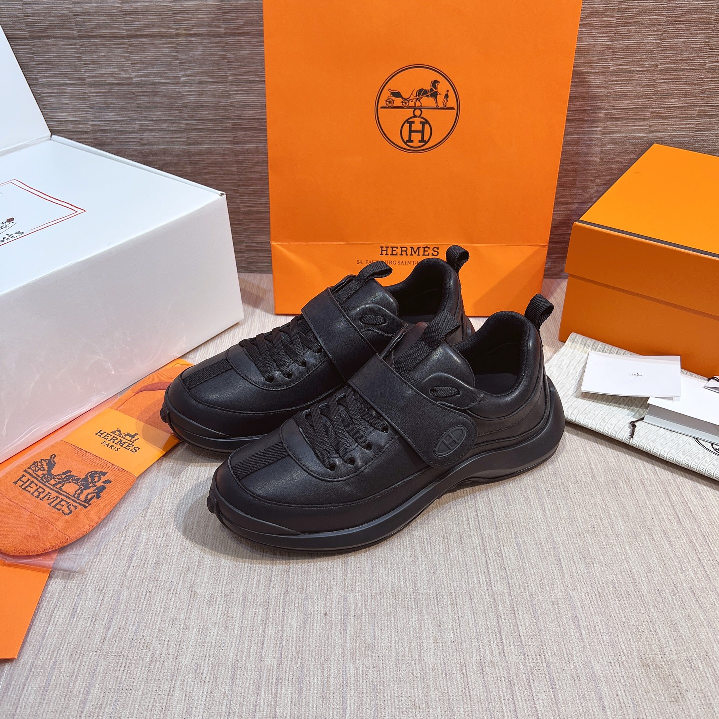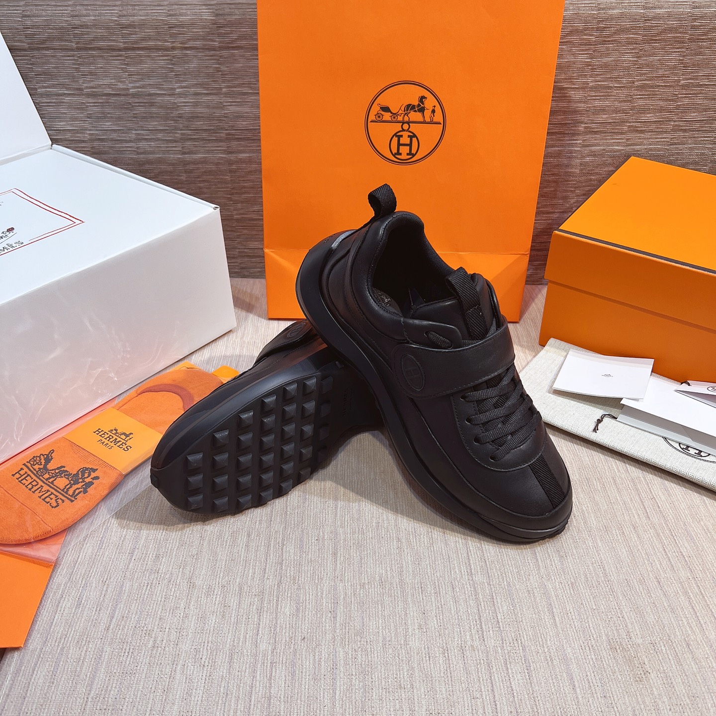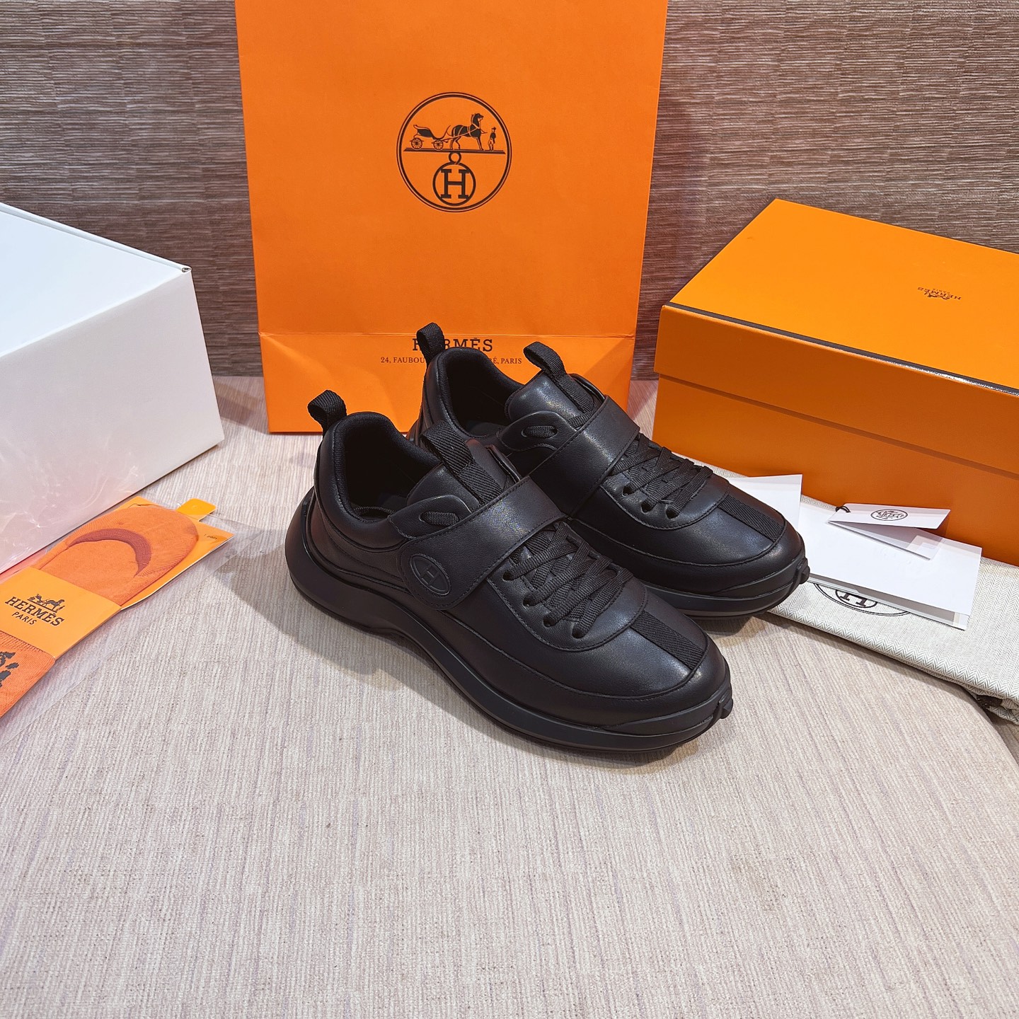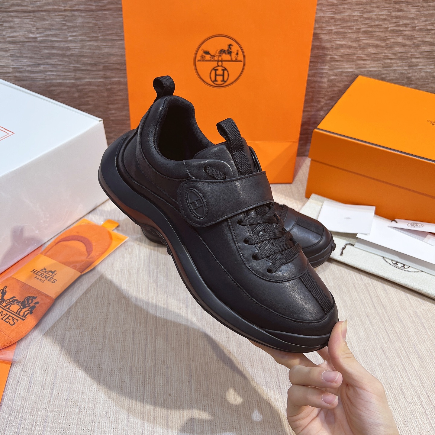 這款鞋子是AAAAA 1:1 質量(非常棒). 使用了和原版一模一樣的材料. 商標部分也保持了和愛馬仕/Hermes一樣. 圖片拍攝是實物鞋子拍攝, 您所收到的實物保證和我們圖片一模一樣.