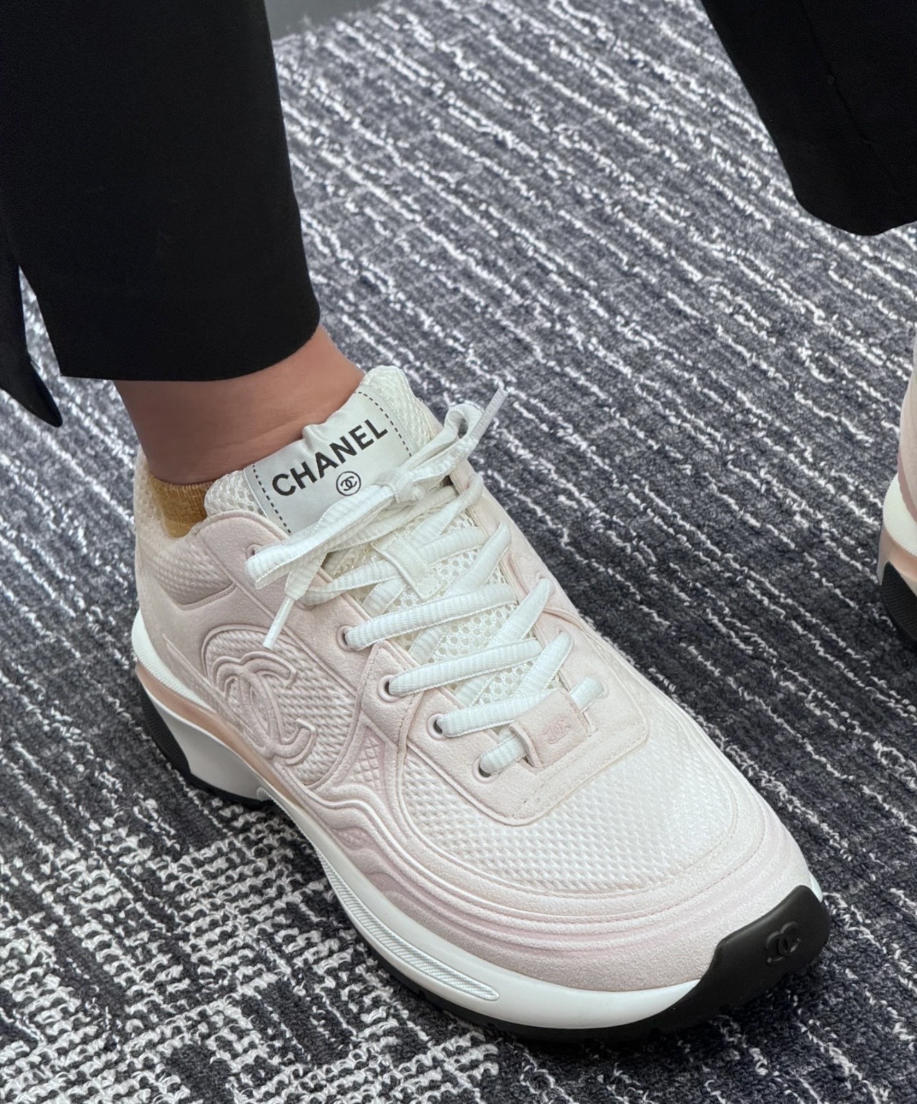這款鞋子是AAAAA 1:1 質量(非常棒). 使用了和原版一模一樣的材料. 商標部分也保持了和香奈兒/Chanel一樣. 圖片拍攝是實物鞋子拍攝, 您所收到的實物保證和我們圖片一模一樣.