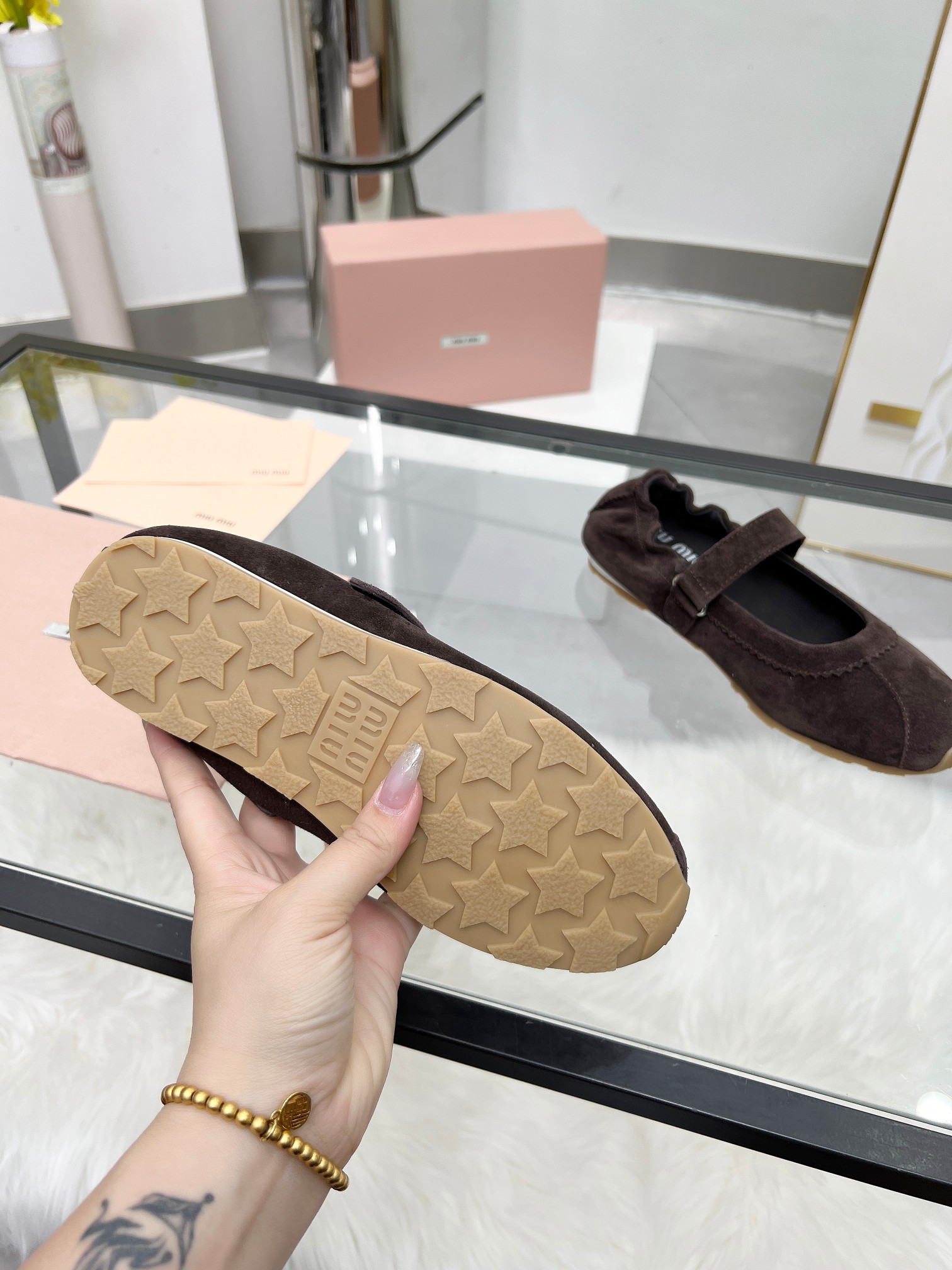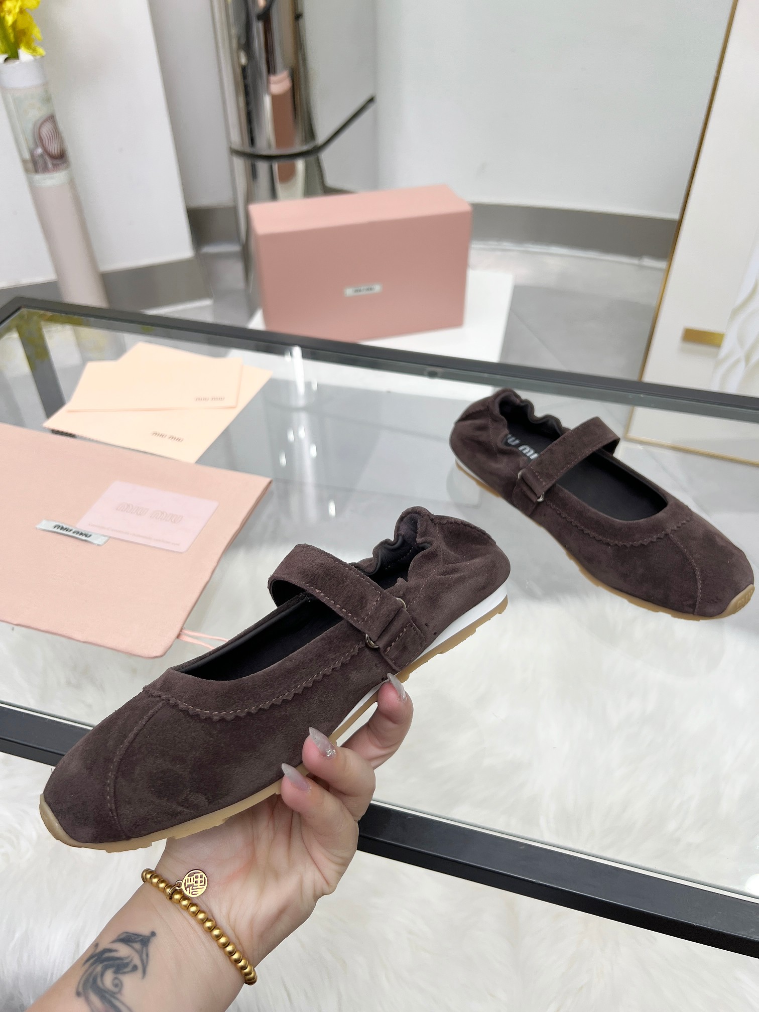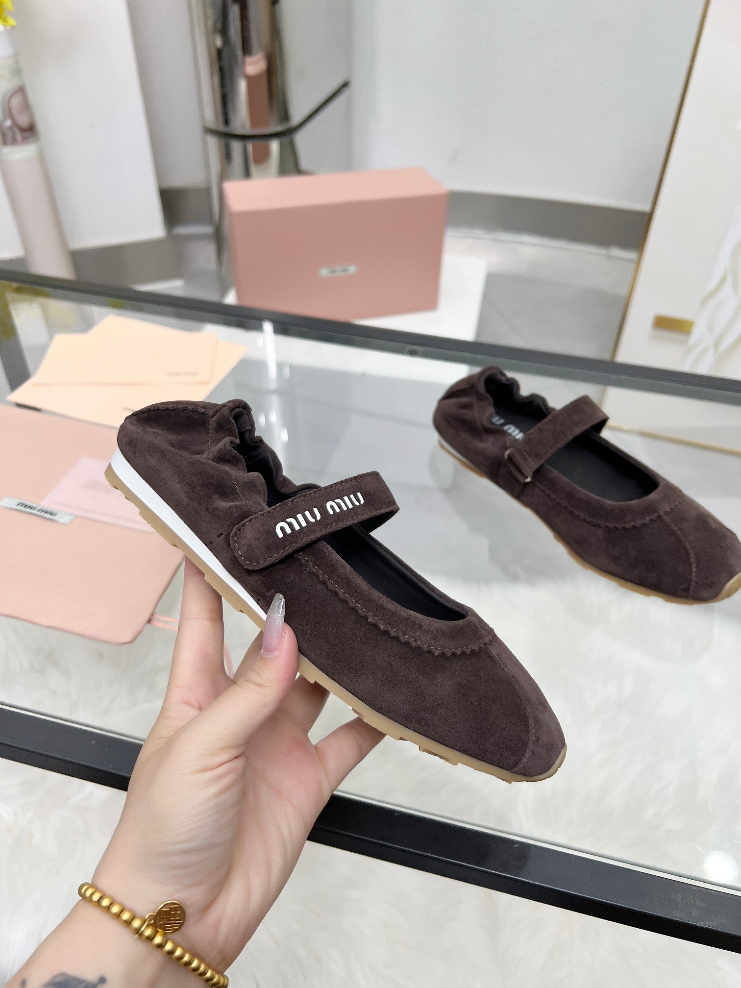 這款鞋子是AAAAA 1:1 質量(非常棒). 使用了和原版一模一樣的材料. 商標部分也保持了和繆繆/Miu Miu一樣. 圖片拍攝是實物鞋子拍攝, 您所收到的實物保證和我們圖片一模一樣.