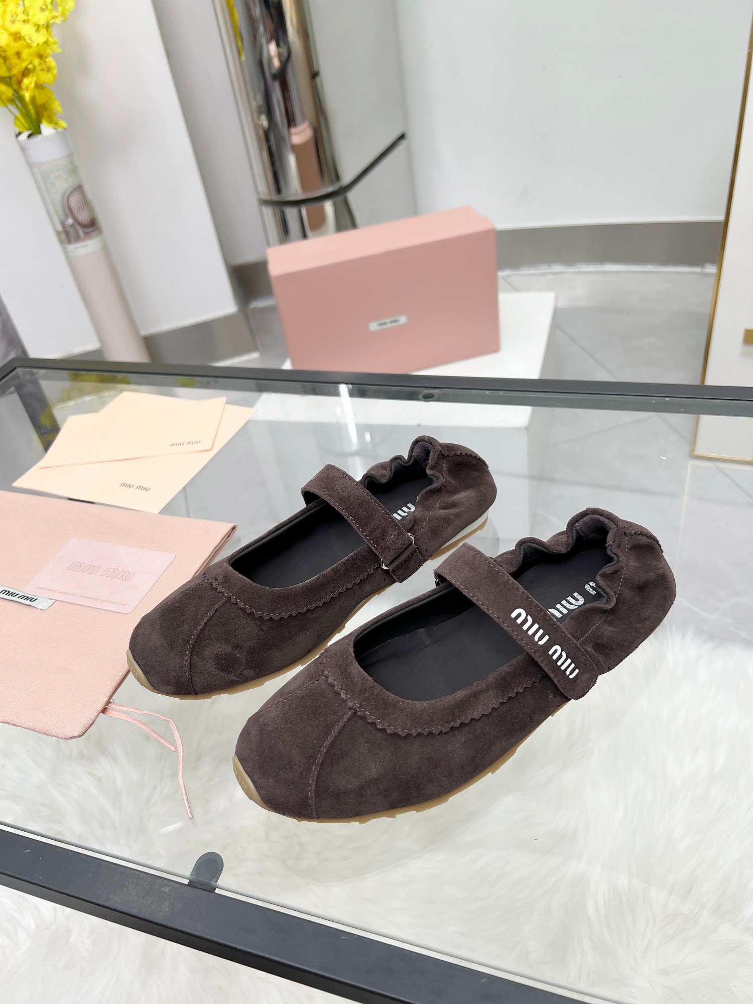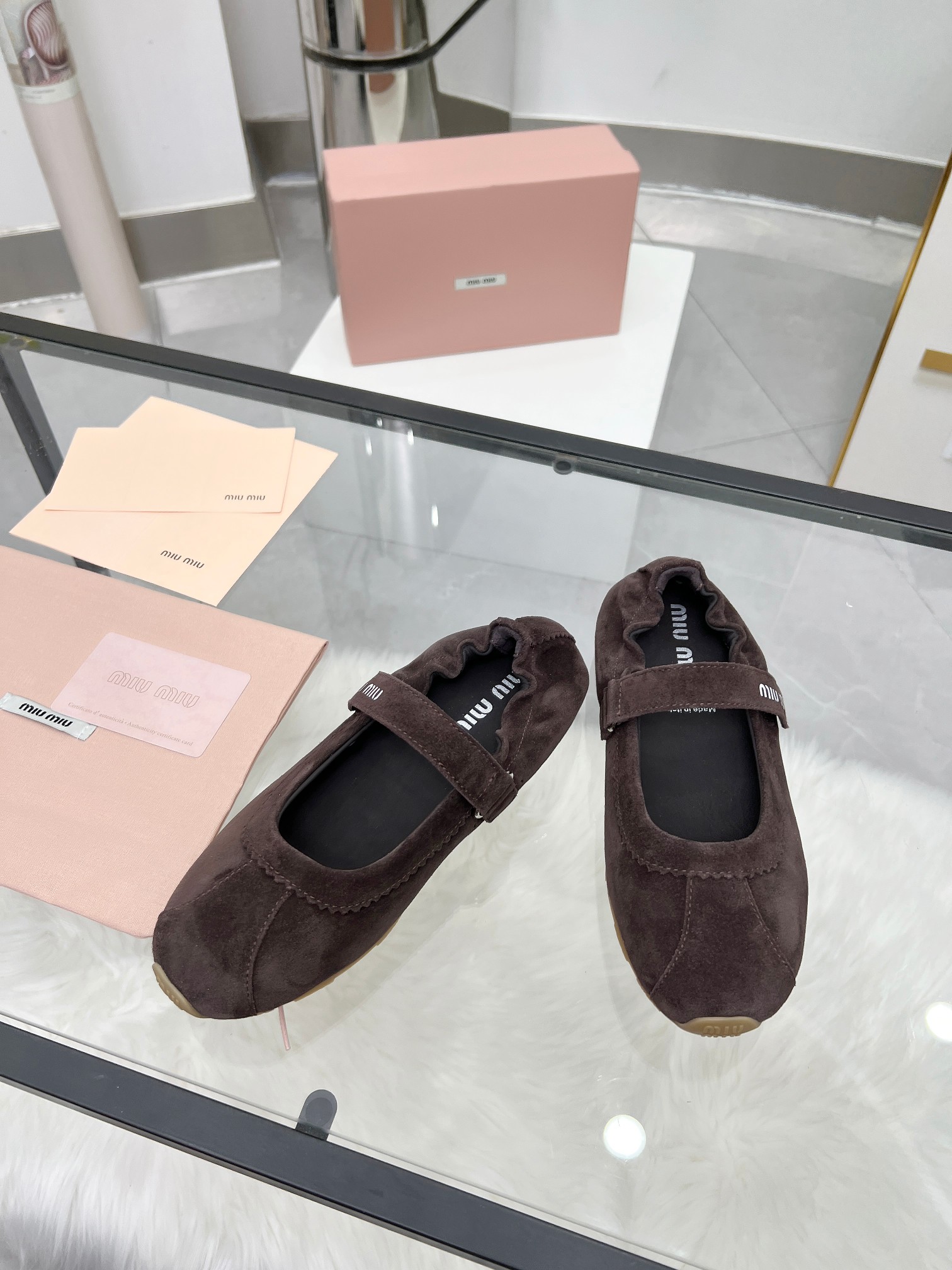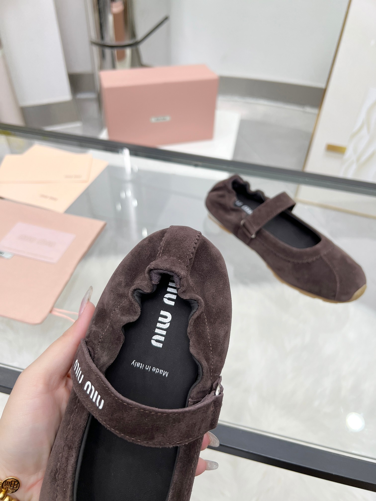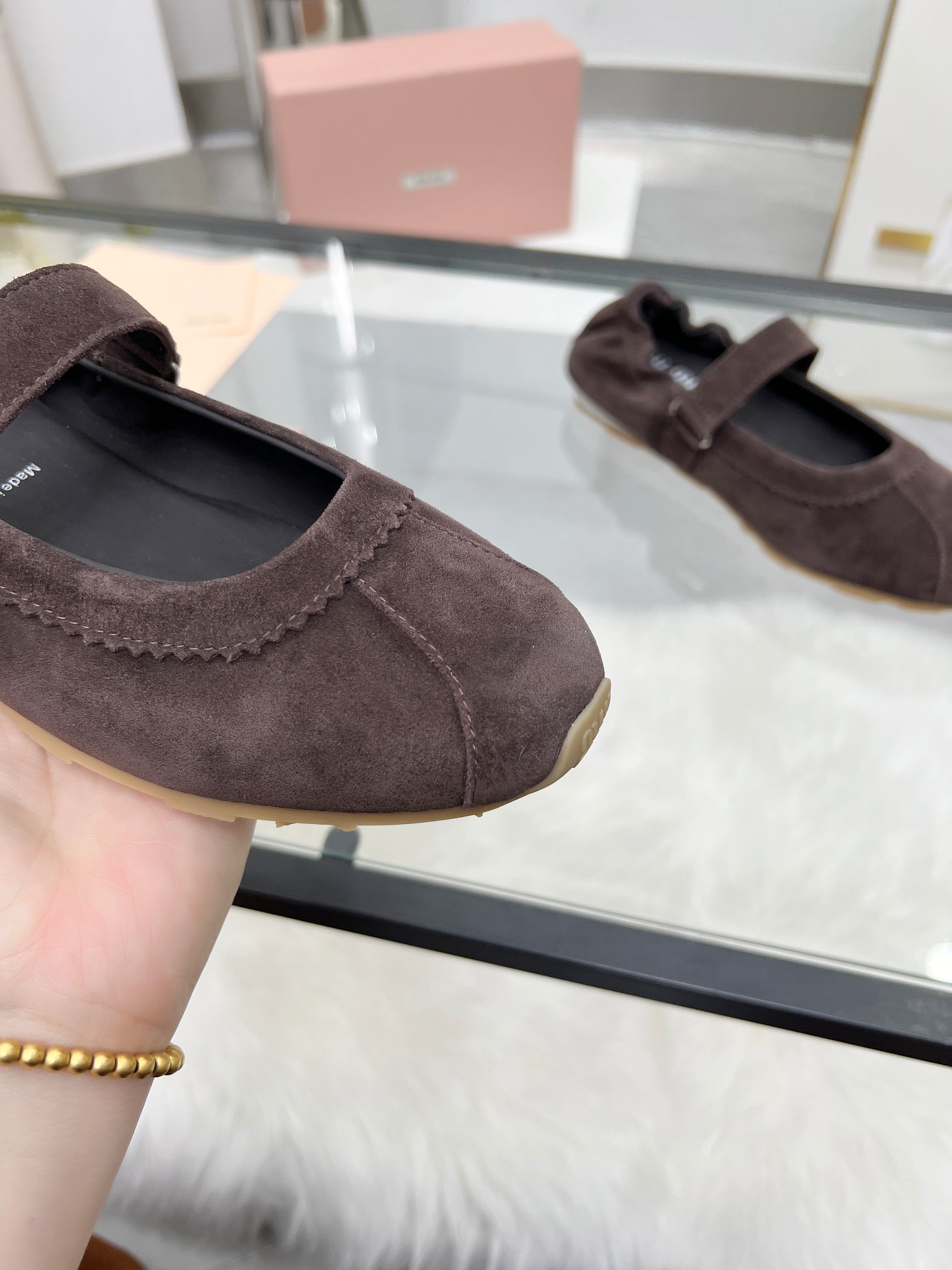 這款鞋子是AAAAA 1:1 質量(非常棒). 使用了和原版一模一樣的材料. 商標部分也保持了和繆繆/Miu Miu一樣. 圖片拍攝是實物鞋子拍攝, 您所收到的實物保證和我們圖片一模一樣.