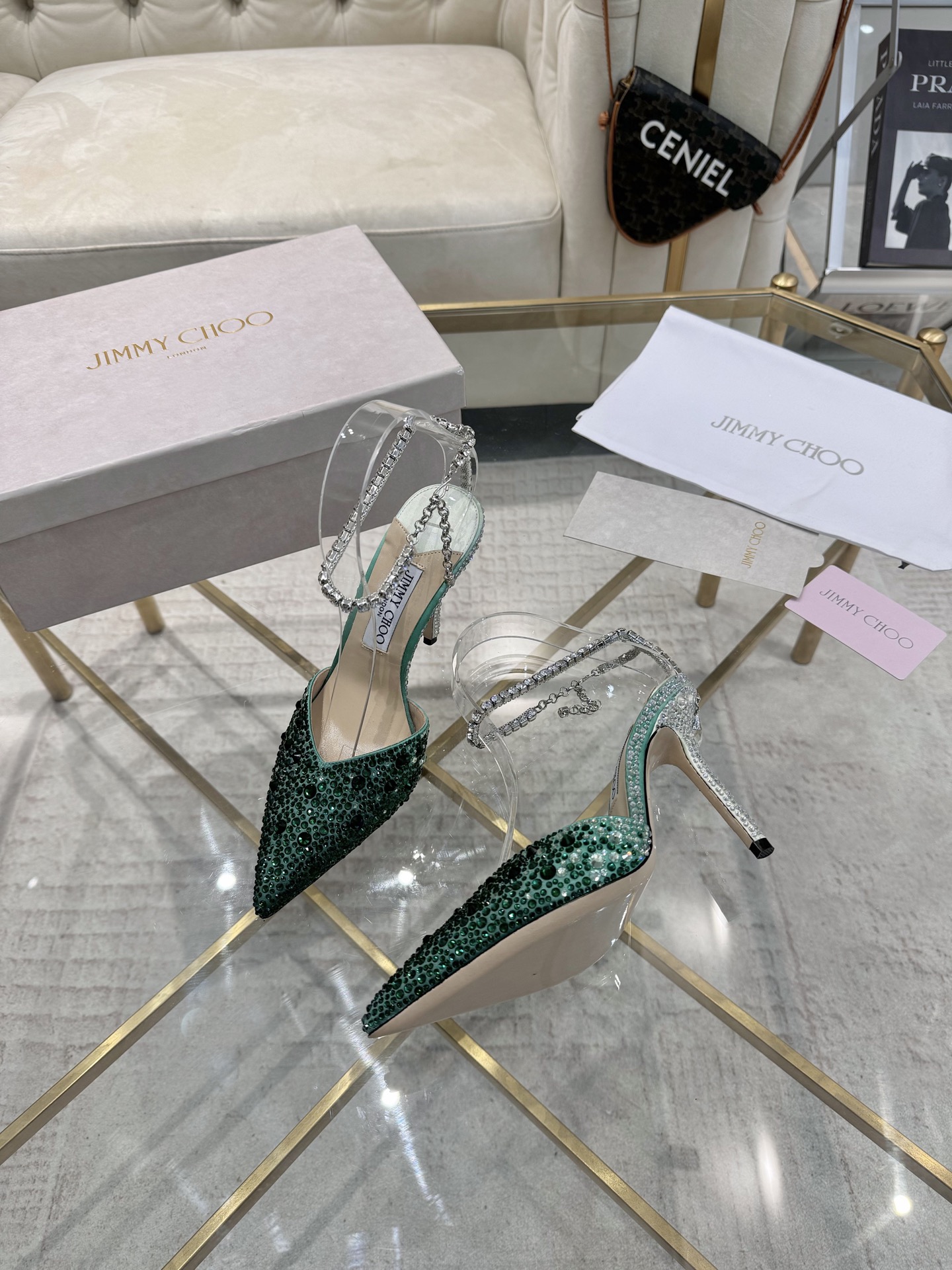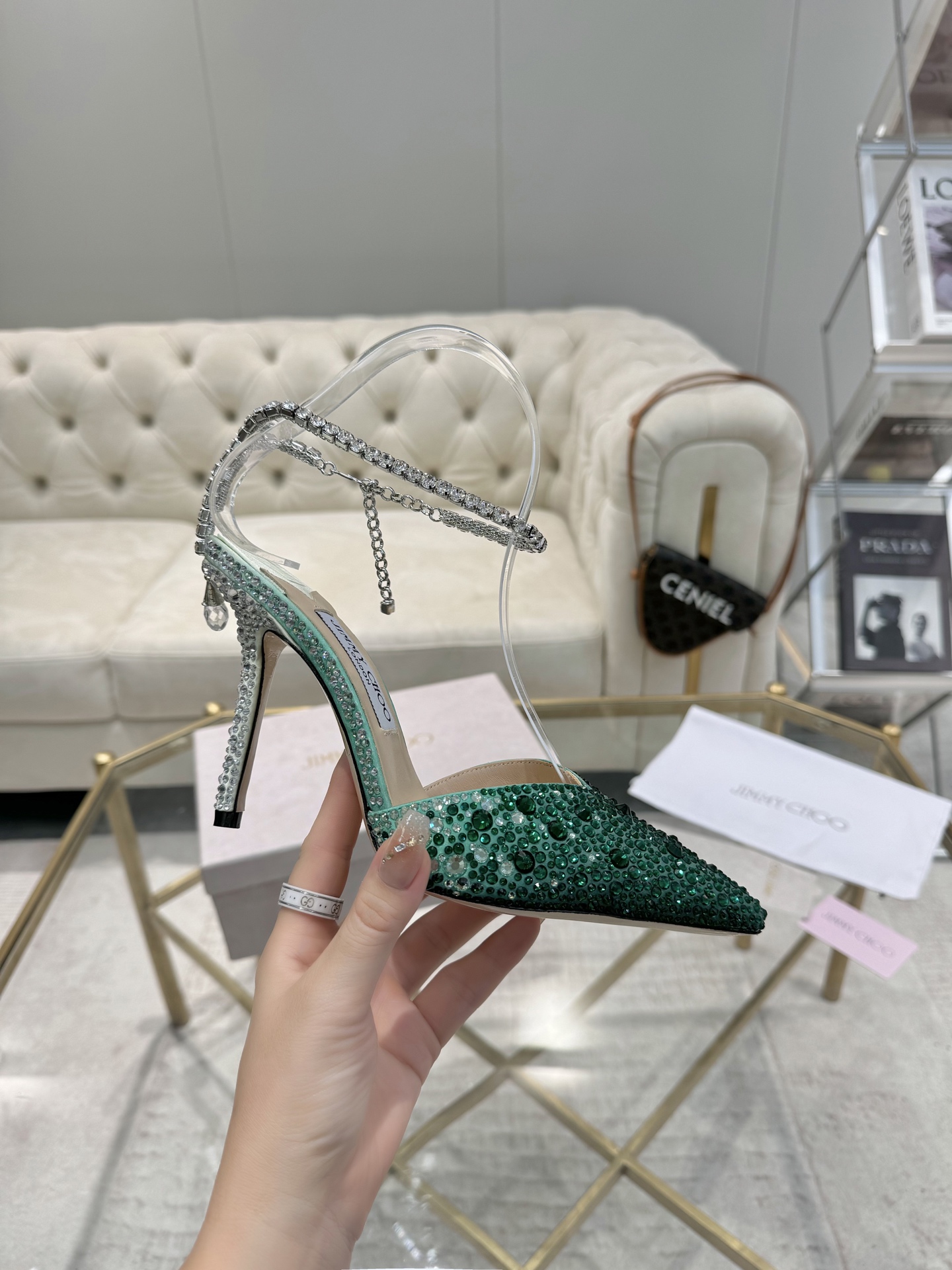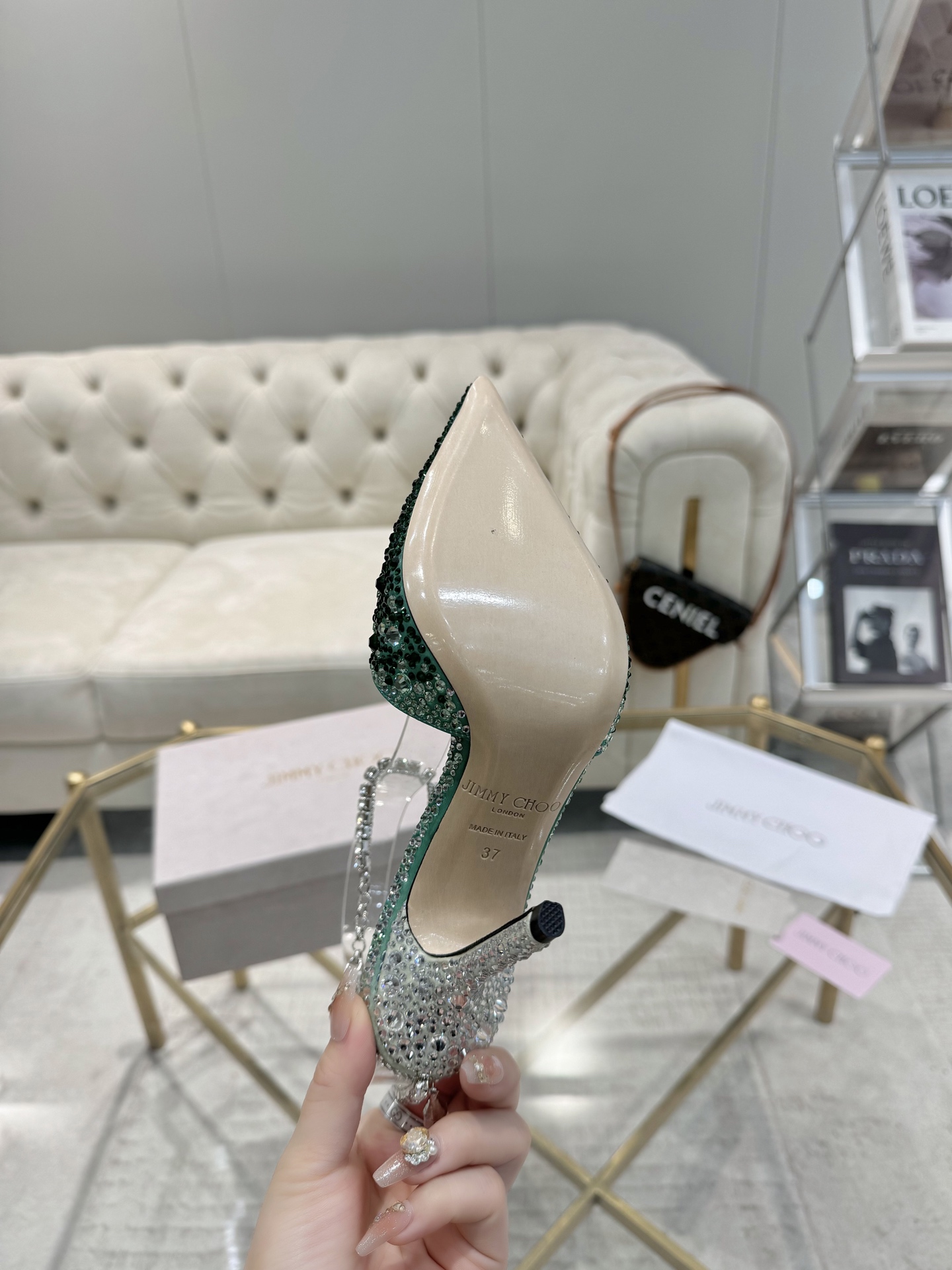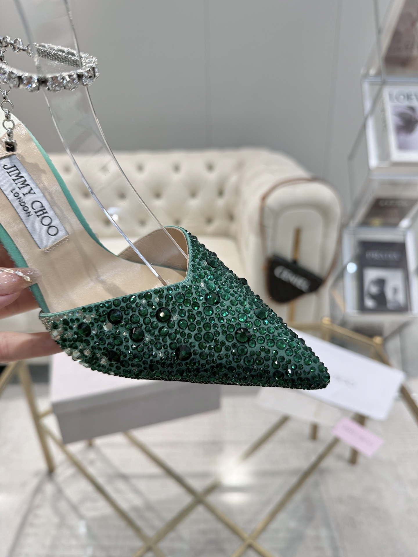 這款鞋子是AAAAA 1:1 質量(非常棒). 使用了和原版一模一樣的材料. 商標部分也保持了和吉米喬/JIMMY CHOO一樣. 圖片拍攝是實物鞋子拍攝, 您所收到的實物保證和我們圖片一模一樣.