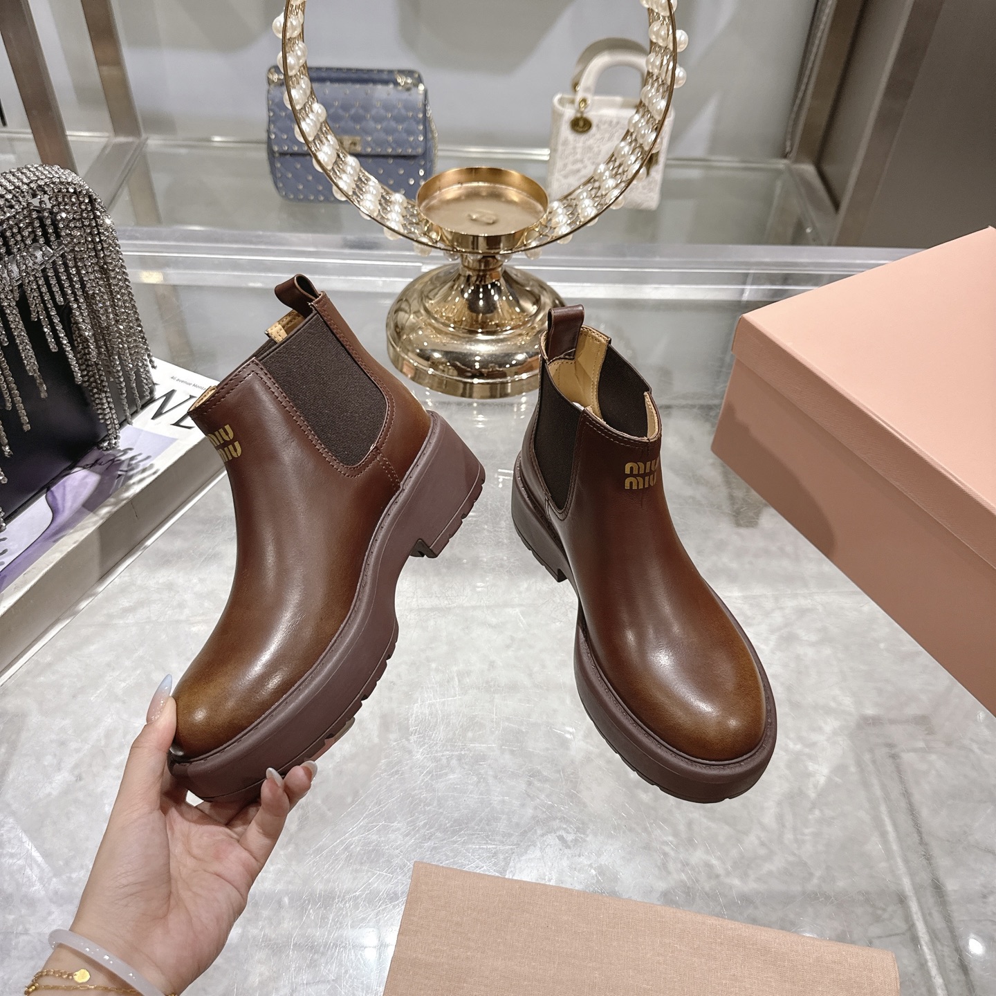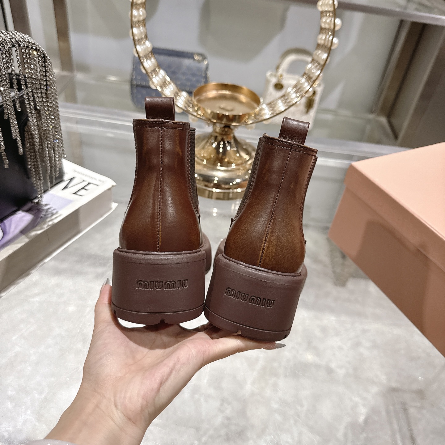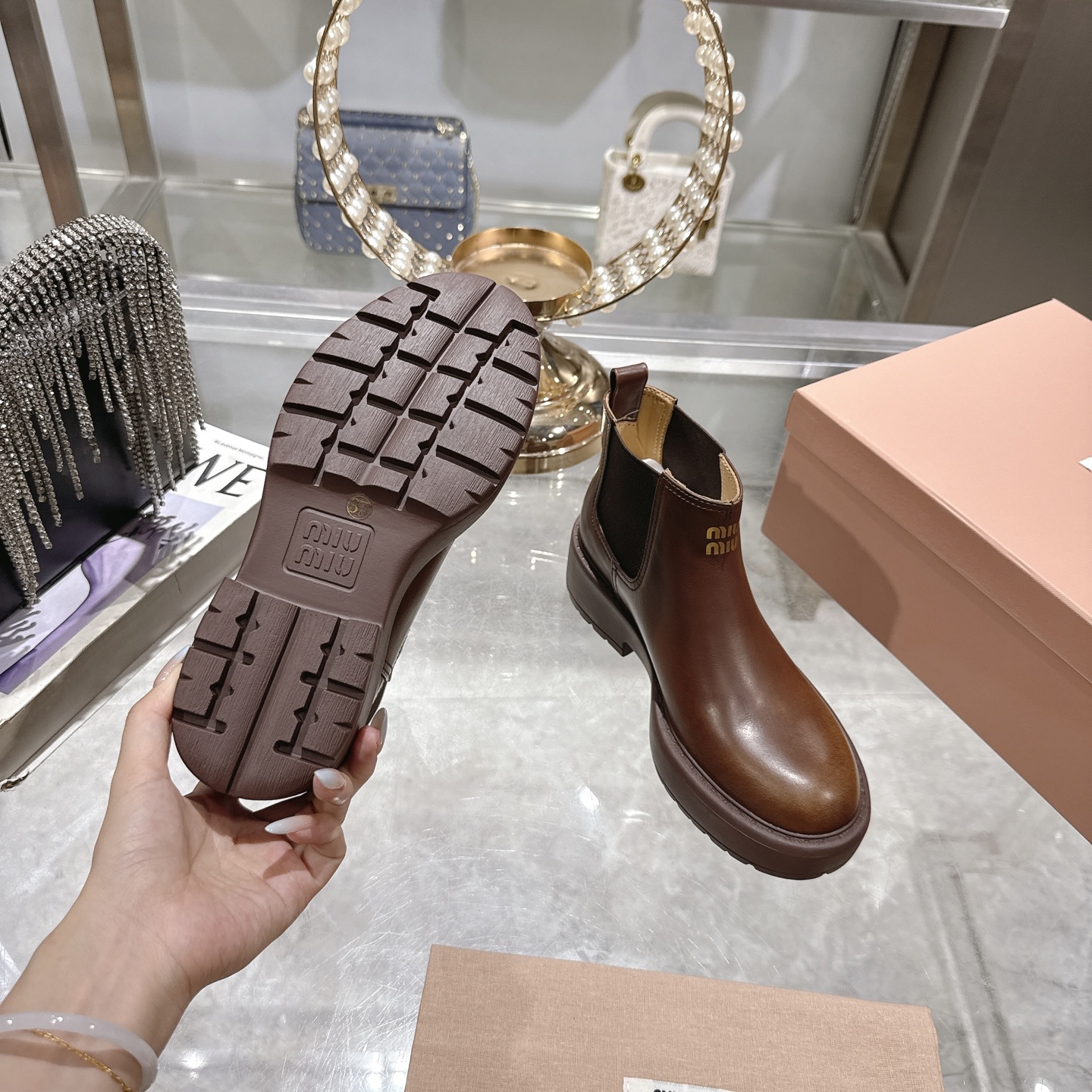 這款鞋子是AAAAA 1:1 質量(非常棒). 使用了和原版一模一樣的材料. 商標部分也保持了和繆繆/Miu Miu一樣. 圖片拍攝是實物鞋子拍攝, 您所收到的實物保證和我們圖片一模一樣.