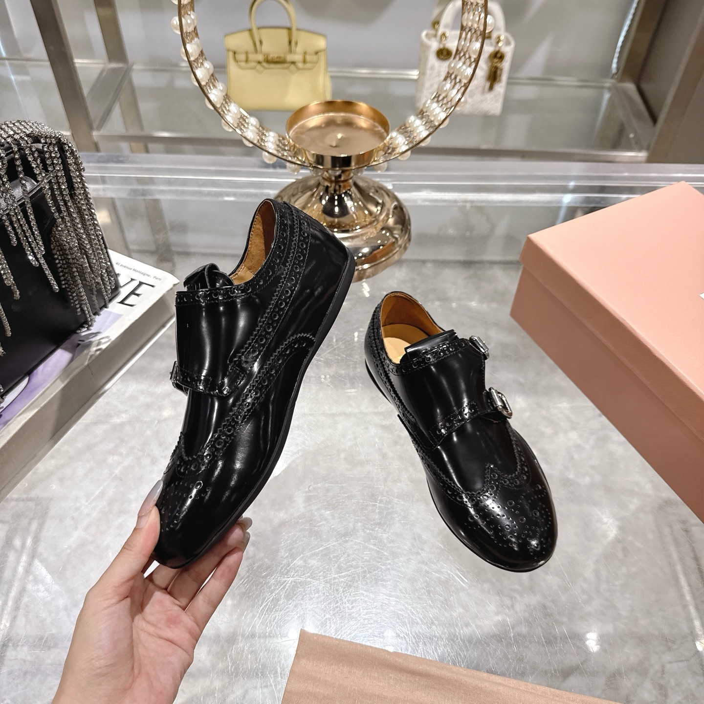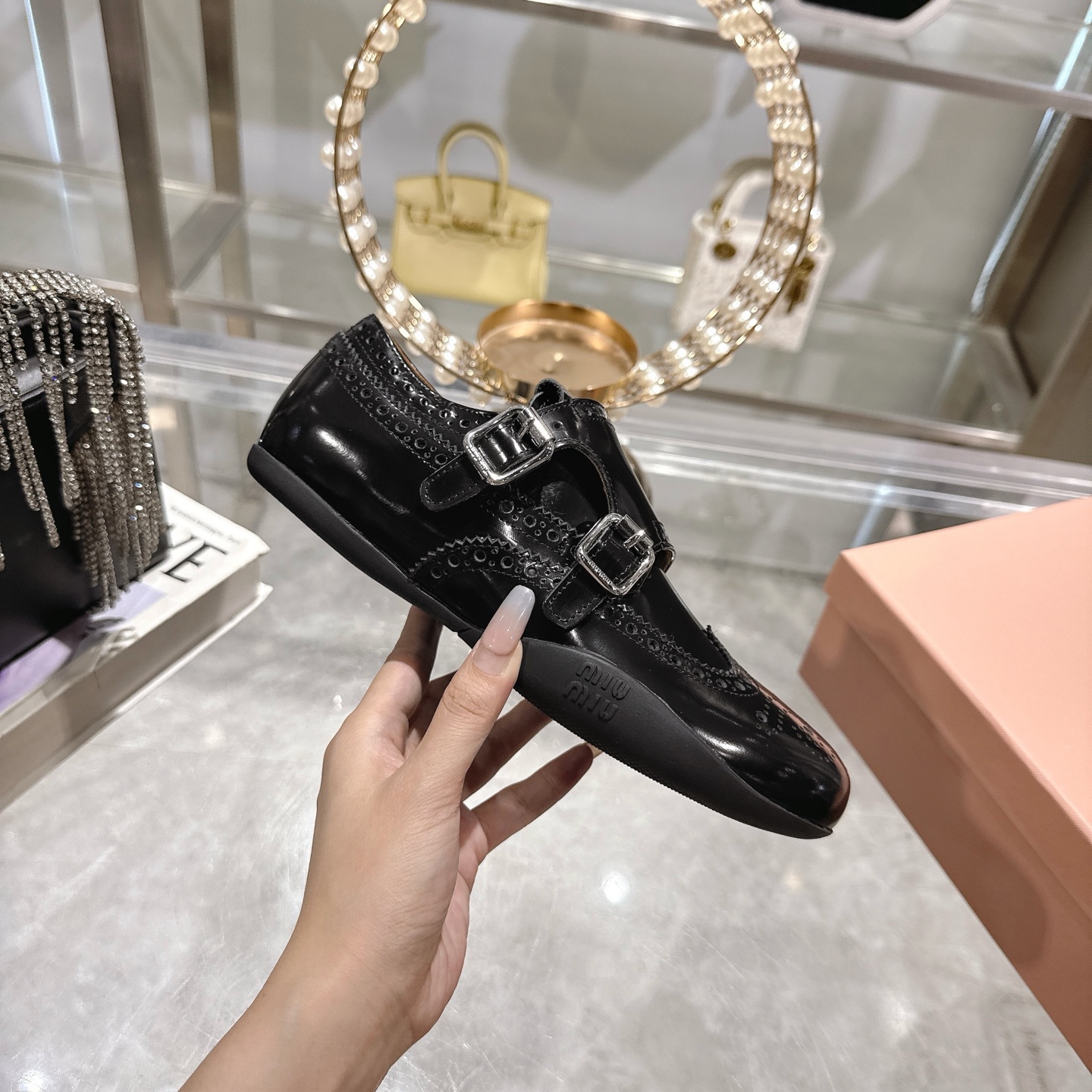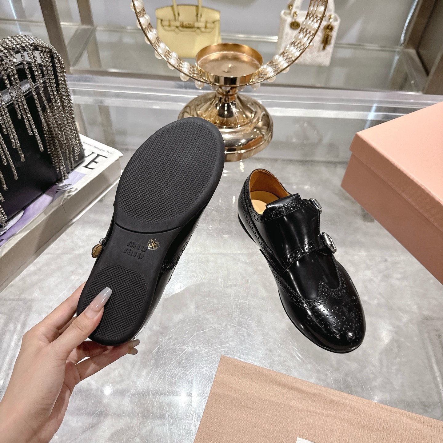 這款鞋子是AAAAA 1:1 質量(非常棒). 使用了和原版一模一樣的材料. 商標部分也保持了和繆繆/Miu Miu一樣. 圖片拍攝是實物鞋子拍攝, 您所收到的實物保證和我們圖片一模一樣.