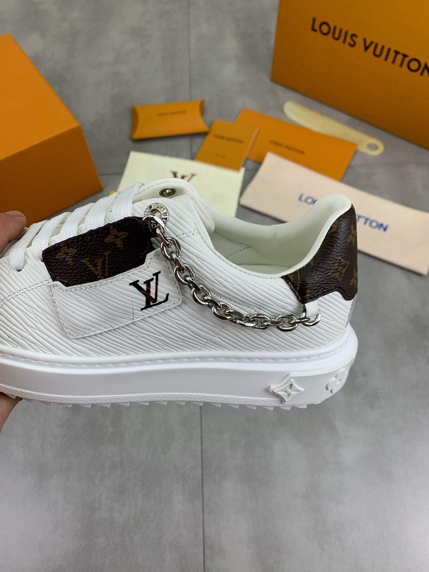 這款鞋子是AAAAA 1:1 質量(非常棒). 使用了和原版一模一樣的材料. 商標部分也保持了和一樣. 圖片拍攝是實物鞋子拍攝, 您所收到的實物保證和我們圖片一模一樣.