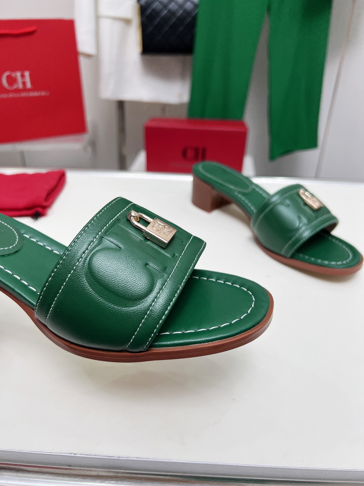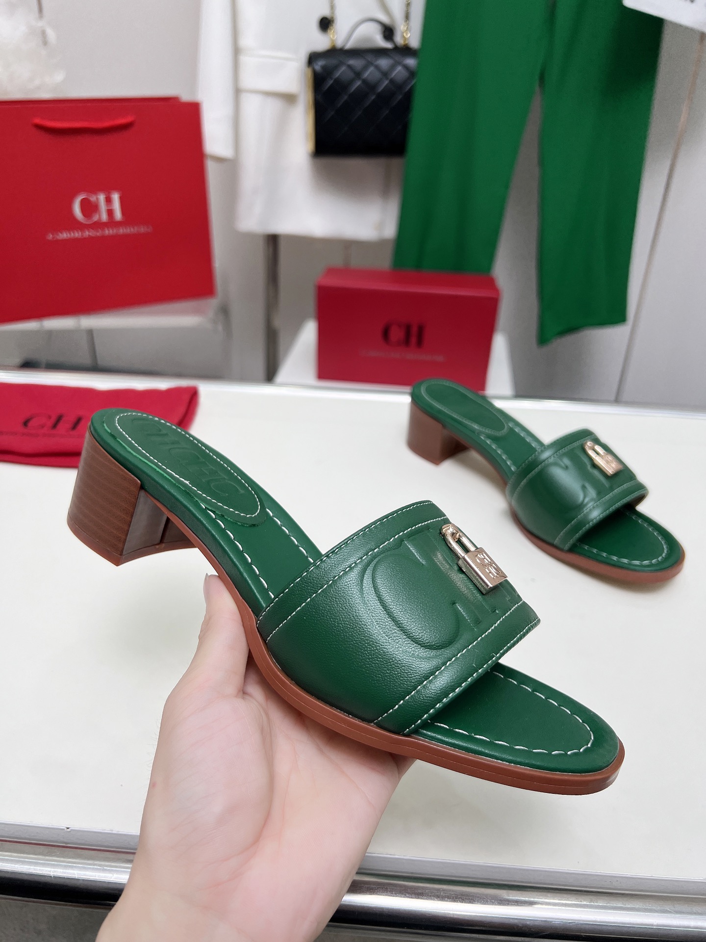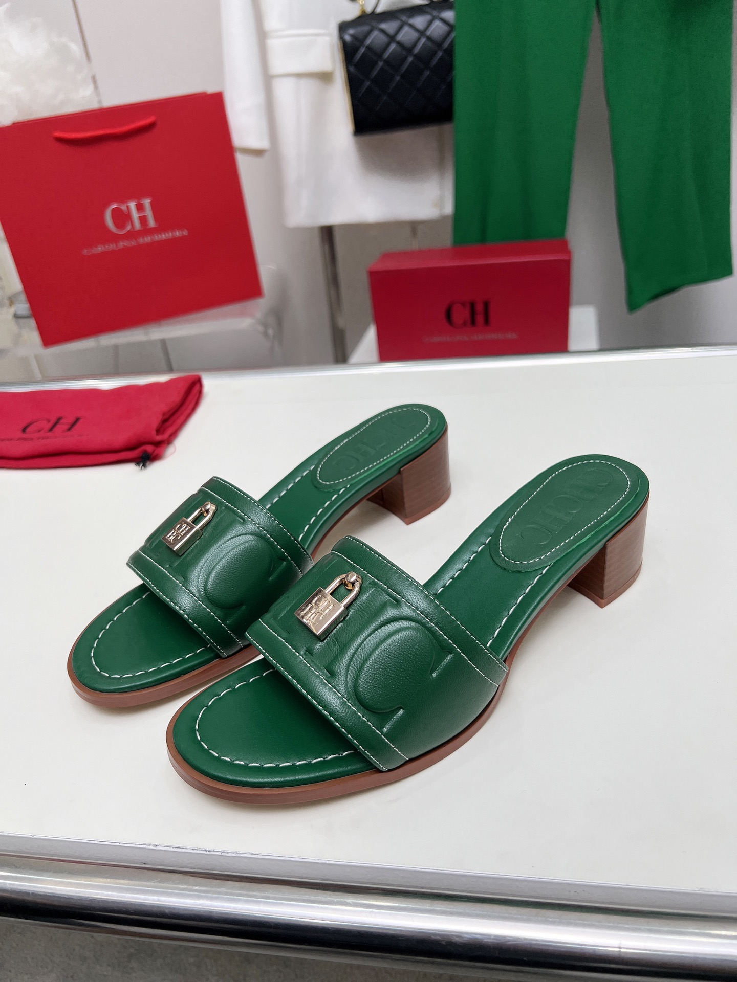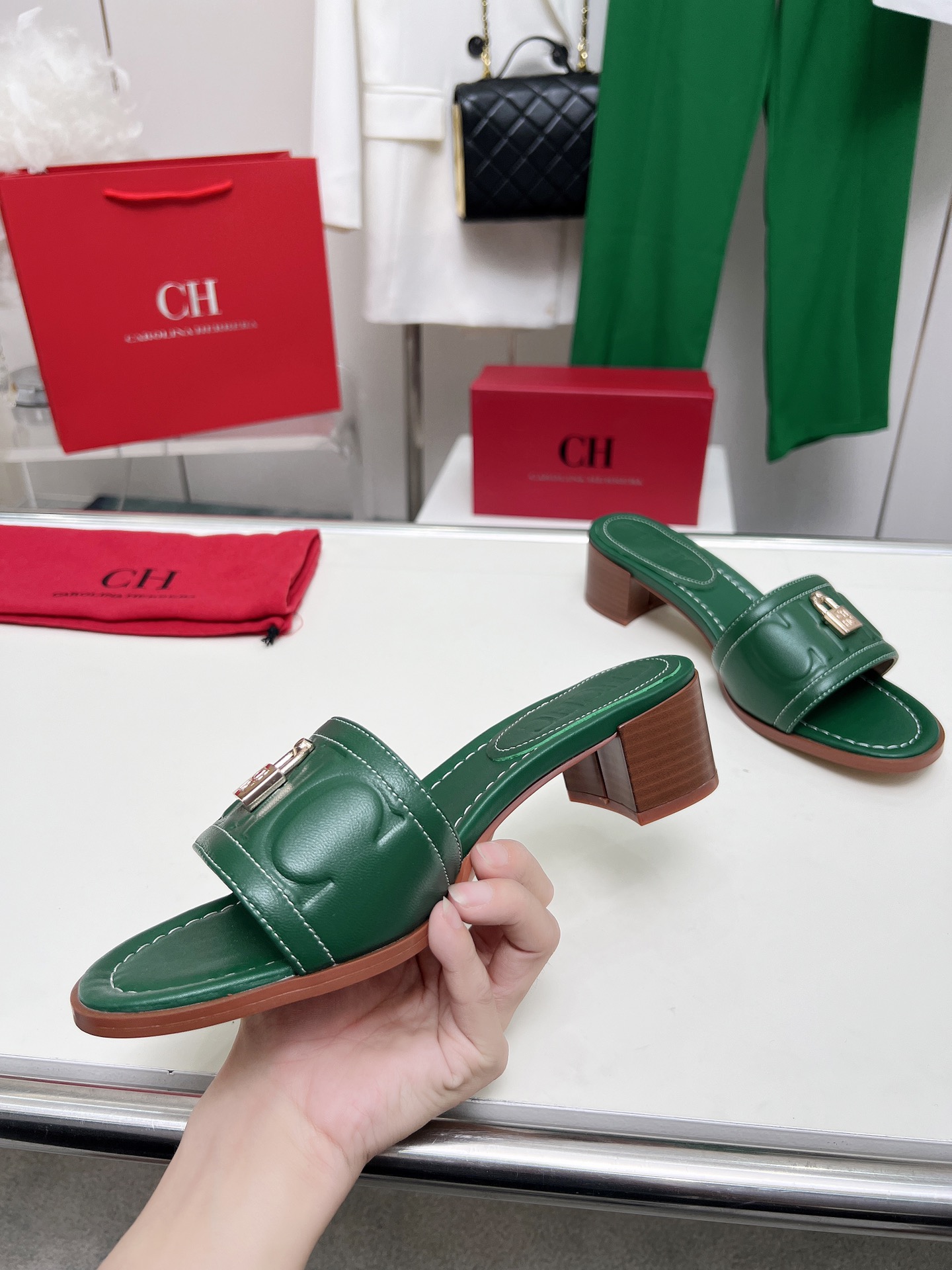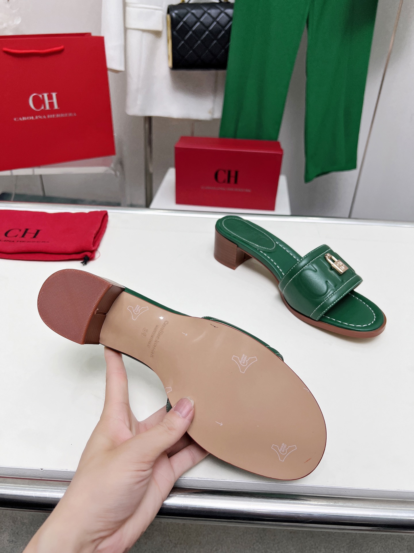 這款鞋子是AAAAA 1:1 質量(非常棒). 使用了和原版一模一樣的材料. 商標部分也保持了和Carolina Herrera一樣. 圖片拍攝是實物鞋子拍攝, 您所收到的實物保證和我們圖片一模一樣.