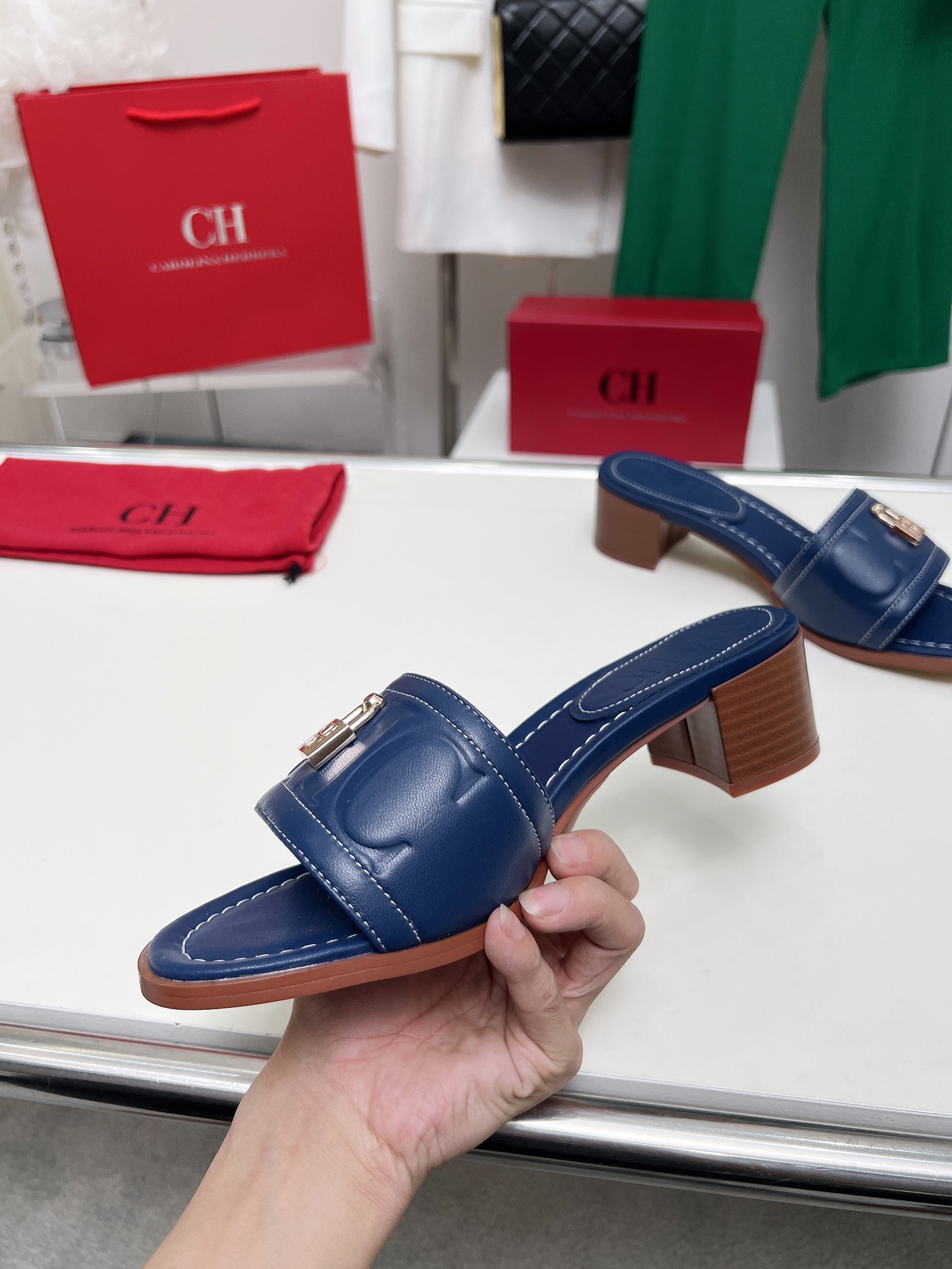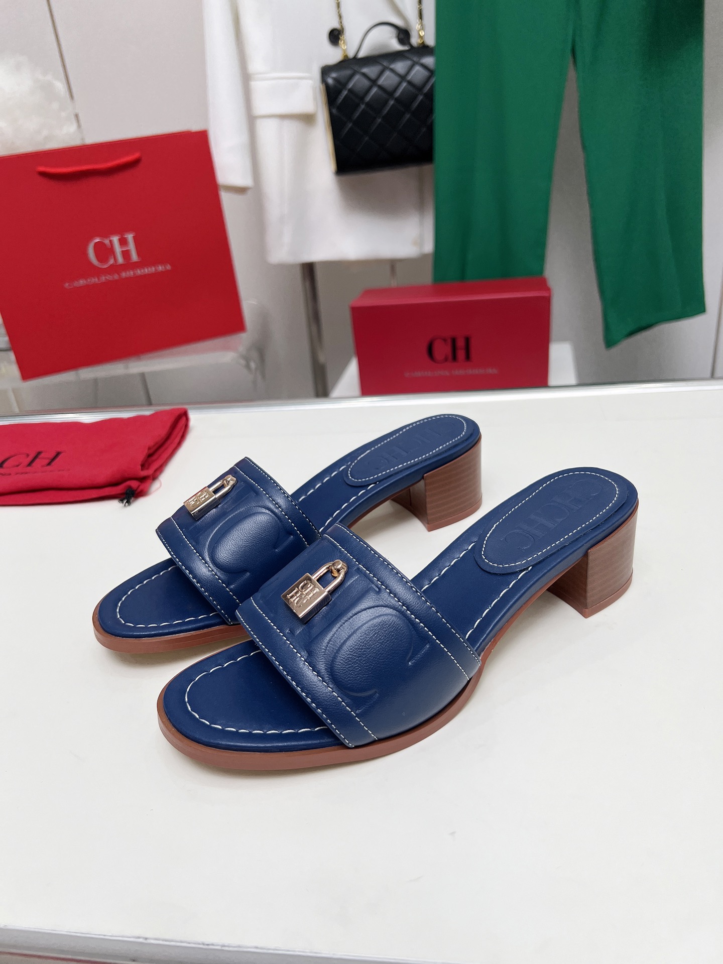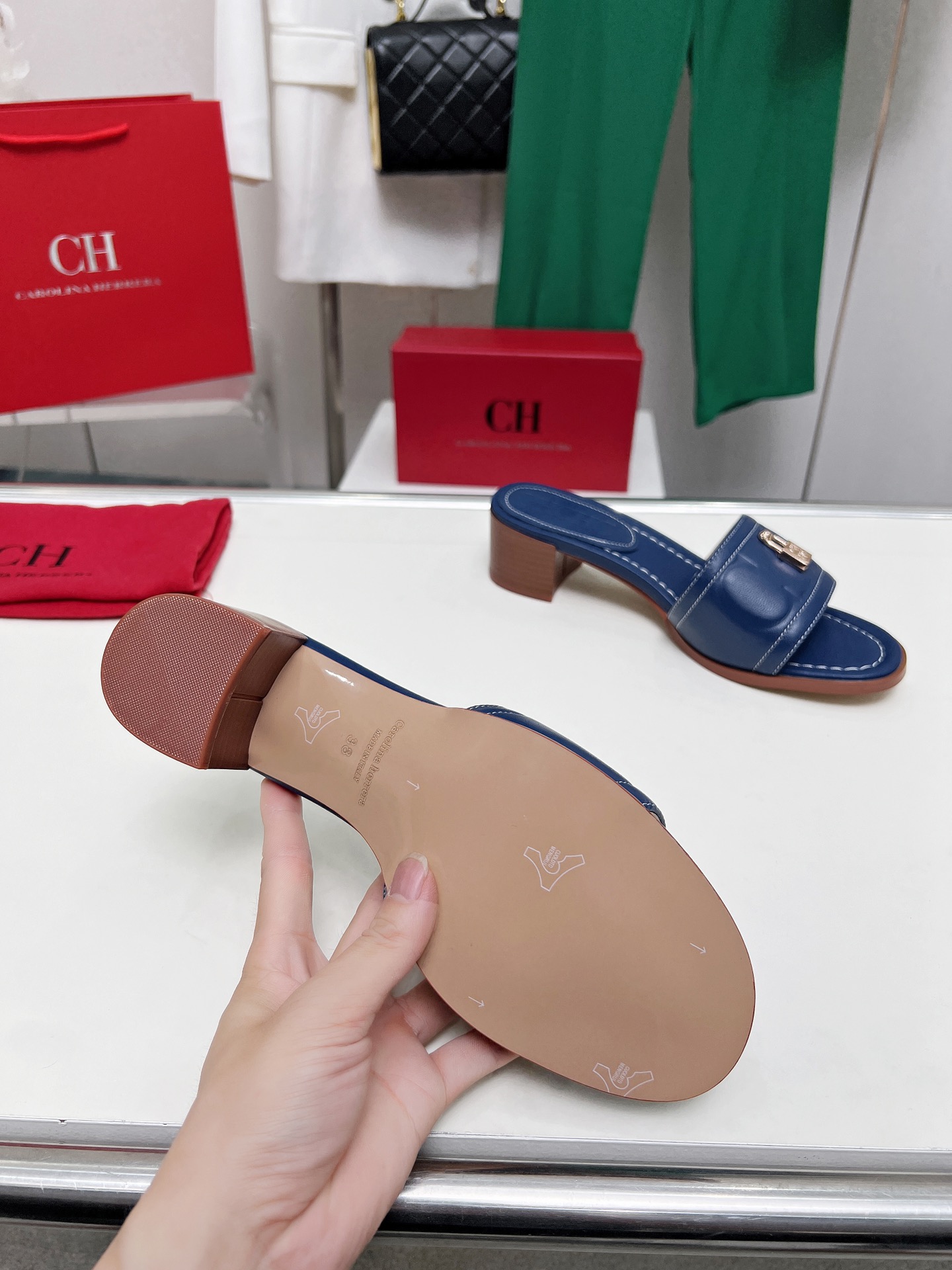 這款鞋子是AAAAA 1:1 質量(非常棒). 使用了和原版一模一樣的材料. 商標部分也保持了和Carolina Herrera一樣. 圖片拍攝是實物鞋子拍攝, 您所收到的實物保證和我們圖片一模一樣.