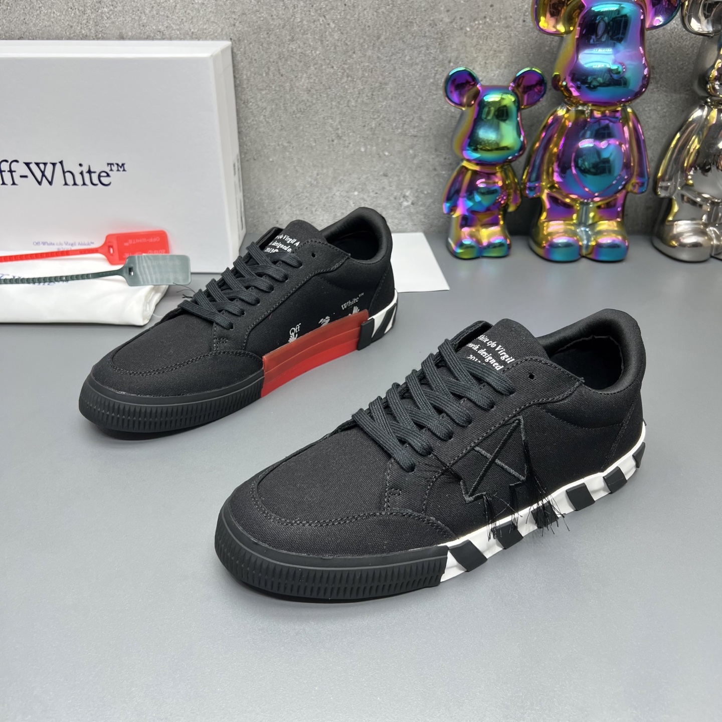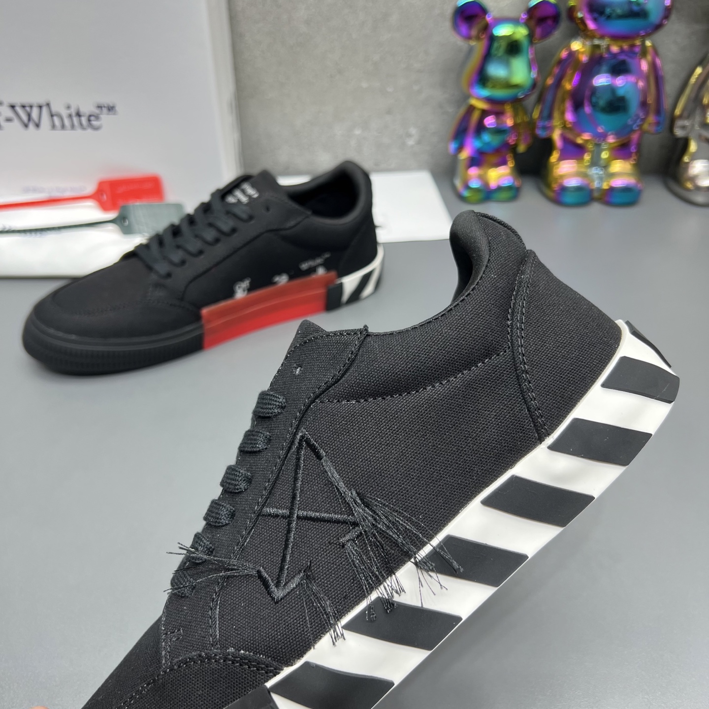 這款鞋子是AAAAA 1:1 質量(非常棒). 使用了和原版一模一樣的材料. 商標部分也保持了和OFF WHITE一樣. 圖片拍攝是實物鞋子拍攝, 您所收到的實物保證和我們圖片一模一樣.