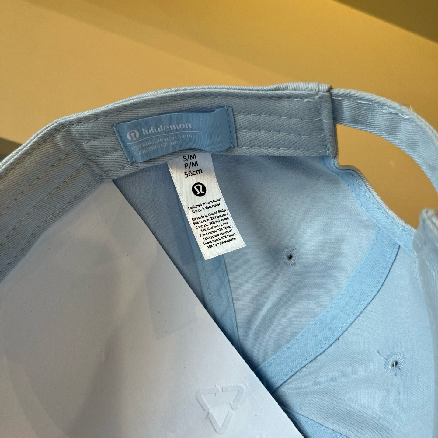 這款帽子是AAAAA 1:1 質量(非常棒). 使用了和原版一模一樣的材料. 商標部分也保持了和Lululemon一樣. 圖片拍攝是實物帽子拍攝, 您所收到的實物保證和我們圖片一模一樣.