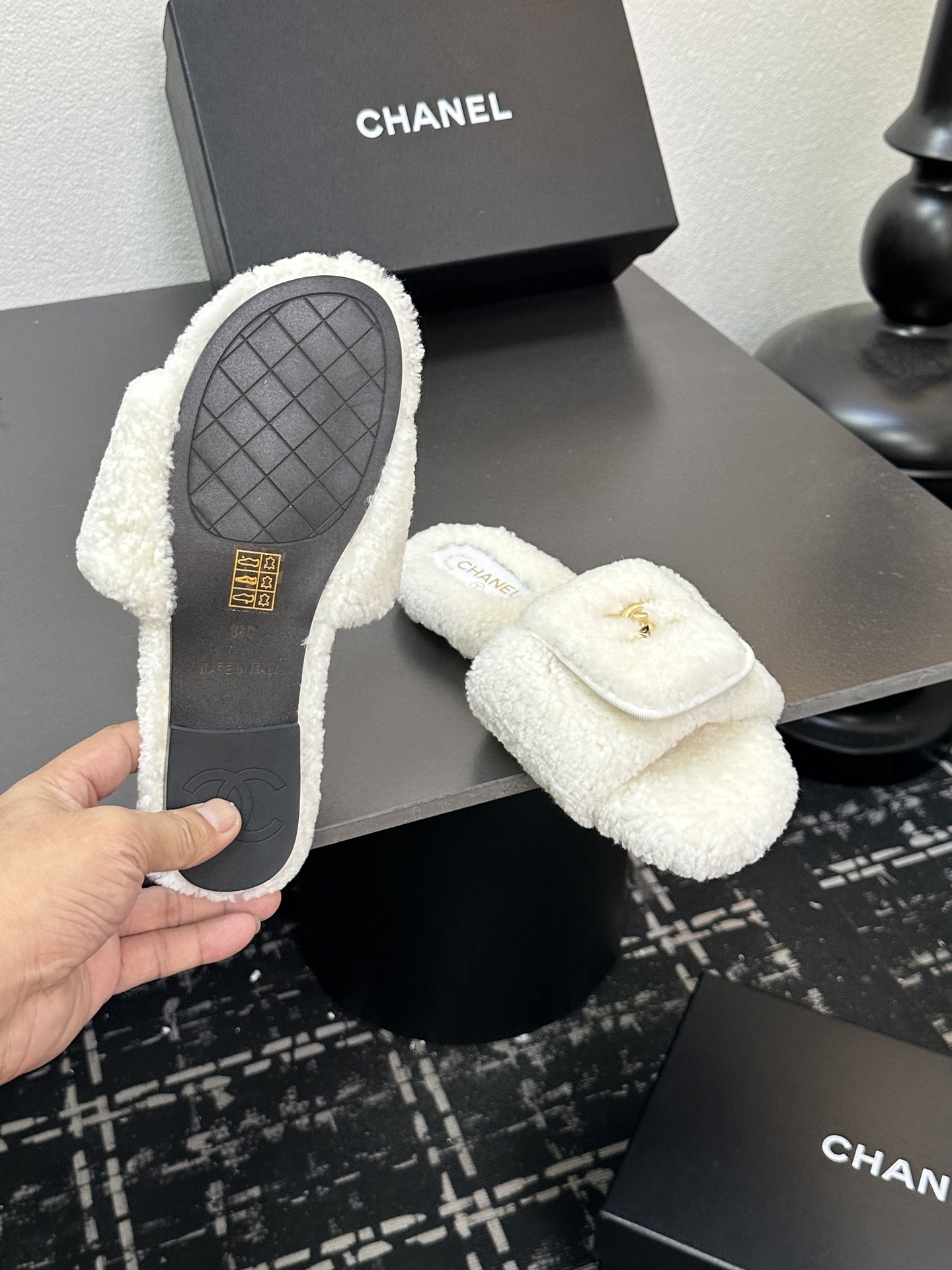 這款鞋子是AAAAA 1:1 質量(非常棒). 使用了和原版一模一樣的材料. 商標部分也保持了和香奈兒/Chanel一樣. 圖片拍攝是實物鞋子拍攝, 您所收到的實物保證和我們圖片一模一樣.