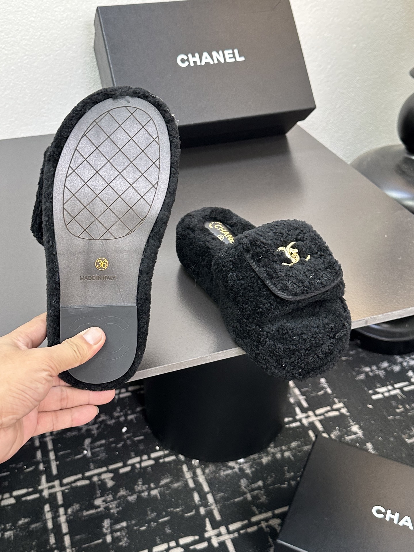 這款鞋子是AAAAA 1:1 質量(非常棒). 使用了和原版一模一樣的材料. 商標部分也保持了和香奈兒/Chanel一樣. 圖片拍攝是實物鞋子拍攝, 您所收到的實物保證和我們圖片一模一樣.