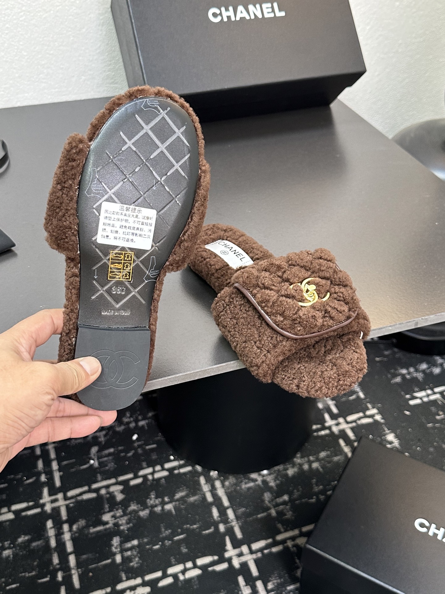 這款鞋子是AAAAA 1:1 質量(非常棒). 使用了和原版一模一樣的材料. 商標部分也保持了和香奈兒/Chanel一樣. 圖片拍攝是實物鞋子拍攝, 您所收到的實物保證和我們圖片一模一樣.