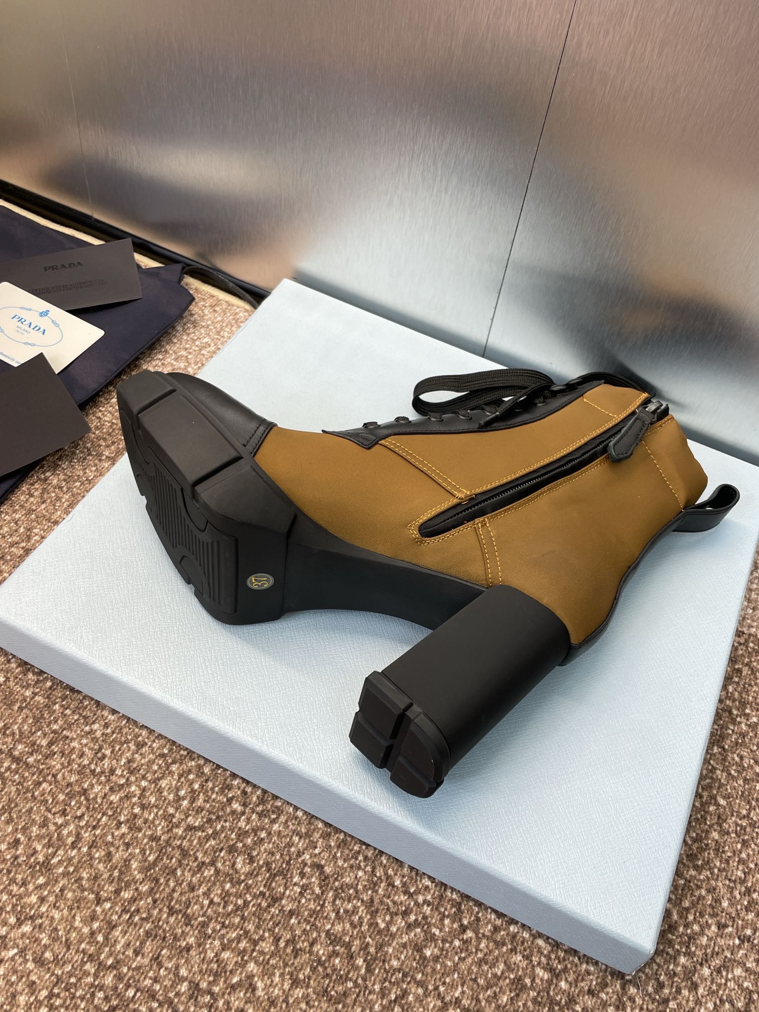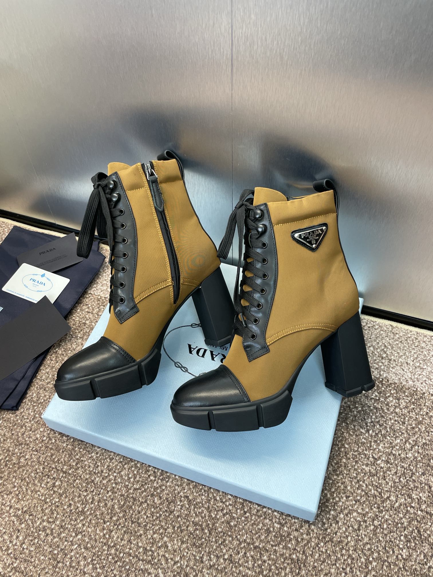 這款鞋子是AAAAA 1:1 質量(非常棒). 使用了和原版一模一樣的材料. 商標部分也保持了和普拉達/Prada一樣. 圖片拍攝是實物鞋子拍攝, 您所收到的實物保證和我們圖片一模一樣.