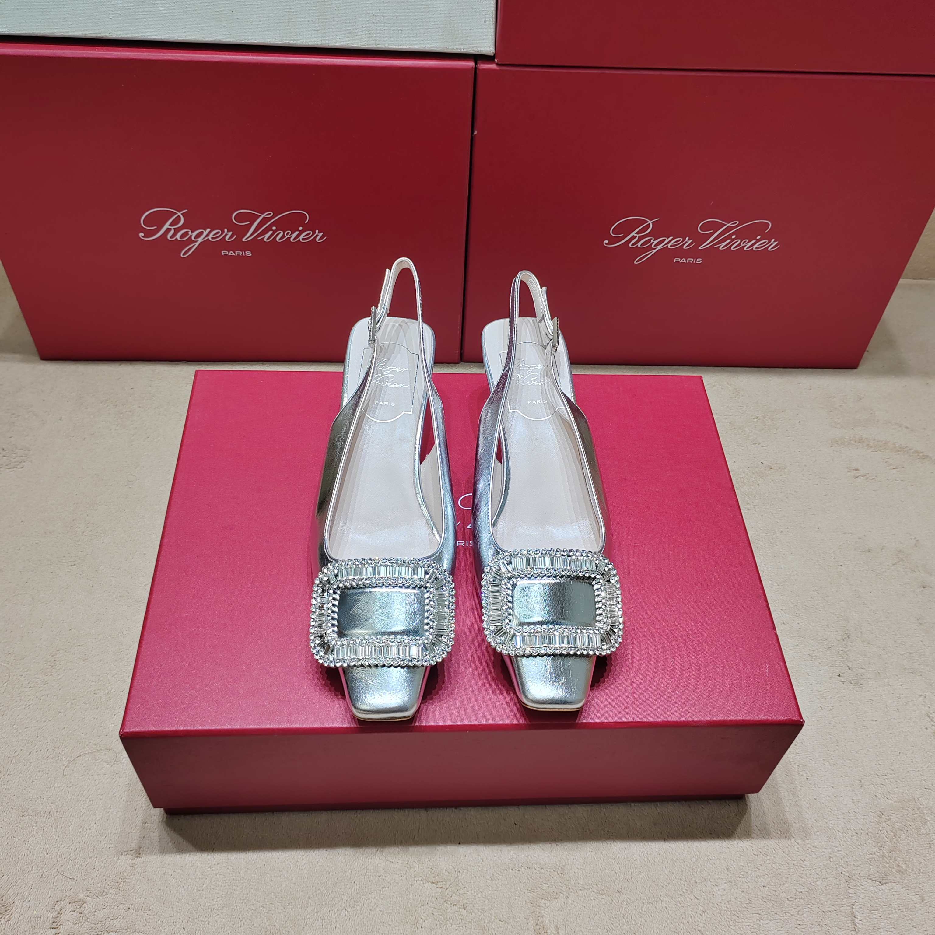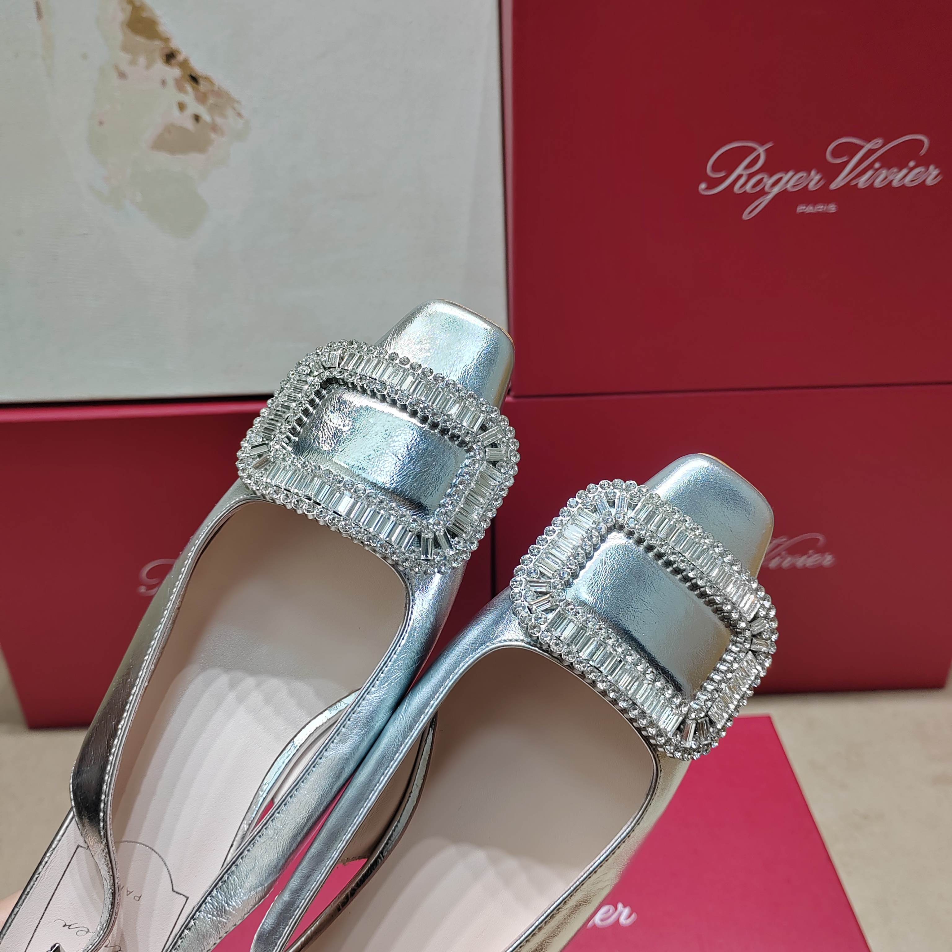 這款鞋子是AAAAA 1:1 質量(非常棒). 使用了和原版一模一樣的材料. 商標部分也保持了和羅傑維維耶/Roger Vivier一樣. 圖片拍攝是實物鞋子拍攝, 您所收到的實物保證和我們圖片一模一樣.