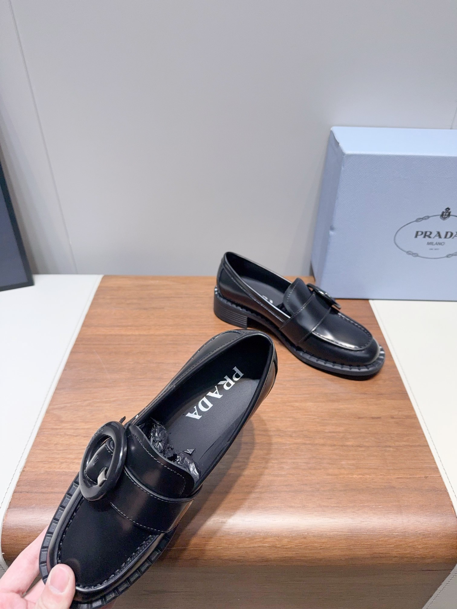 這款鞋子是AAAAA 1:1 質量(非常棒). 使用了和原版一模一樣的材料. 商標部分也保持了和普拉達/Prada一樣. 圖片拍攝是實物鞋子拍攝, 您所收到的實物保證和我們圖片一模一樣.