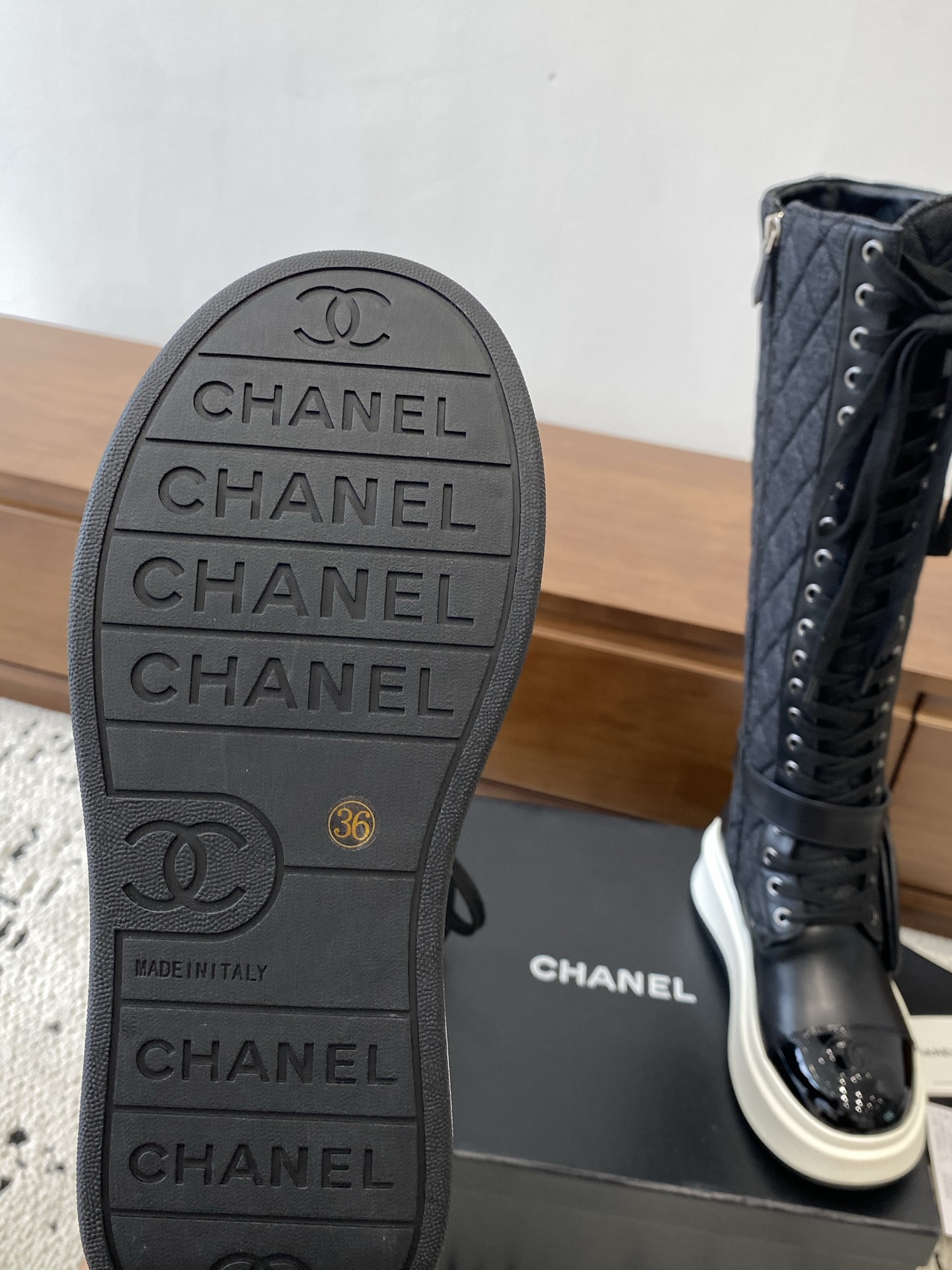 這款鞋子是AAAAA 1:1 質量(非常棒). 使用了和原版一模一樣的材料. 商標部分也保持了和香奈兒/Chanel一樣. 圖片拍攝是實物鞋子拍攝, 您所收到的實物保證和我們圖片一模一樣.