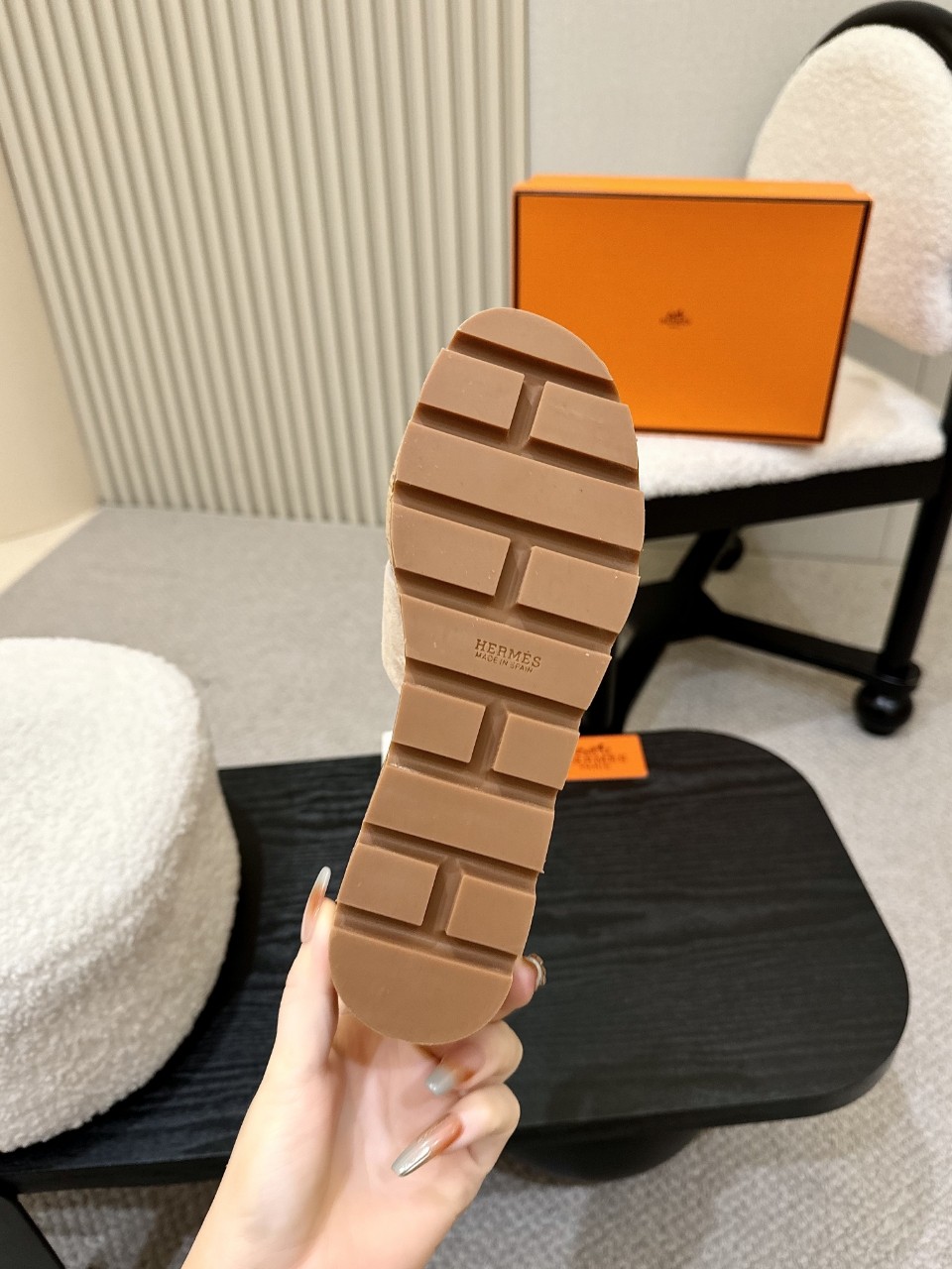 這款鞋子是AAAAA 1:1 質量(非常棒). 使用了和原版一模一樣的材料. 商標部分也保持了和愛馬仕/Hermes一樣. 圖片拍攝是實物鞋子拍攝, 您所收到的實物保證和我們圖片一模一樣.