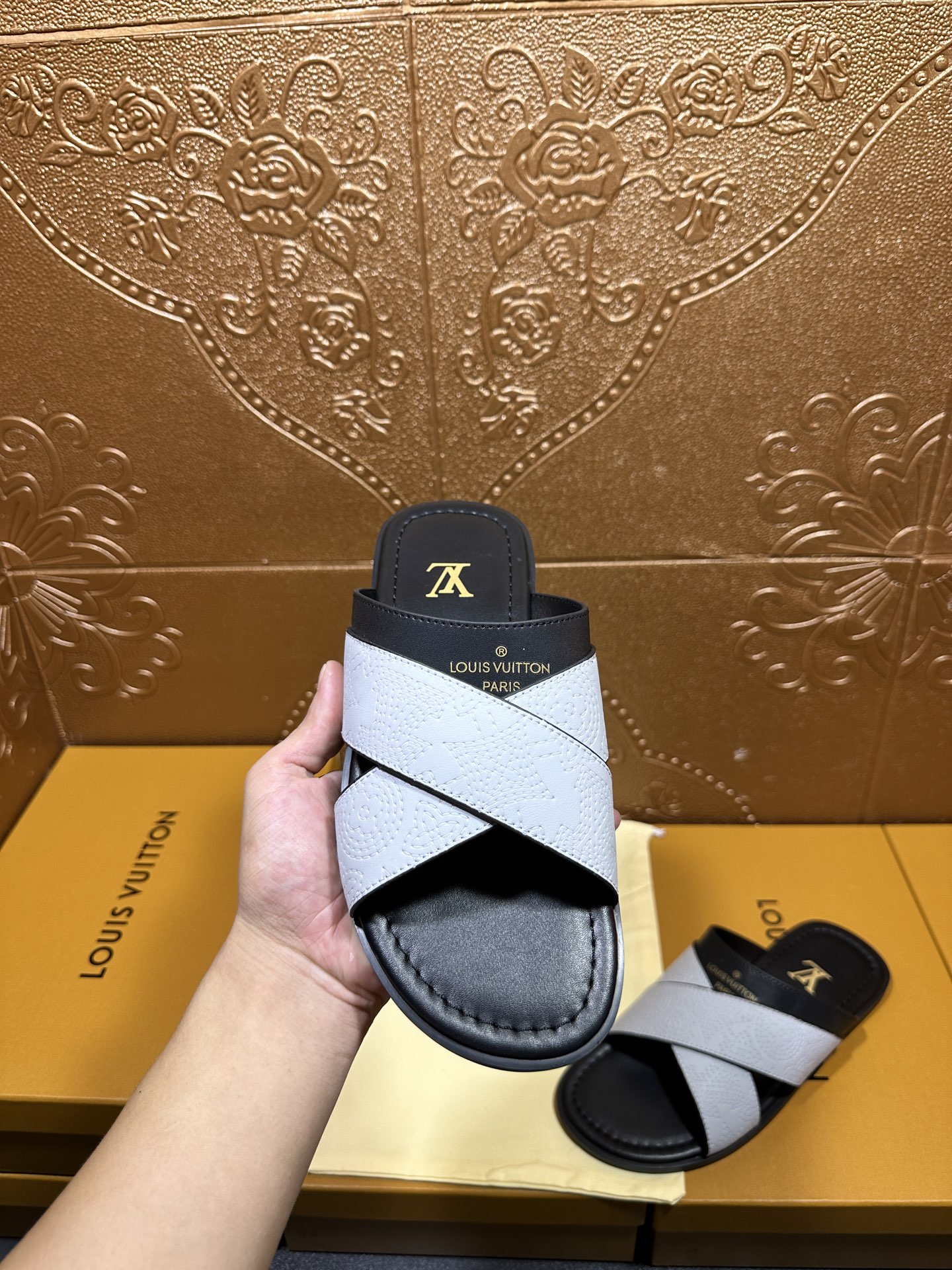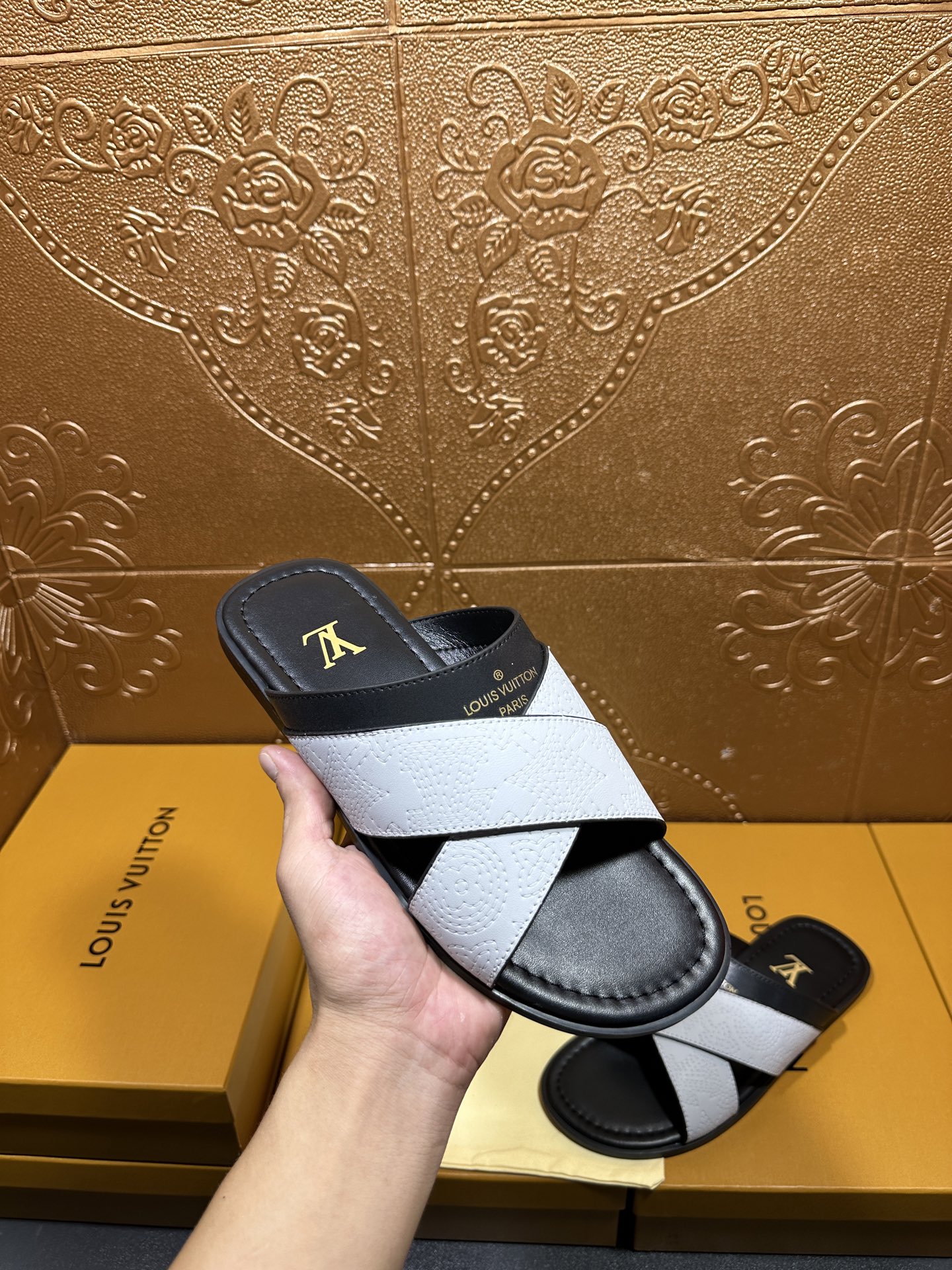 這款鞋子是AAAAA 1:1 質量(非常棒). 使用了和原版一模一樣的材料. 商標部分也保持了和路易威登/Louis Vuitton一樣. 圖片拍攝是實物鞋子拍攝, 您所收到的實物保證和我們圖片一模一樣.