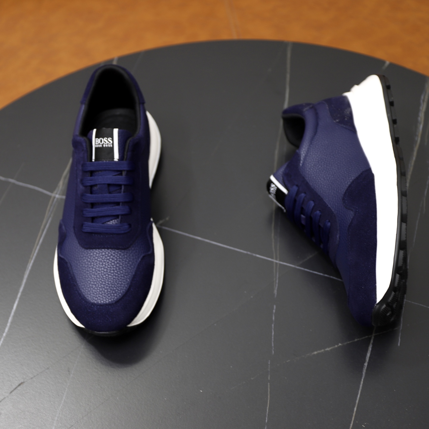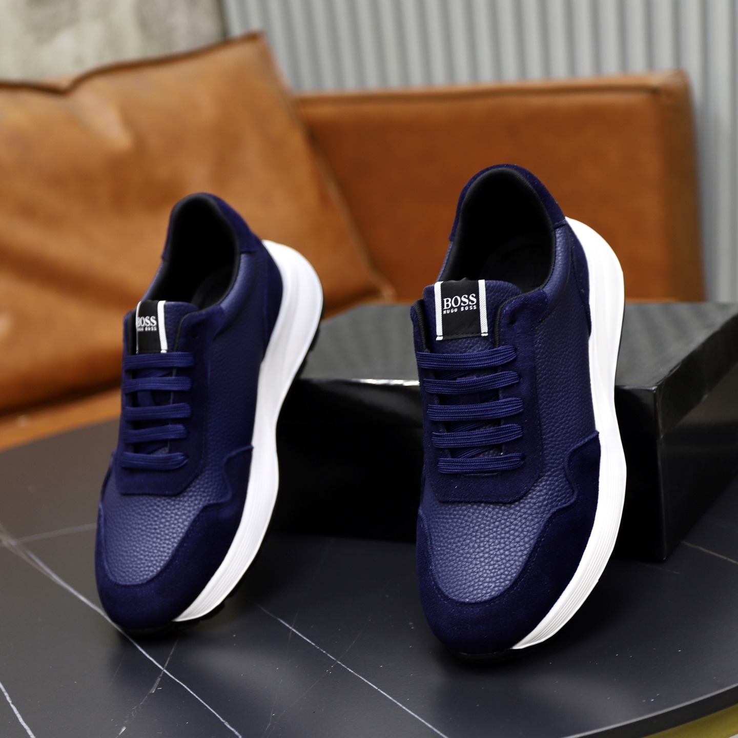 這款鞋子是AAAAA 1:1 質量(非常棒). 使用了和原版一模一樣的材料. 商標部分也保持了和BOSS一樣. 圖片拍攝是實物鞋子拍攝, 您所收到的實物保證和我們圖片一模一樣.