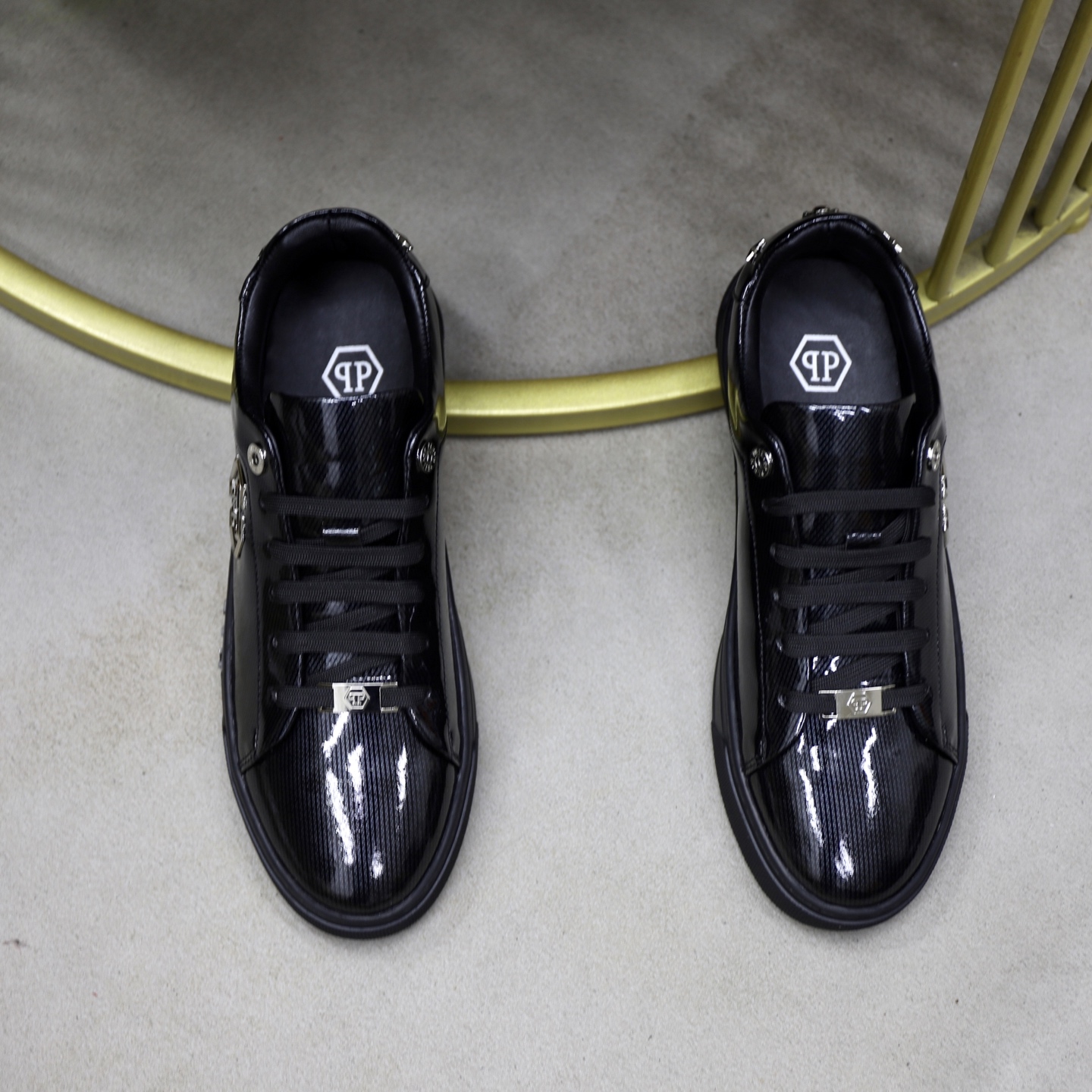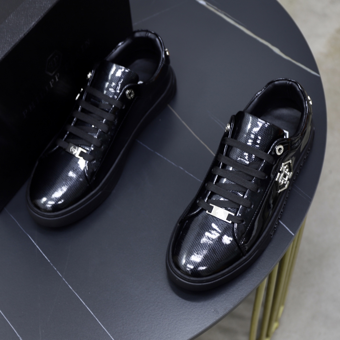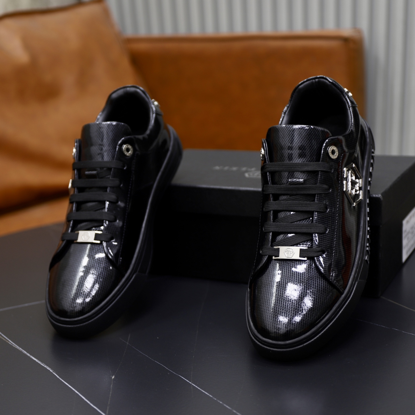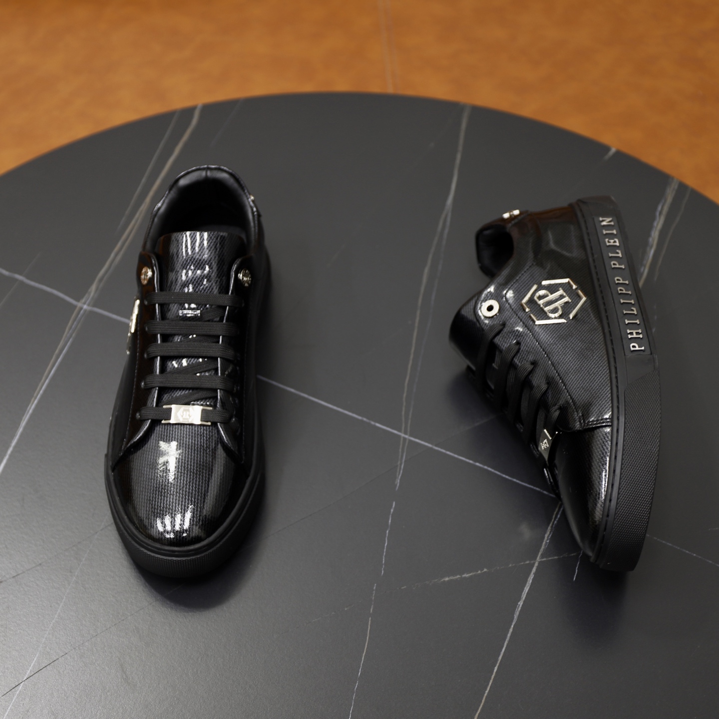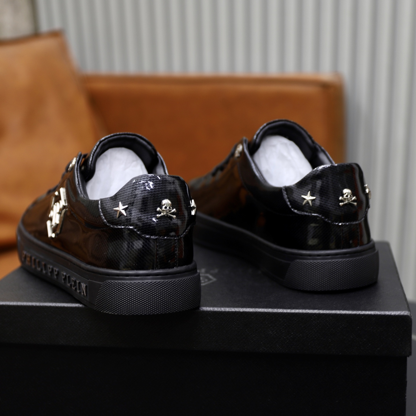 這款鞋子是AAAAA 1:1 質量(非常棒). 使用了和原版一模一樣的材料. 商標部分也保持了和菲利普·普林/Philipp Plein一樣. 圖片拍攝是實物鞋子拍攝, 您所收到的實物保證和我們圖片一模一樣.