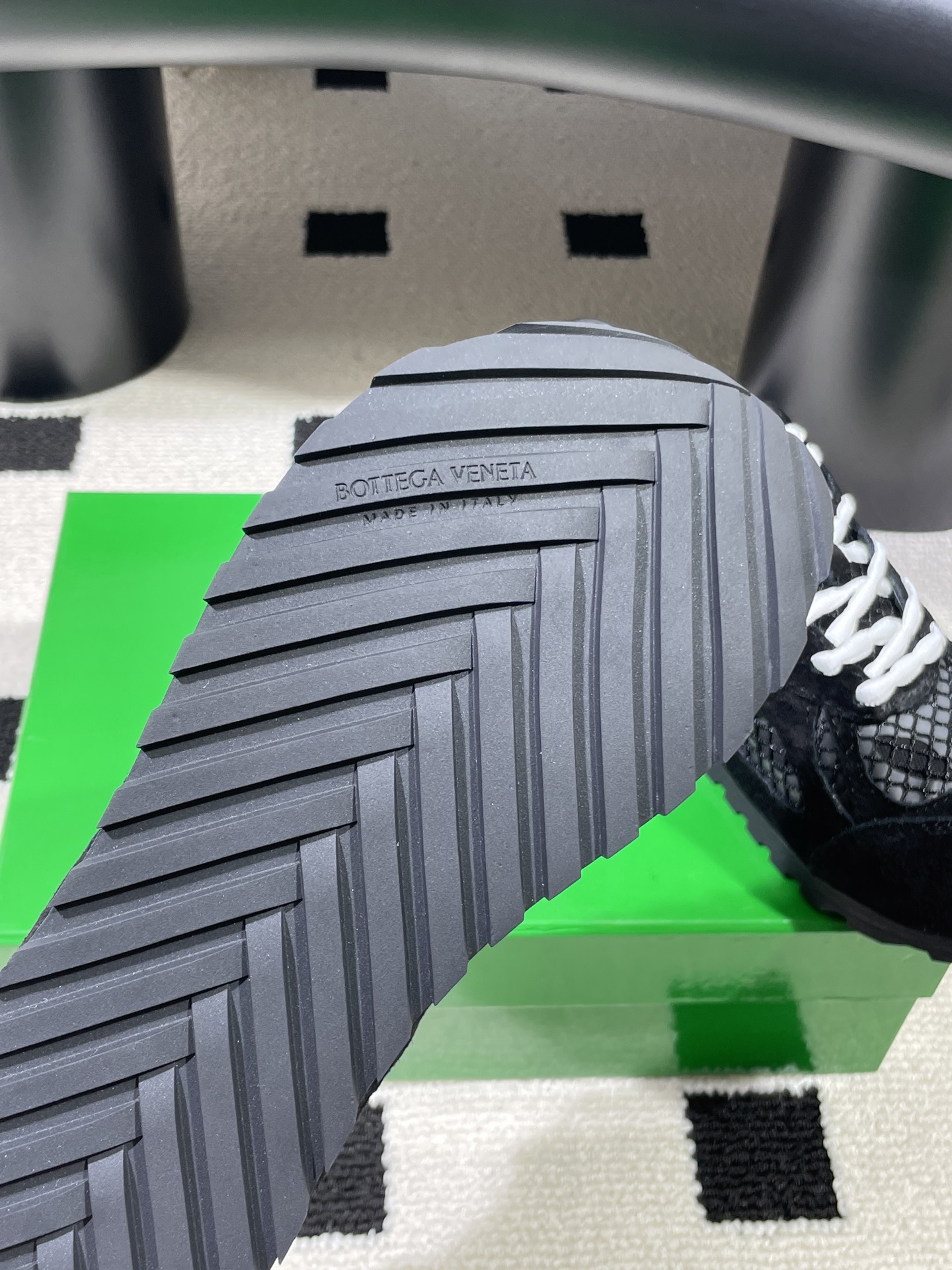 這款鞋子是AAAAA 1:1 質量(非常棒). 使用了和原版一模一樣的材料. 商標部分也保持了和葆蝶家/Bottega Veneta一樣. 圖片拍攝是實物鞋子拍攝, 您所收到的實物保證和我們圖片一模一樣.