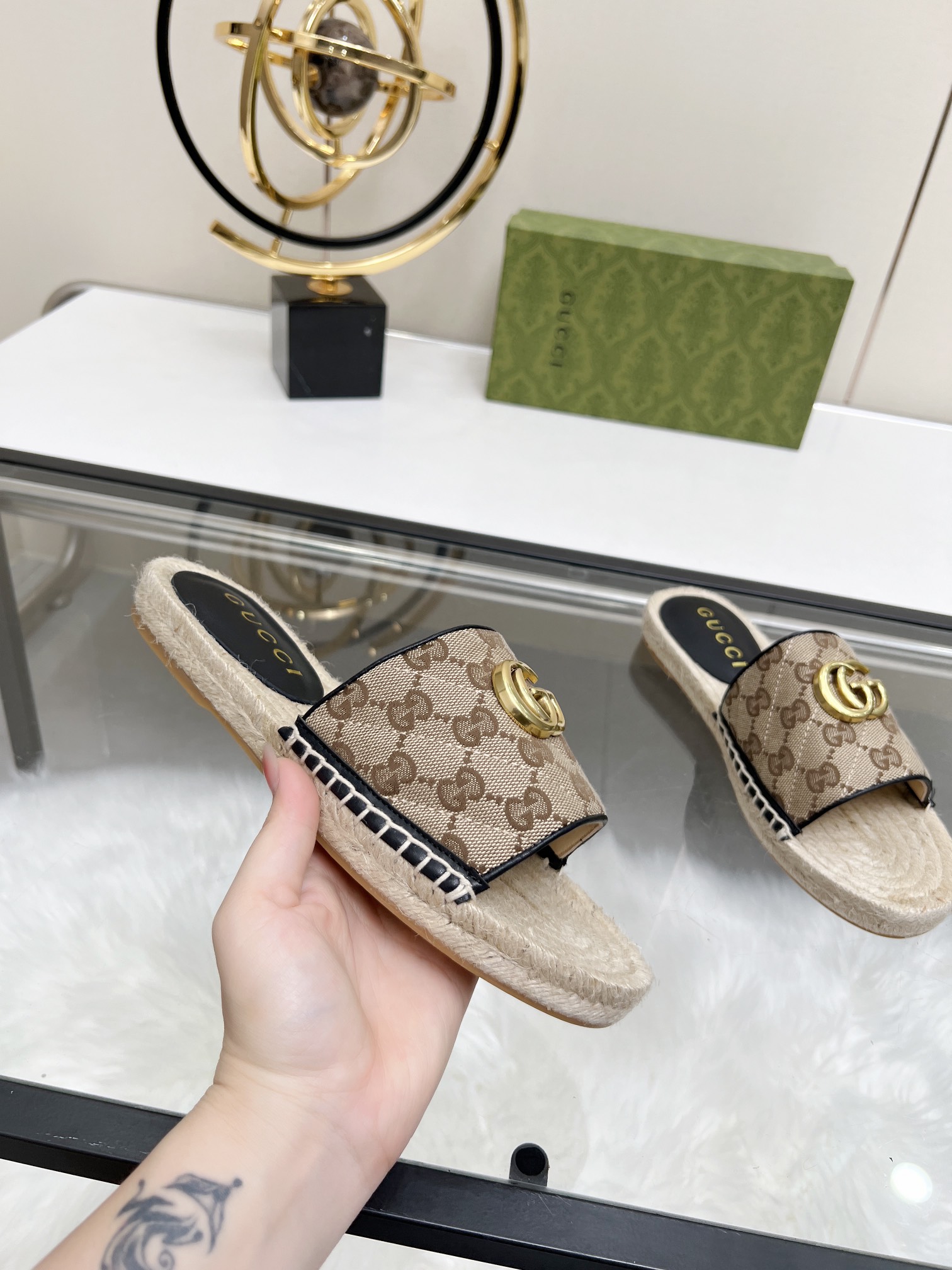 這款鞋子是AAAAA 1:1 質量(非常棒). 使用了和原版一模一樣的材料. 商標部分也保持了和古奇/Gucci一樣. 圖片拍攝是實物鞋子拍攝, 您所收到的實物保證和我們圖片一模一樣.