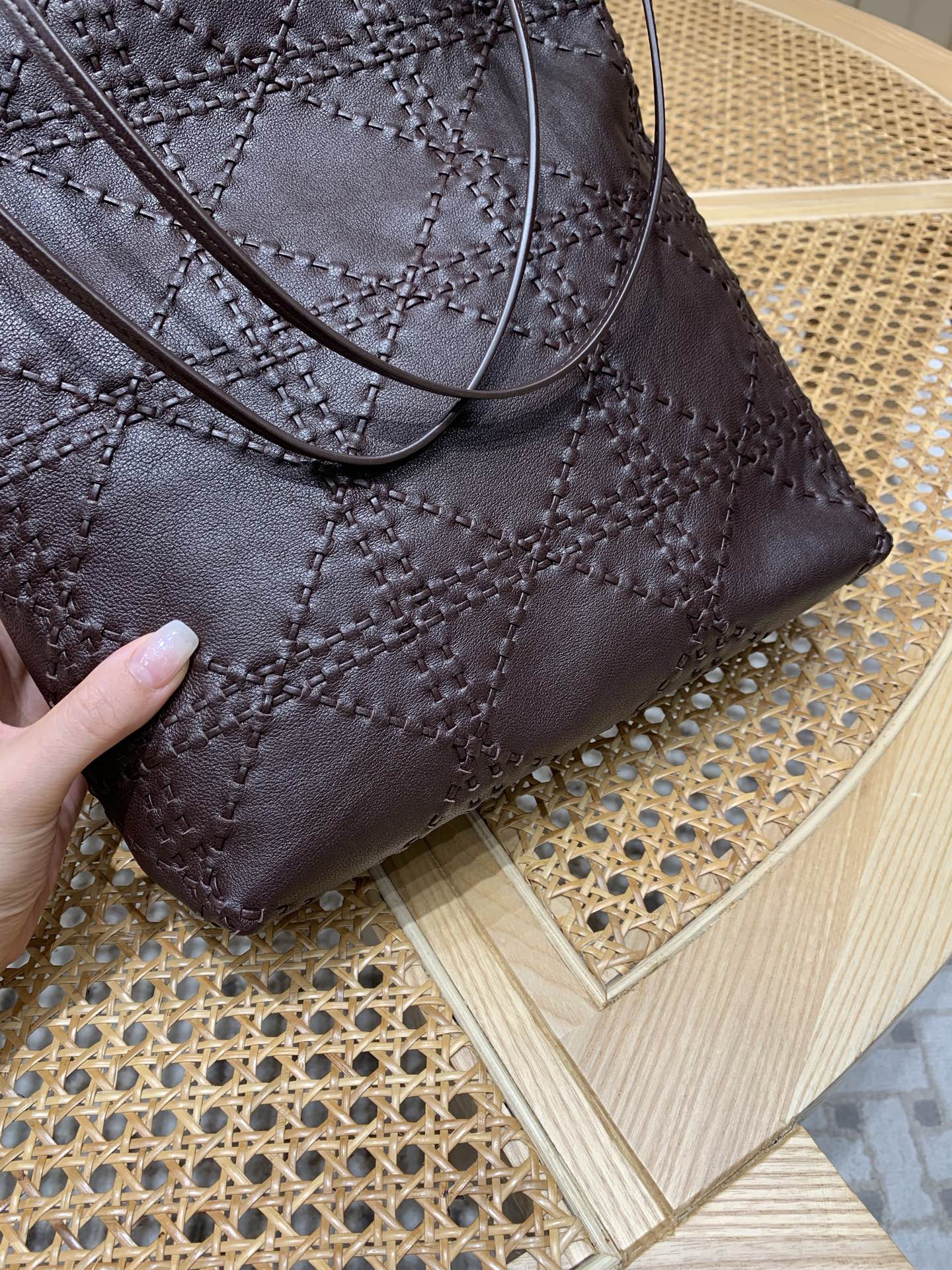 這款包包是AAAAA 1:1 質量(非常棒). 使用了和原版一模一樣的材料. 商標部分也保持了和葆蝶家/Bottega Veneta一樣. 圖片拍攝是實物包包拍攝, 您所收到的實物保證和我們圖片一模一樣.