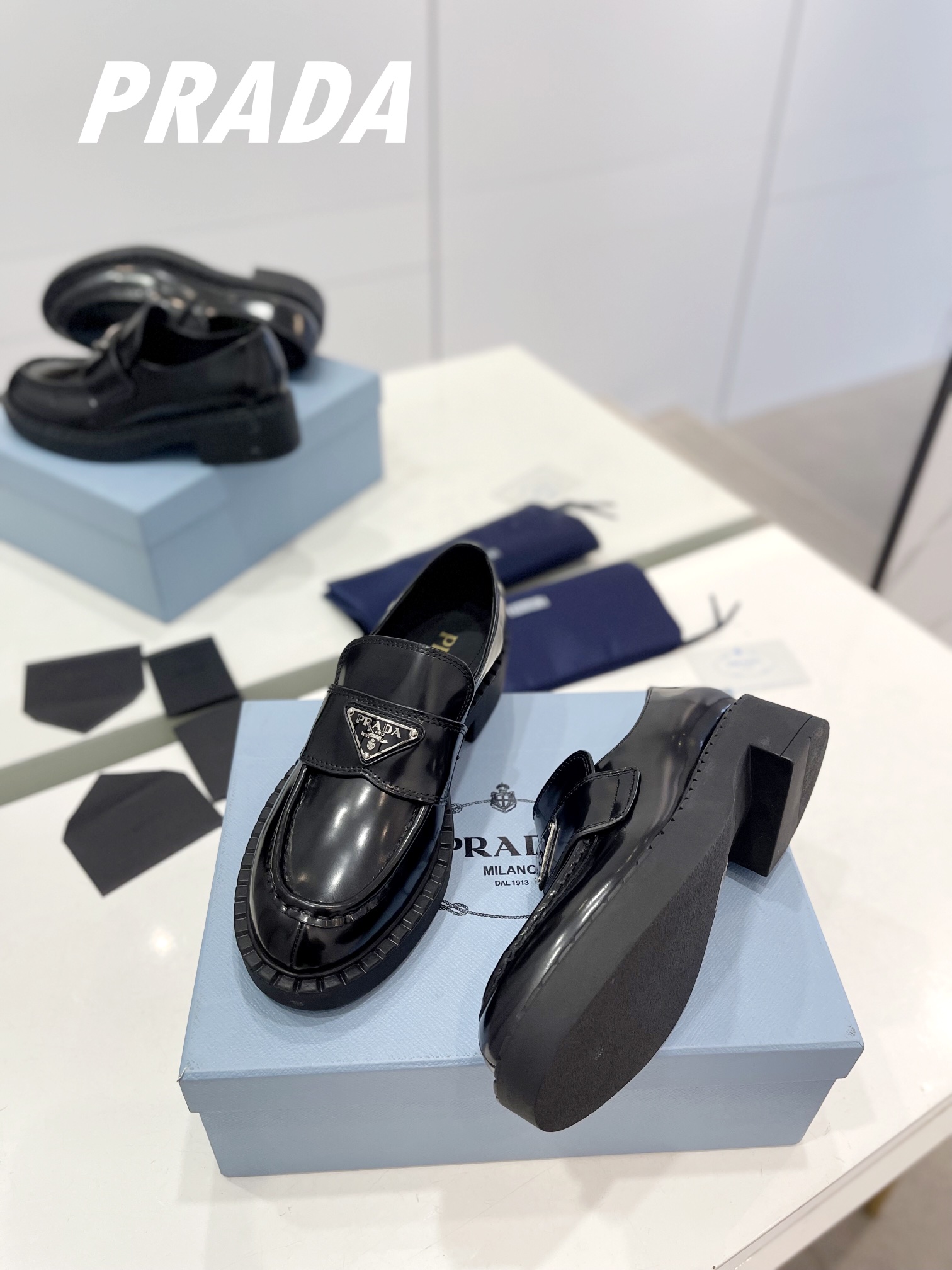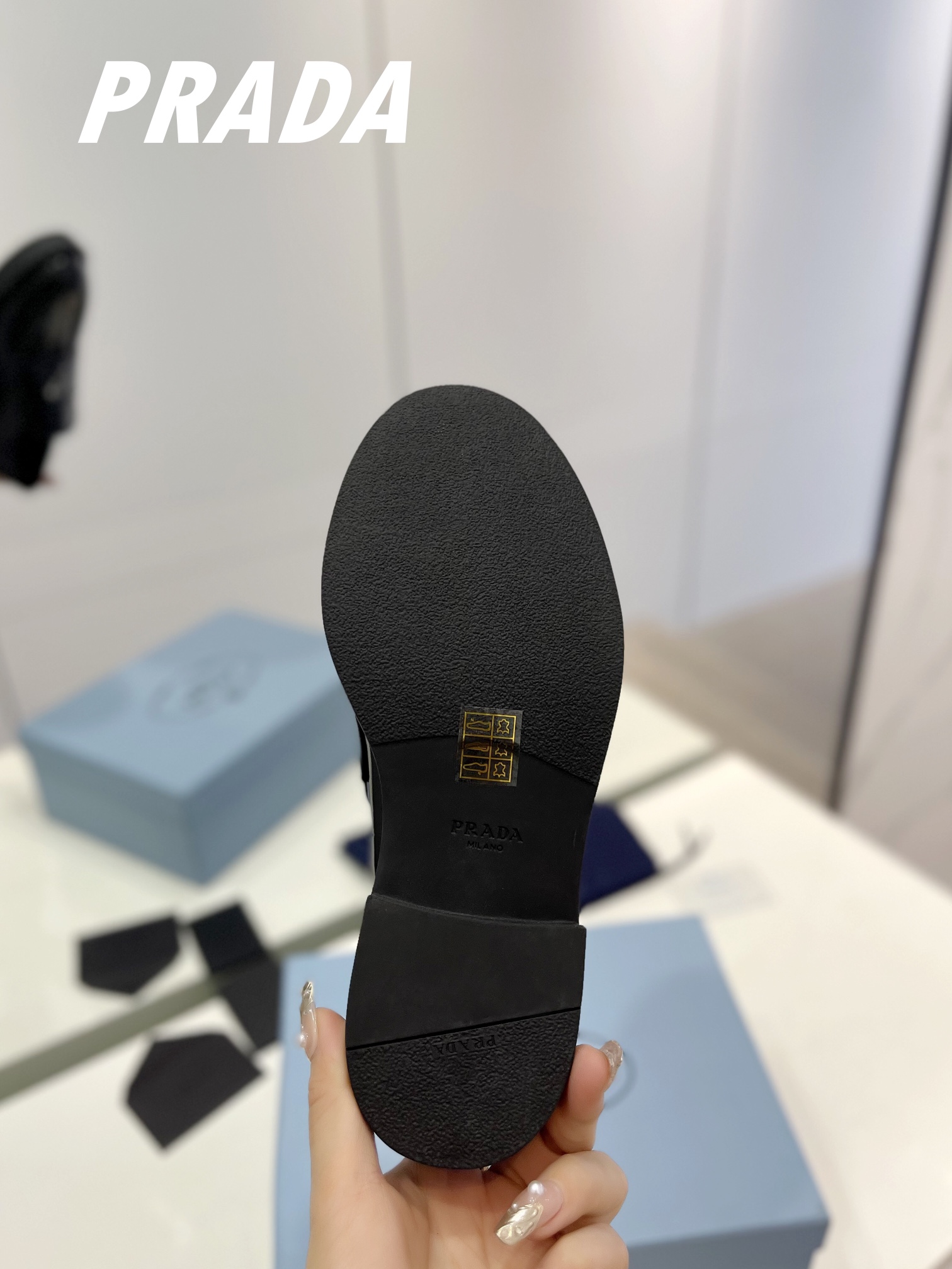 這款鞋子是AAAAA 1:1 質量(非常棒). 使用了和原版一模一樣的材料. 商標部分也保持了和普拉達/Prada一樣. 圖片拍攝是實物鞋子拍攝, 您所收到的實物保證和我們圖片一模一樣.