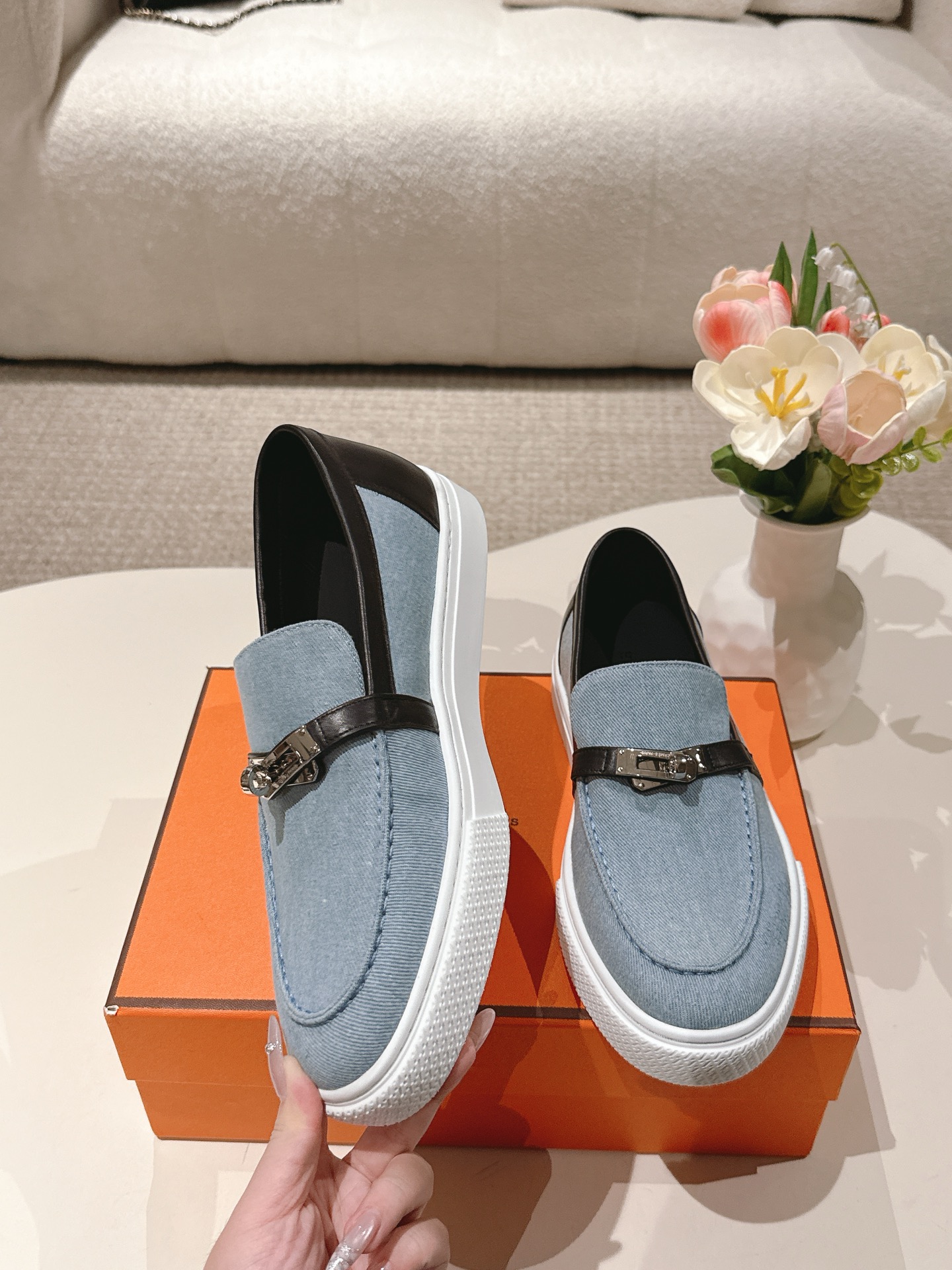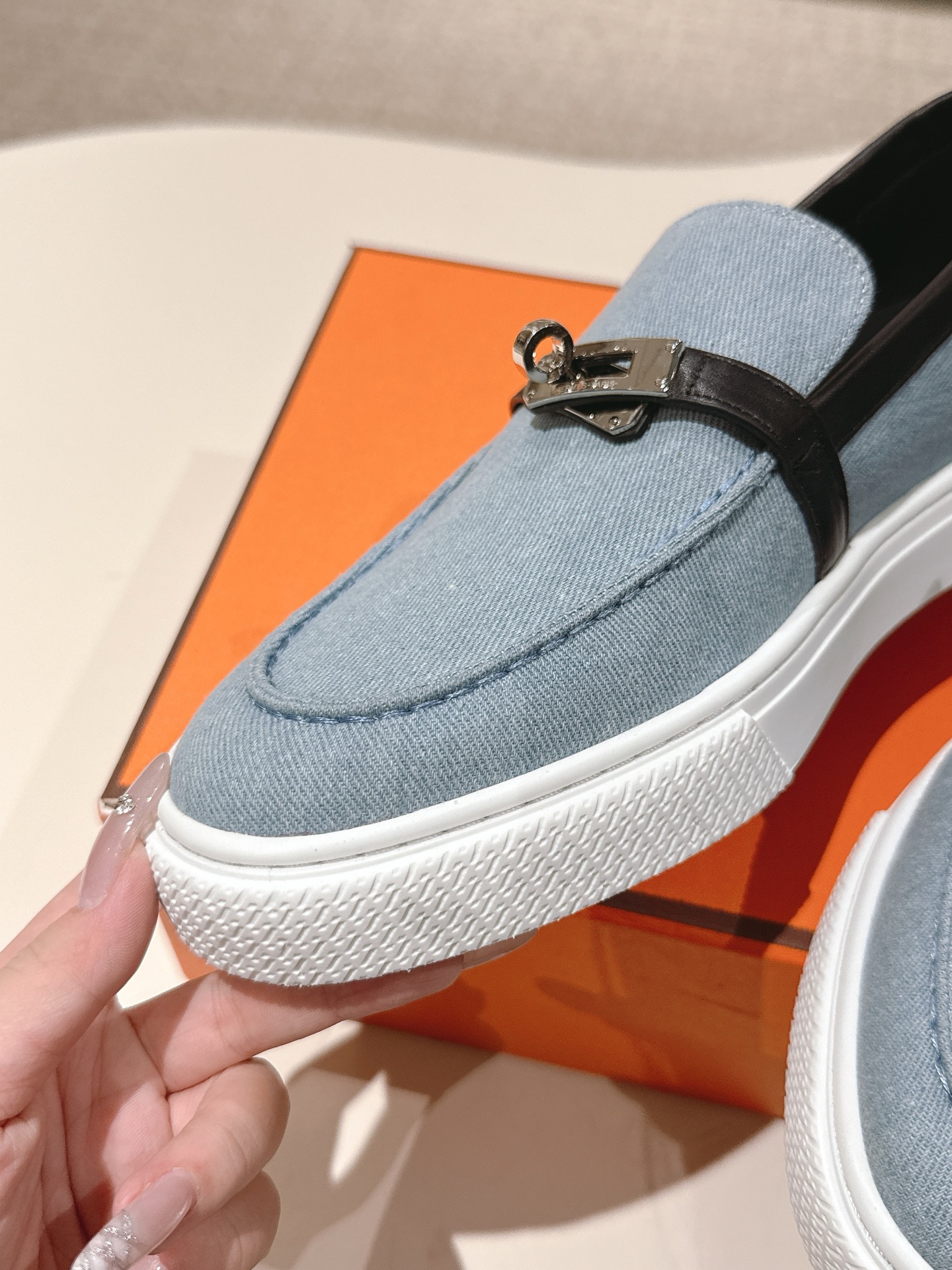 這款鞋子是AAAAA 1:1 質量(非常棒). 使用了和原版一模一樣的材料. 商標部分也保持了和愛馬仕/Hermes一樣. 圖片拍攝是實物鞋子拍攝, 您所收到的實物保證和我們圖片一模一樣.