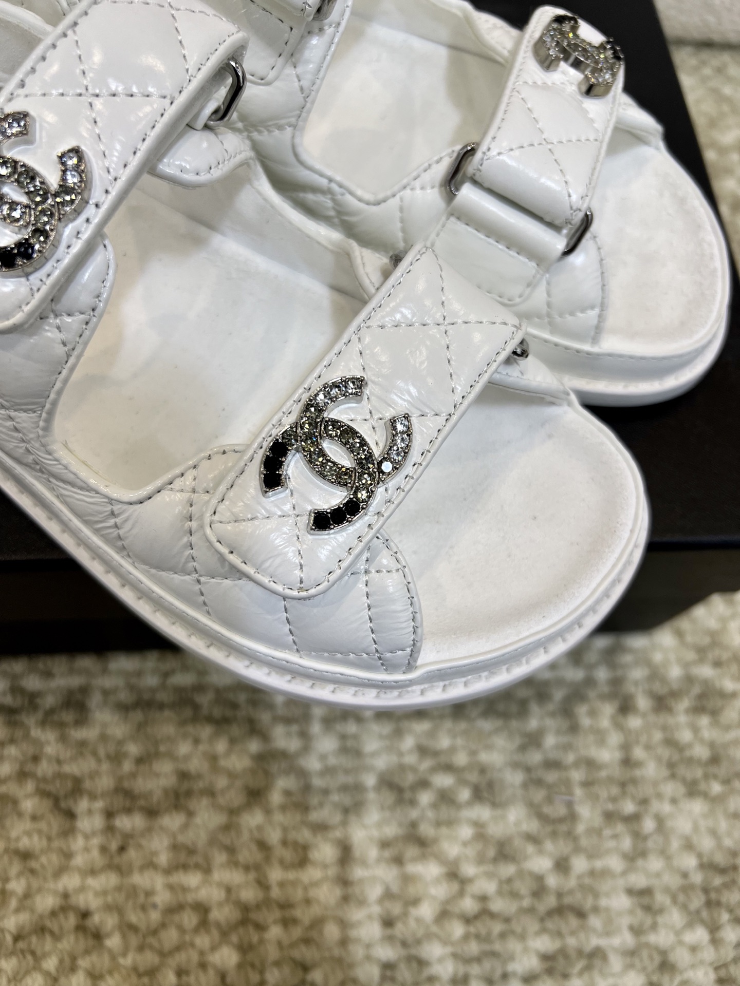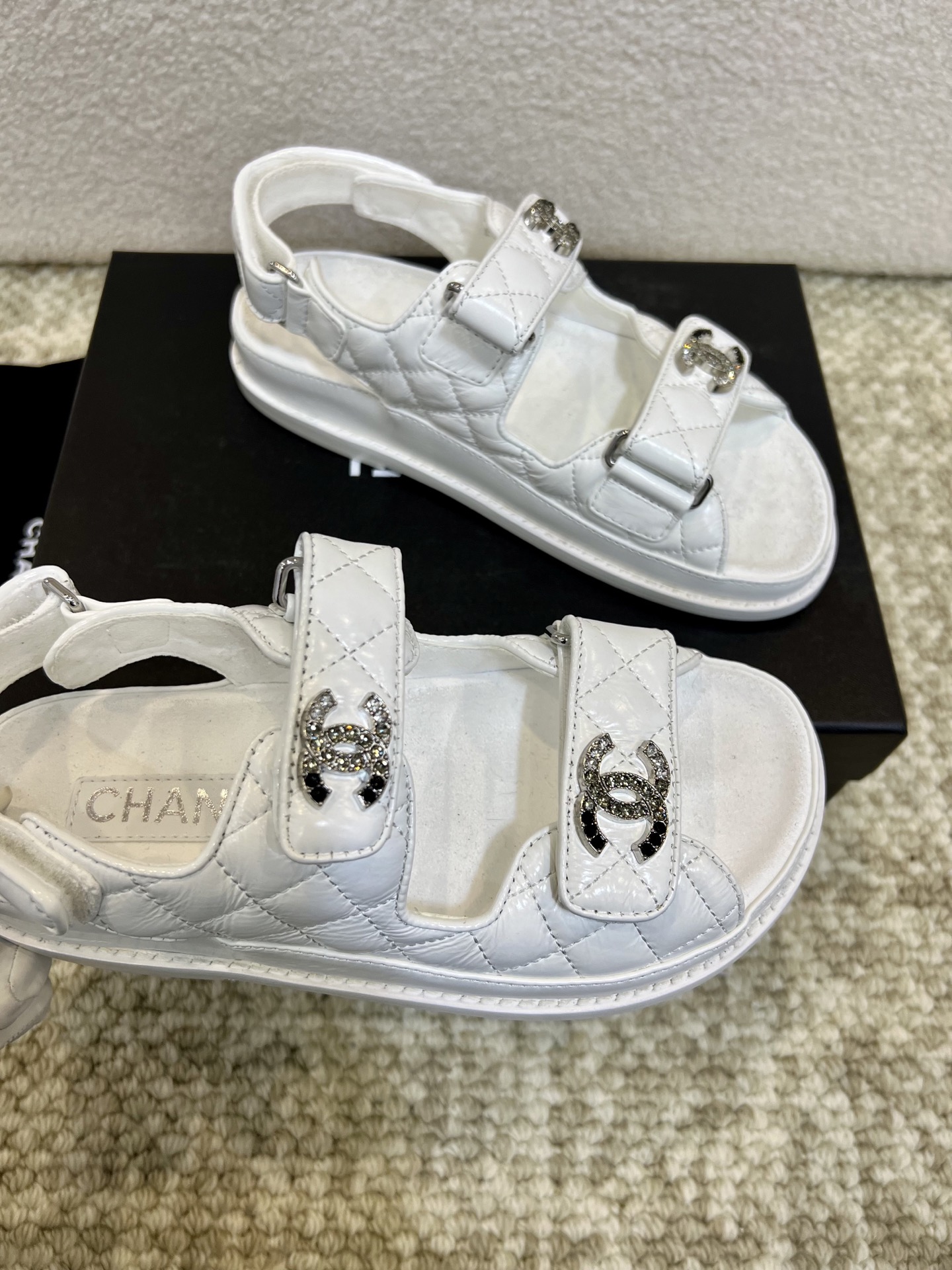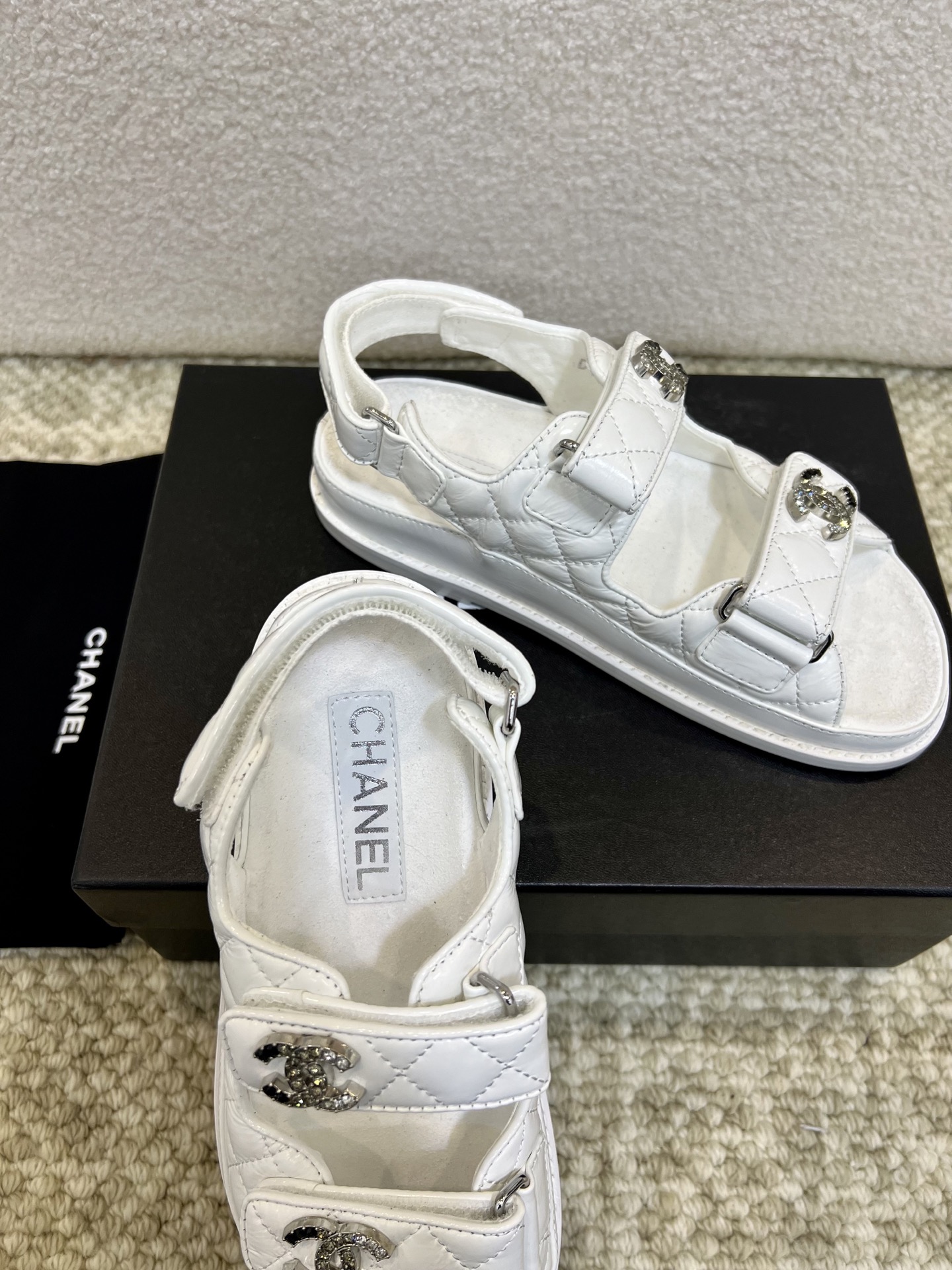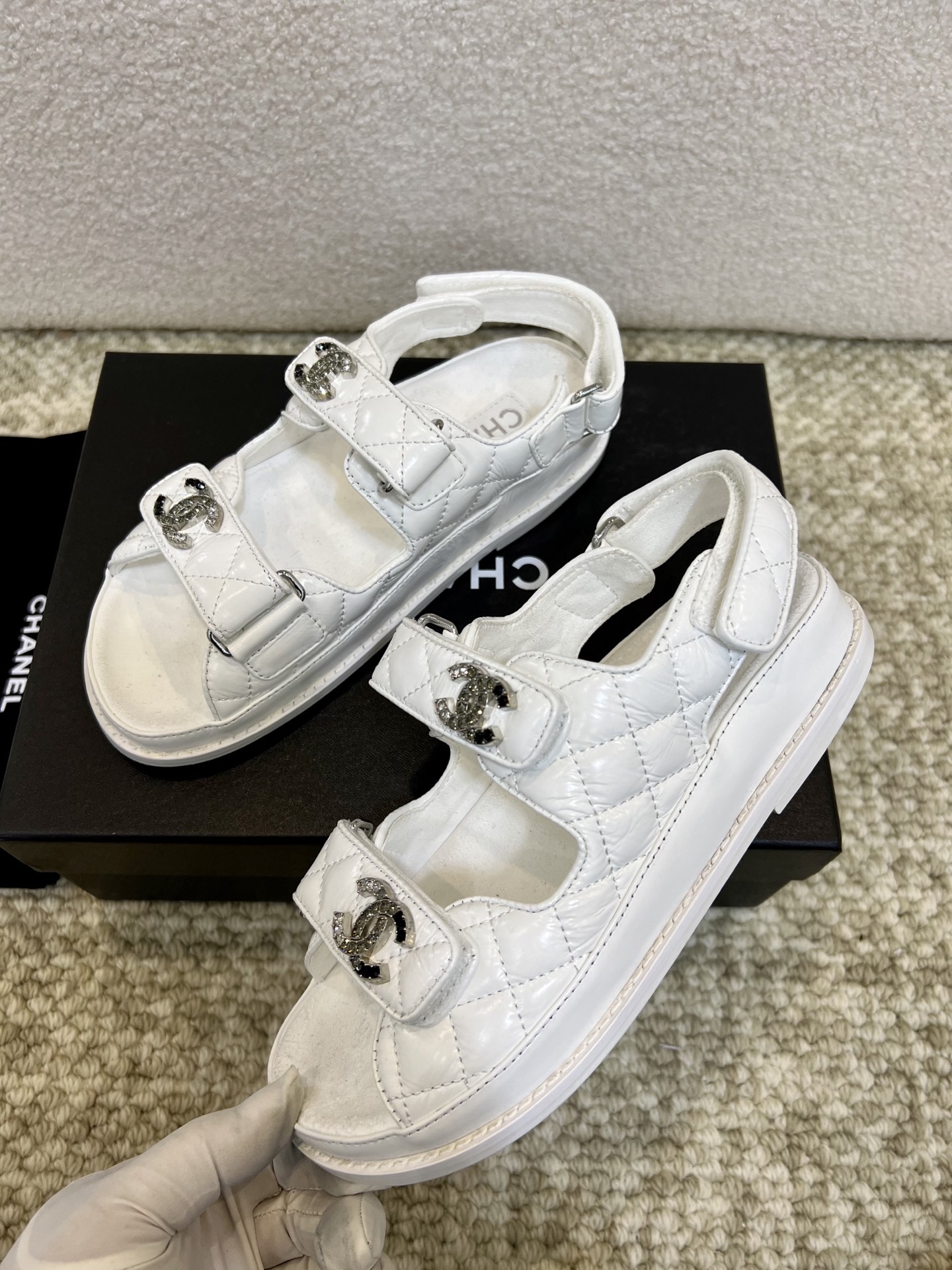 這款鞋子是AAAAA 1:1 質量(非常棒). 使用了和原版一模一樣的材料. 商標部分也保持了和香奈兒/Chanel一樣. 圖片拍攝是實物鞋子拍攝, 您所收到的實物保證和我們圖片一模一樣.