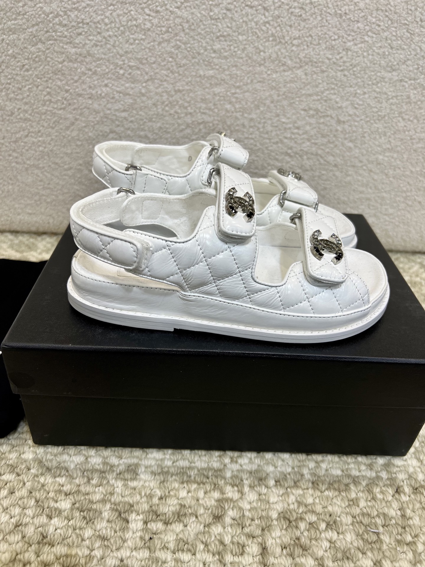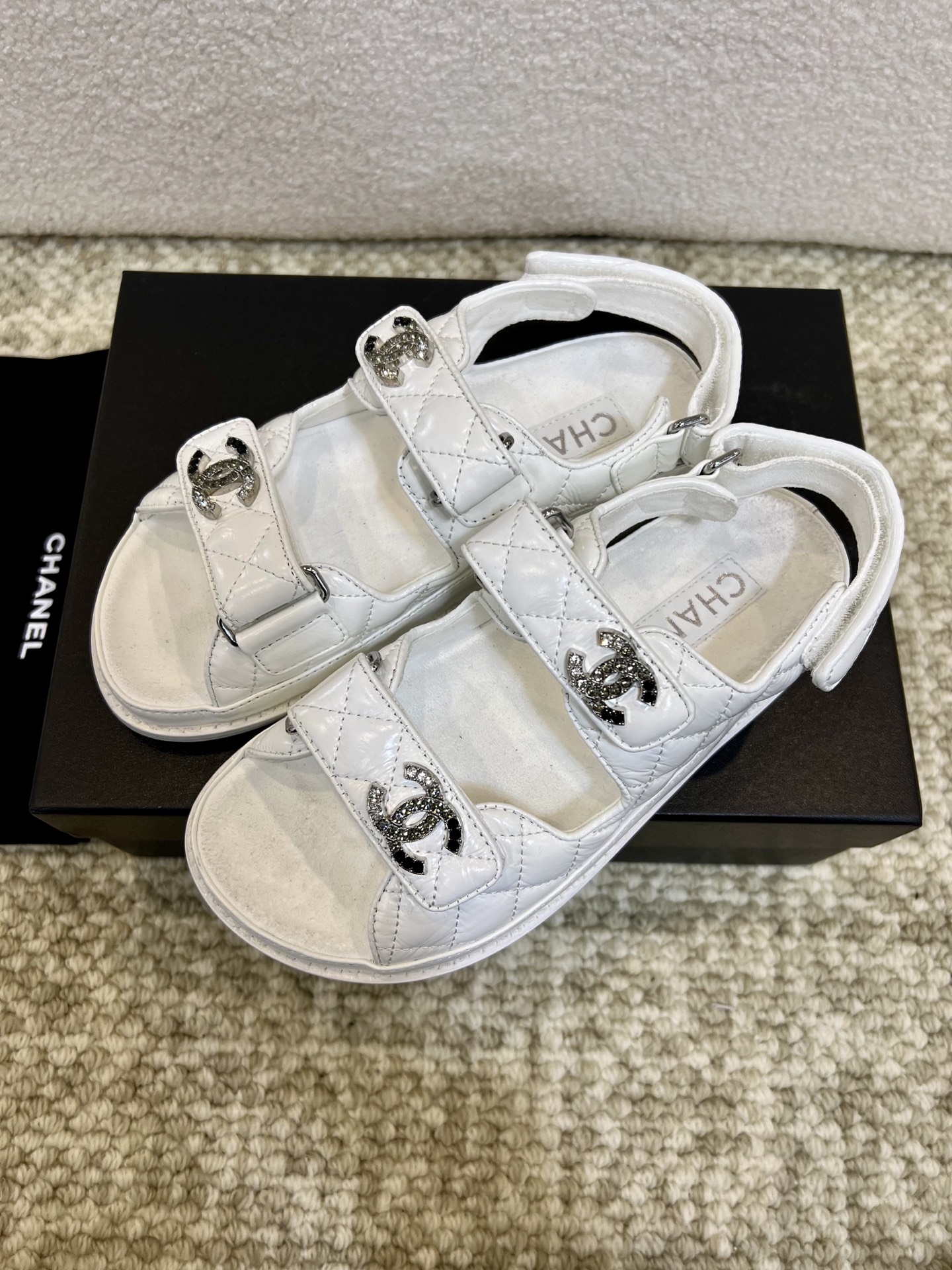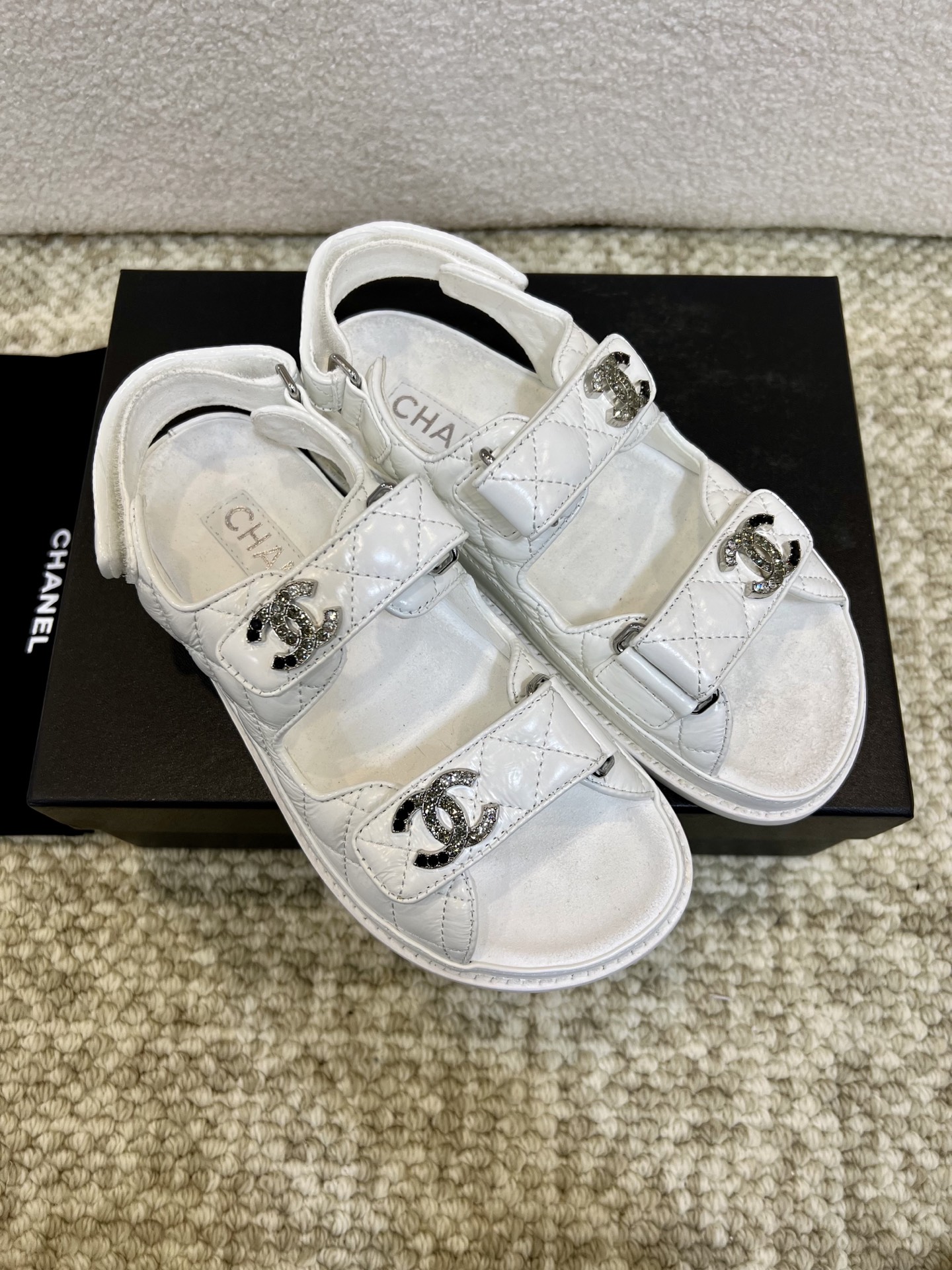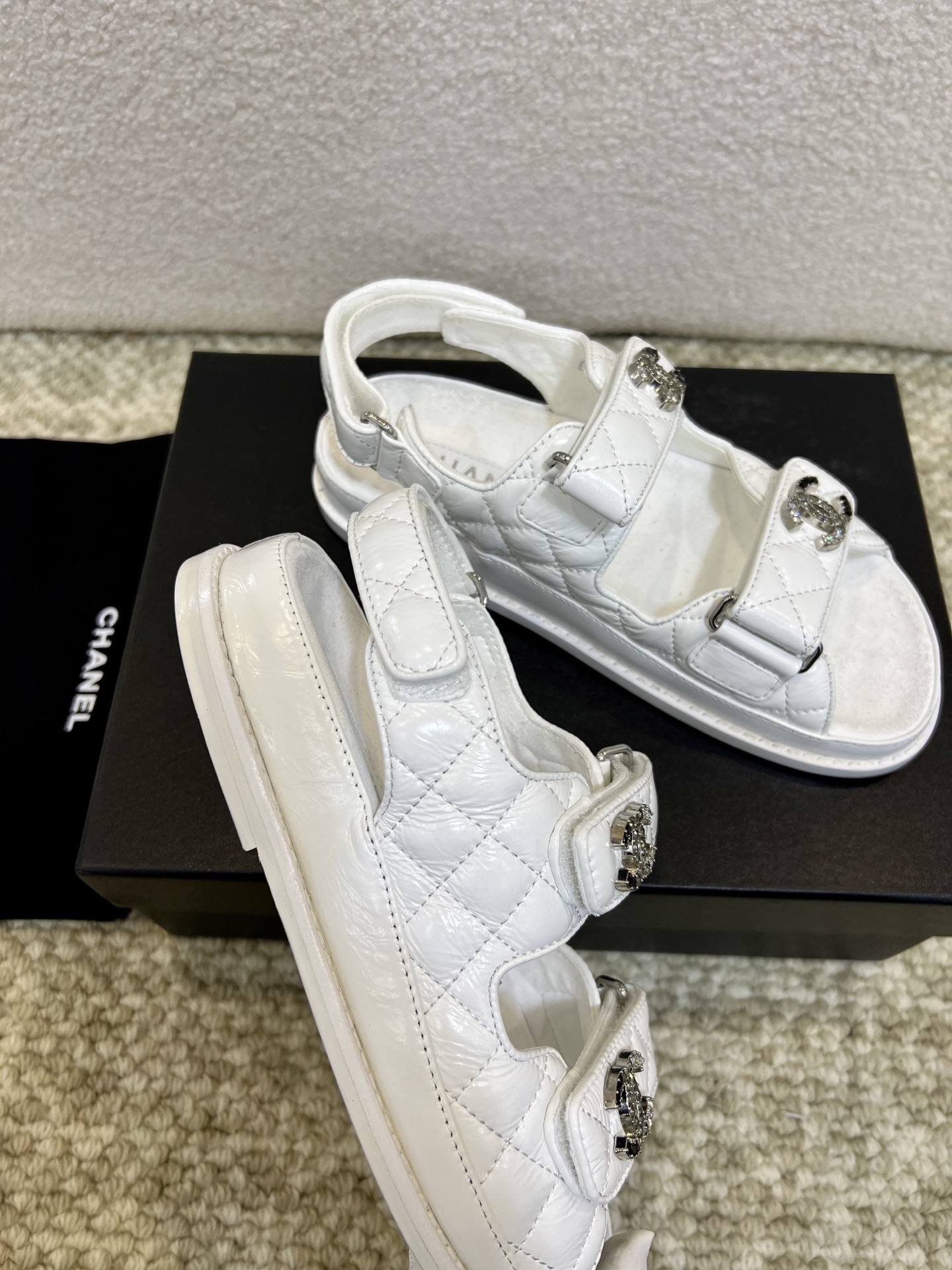 這款鞋子是AAAAA 1:1 質量(非常棒). 使用了和原版一模一樣的材料. 商標部分也保持了和香奈兒/Chanel一樣. 圖片拍攝是實物鞋子拍攝, 您所收到的實物保證和我們圖片一模一樣.