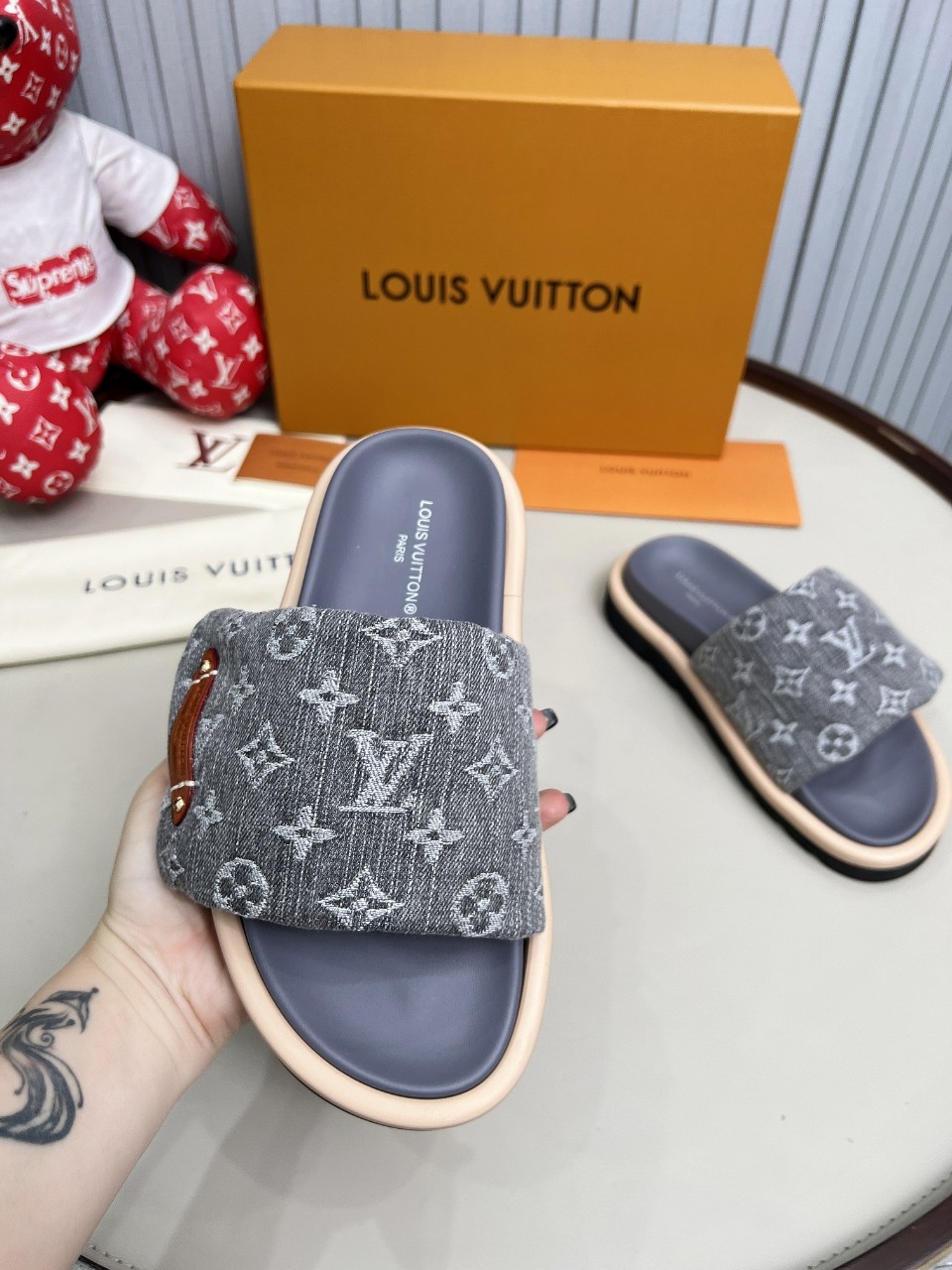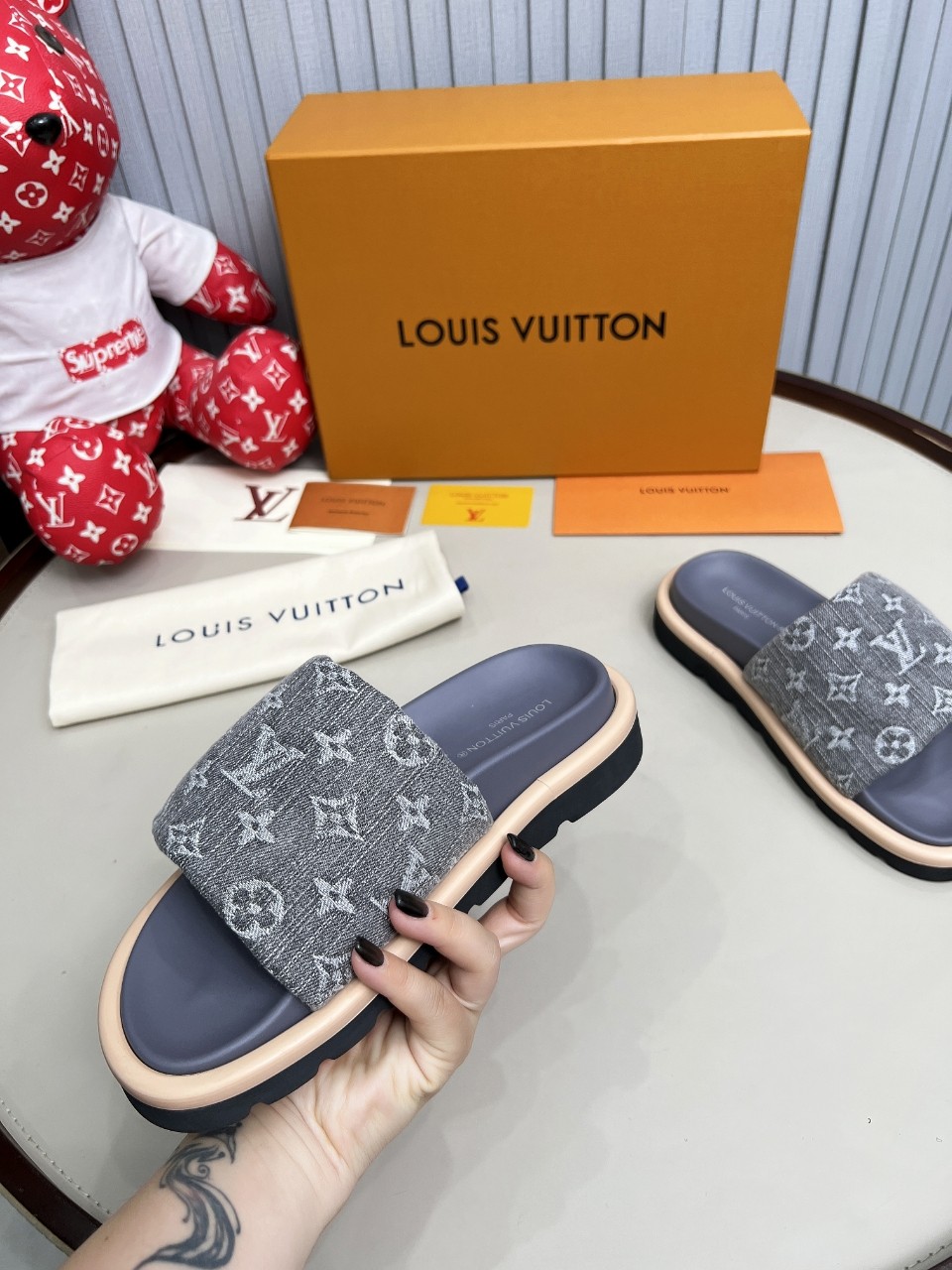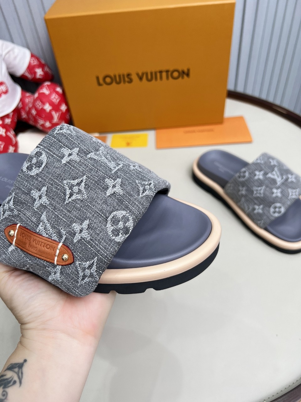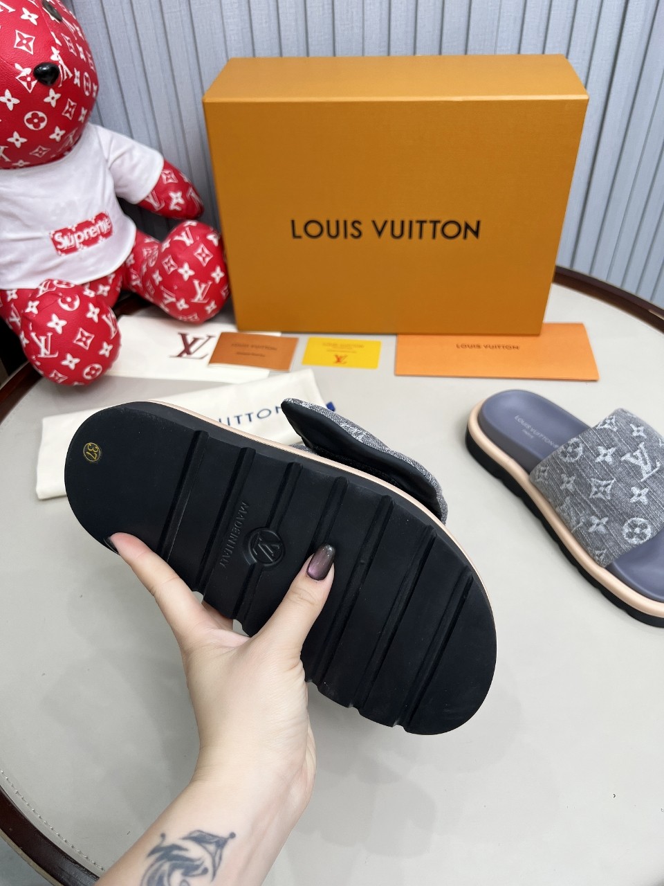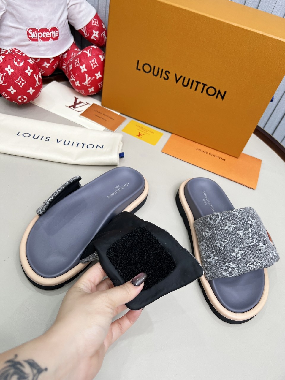 這款鞋子是AAAAA 1:1 質量(非常棒). 使用了和原版一模一樣的材料. 商標部分也保持了和路易威登/Louis Vuitton一樣. 圖片拍攝是實物鞋子拍攝, 您所收到的實物保證和我們圖片一模一樣.